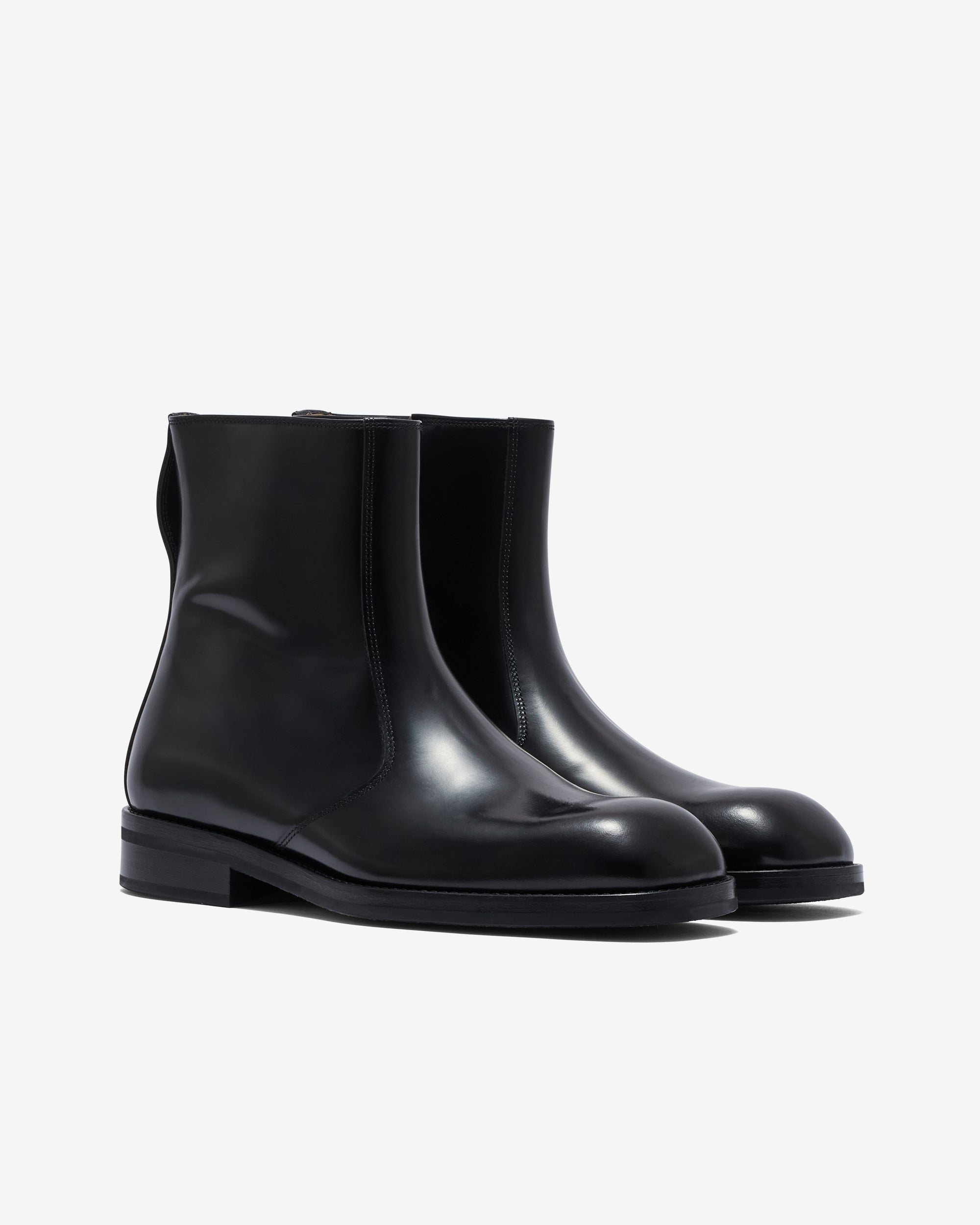 Zipped ankle boots in soft calfskin leatherElongated square toeZipper closureLeather insoles and outsole