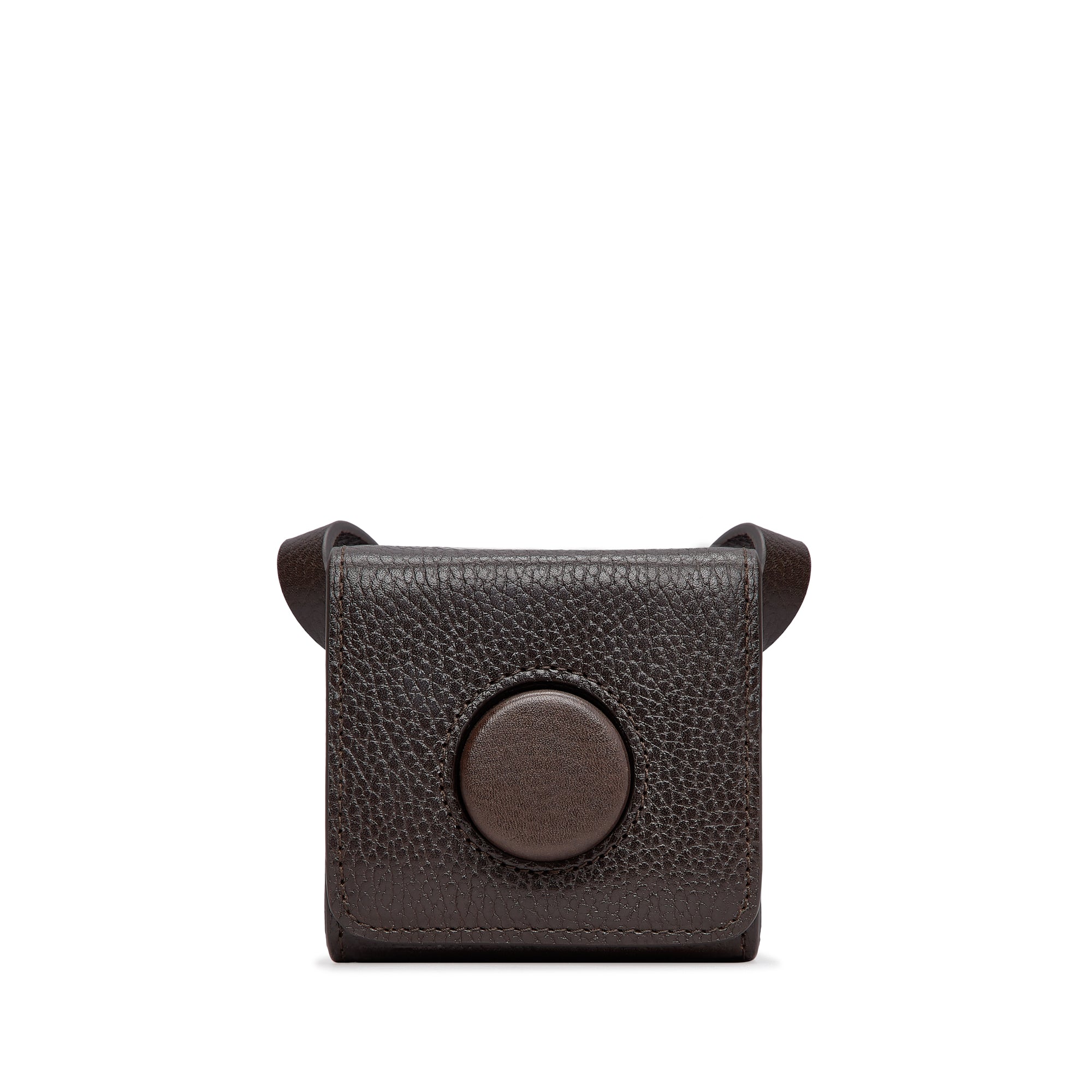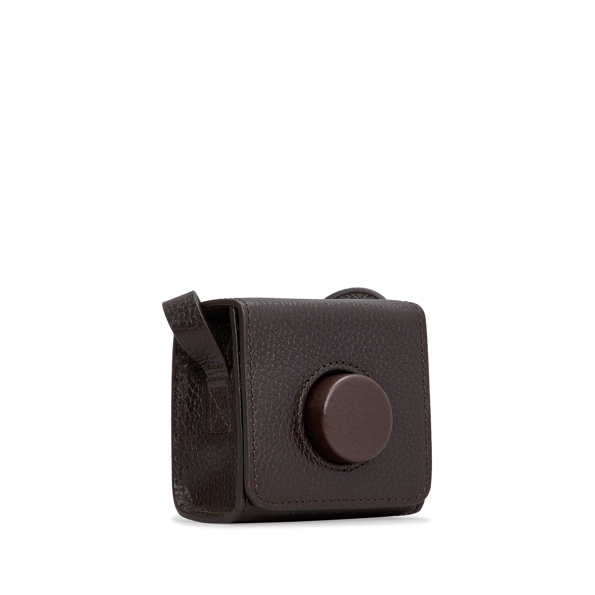 This bag is the miniature version of the classic Camera Bag. Inspired by traditional camera bags, it is made of vegetable-tanned leather. Its lens-shaped closure is entirely hand molded. Its details include a cotton canvas lining with a patch pocket, and an adjustable shoulder strap which can be worn around the neck or as a crossbody.