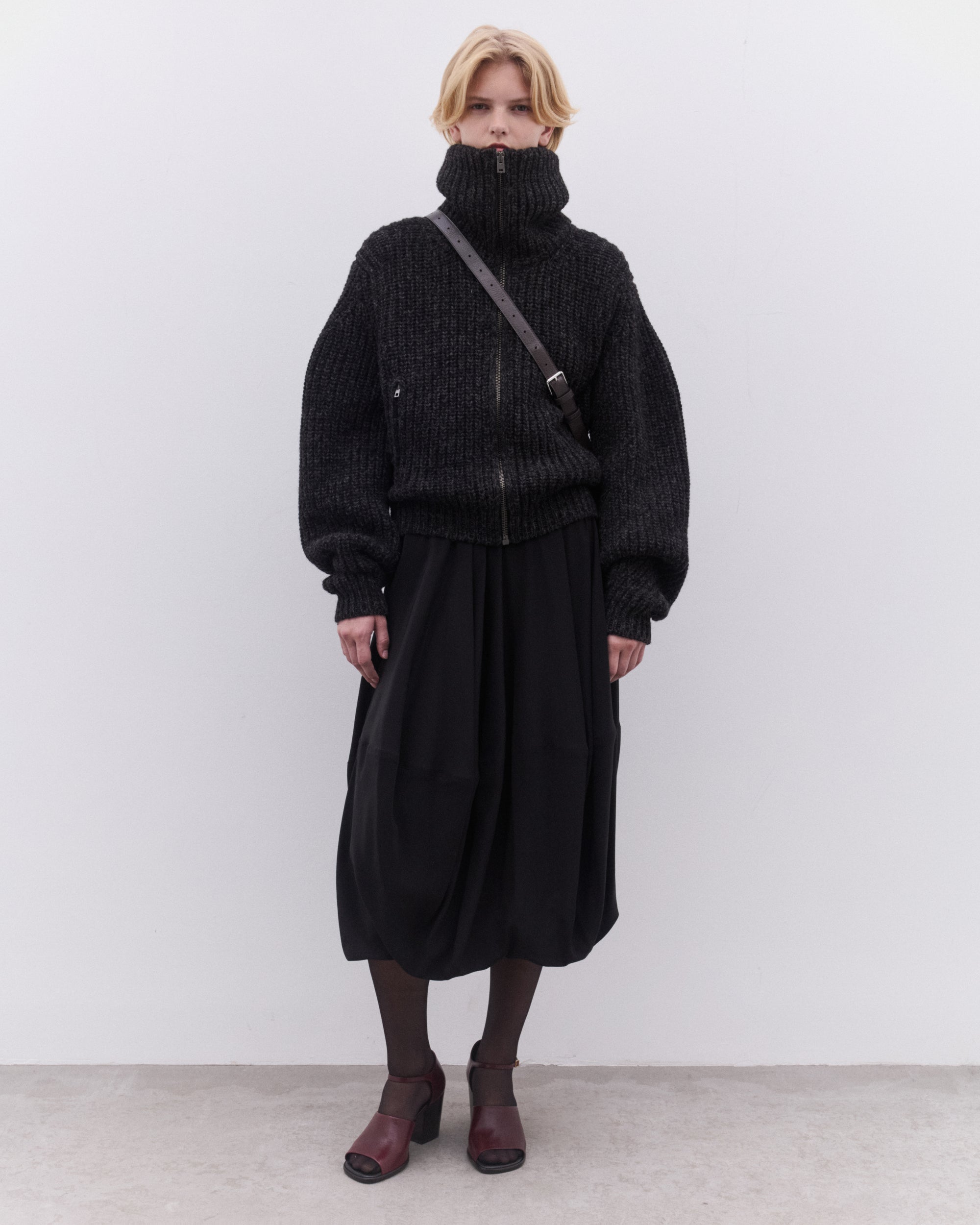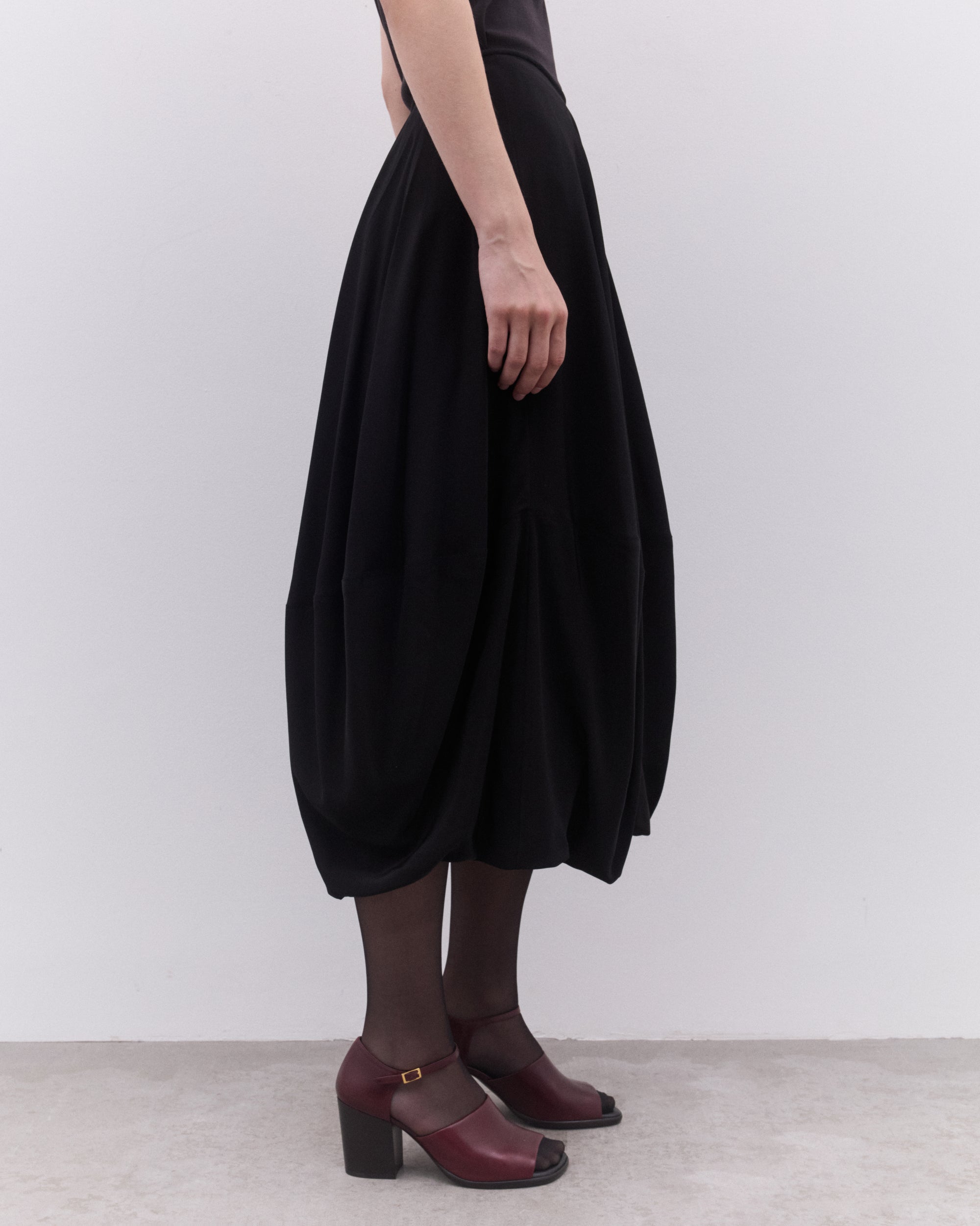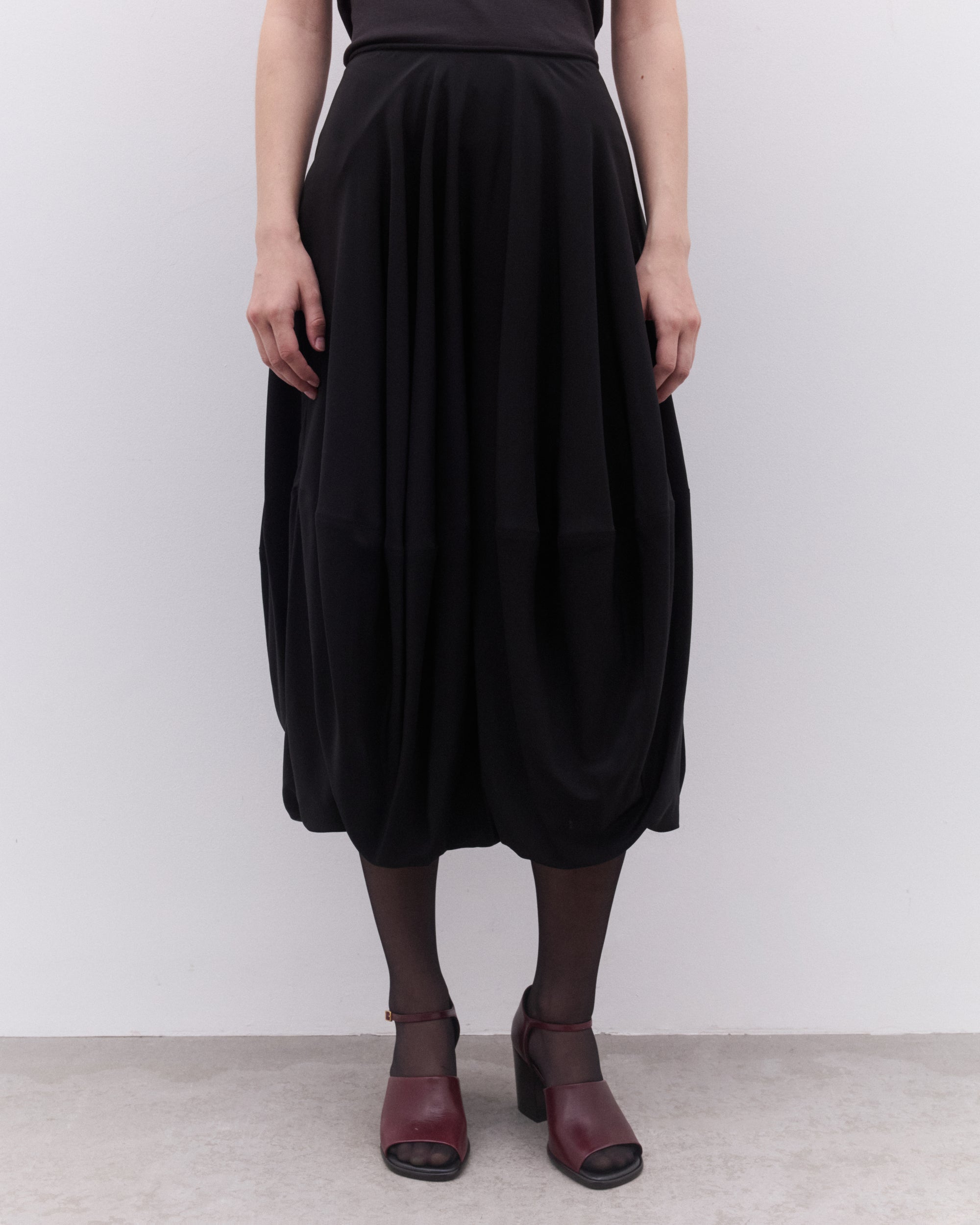 Balloon skirt in silk crepe de chineRegular and fluid fitMidi-lengthPartially lined modelThin waistbandSide closure with invisible zipper and hookHorizontal pane
