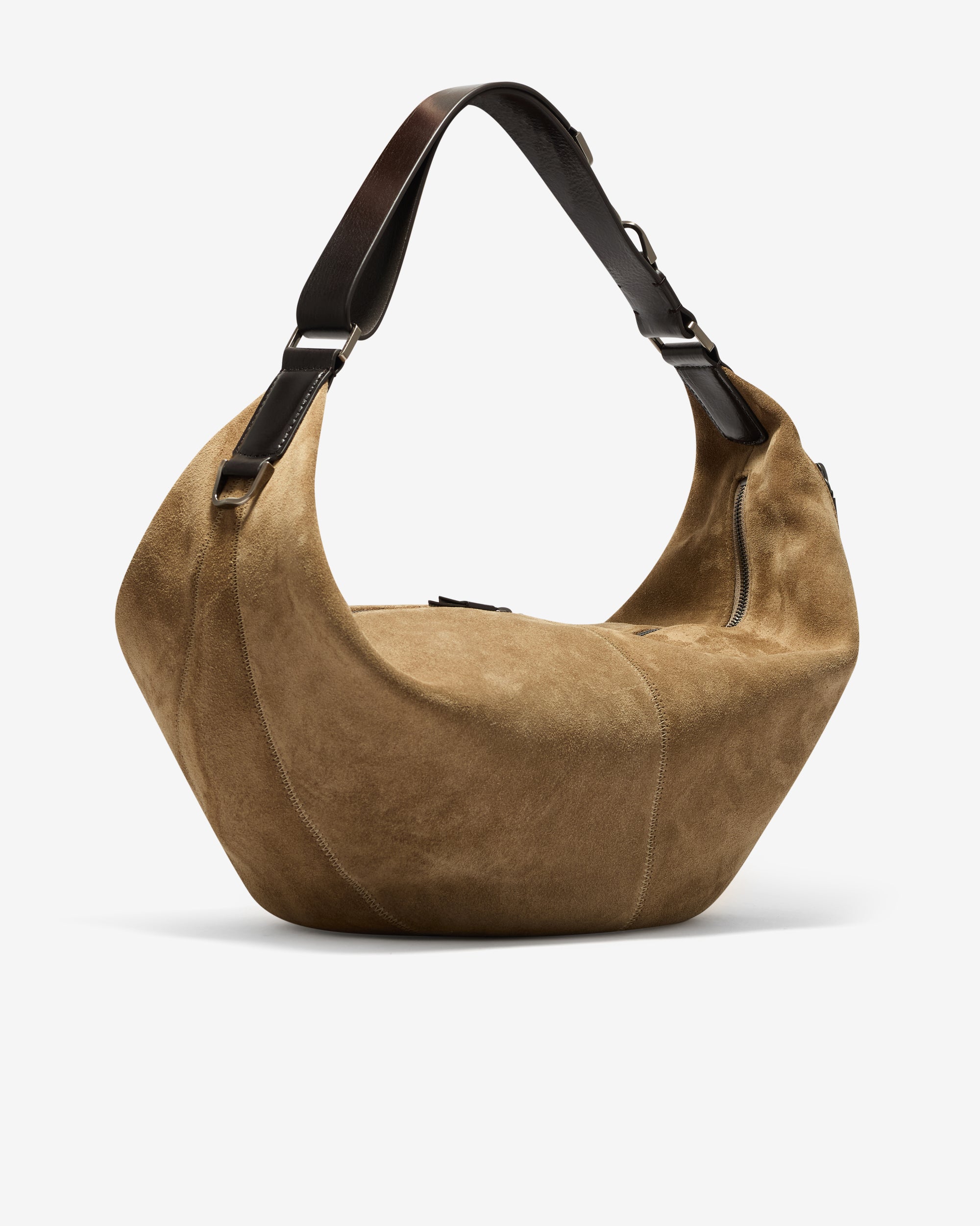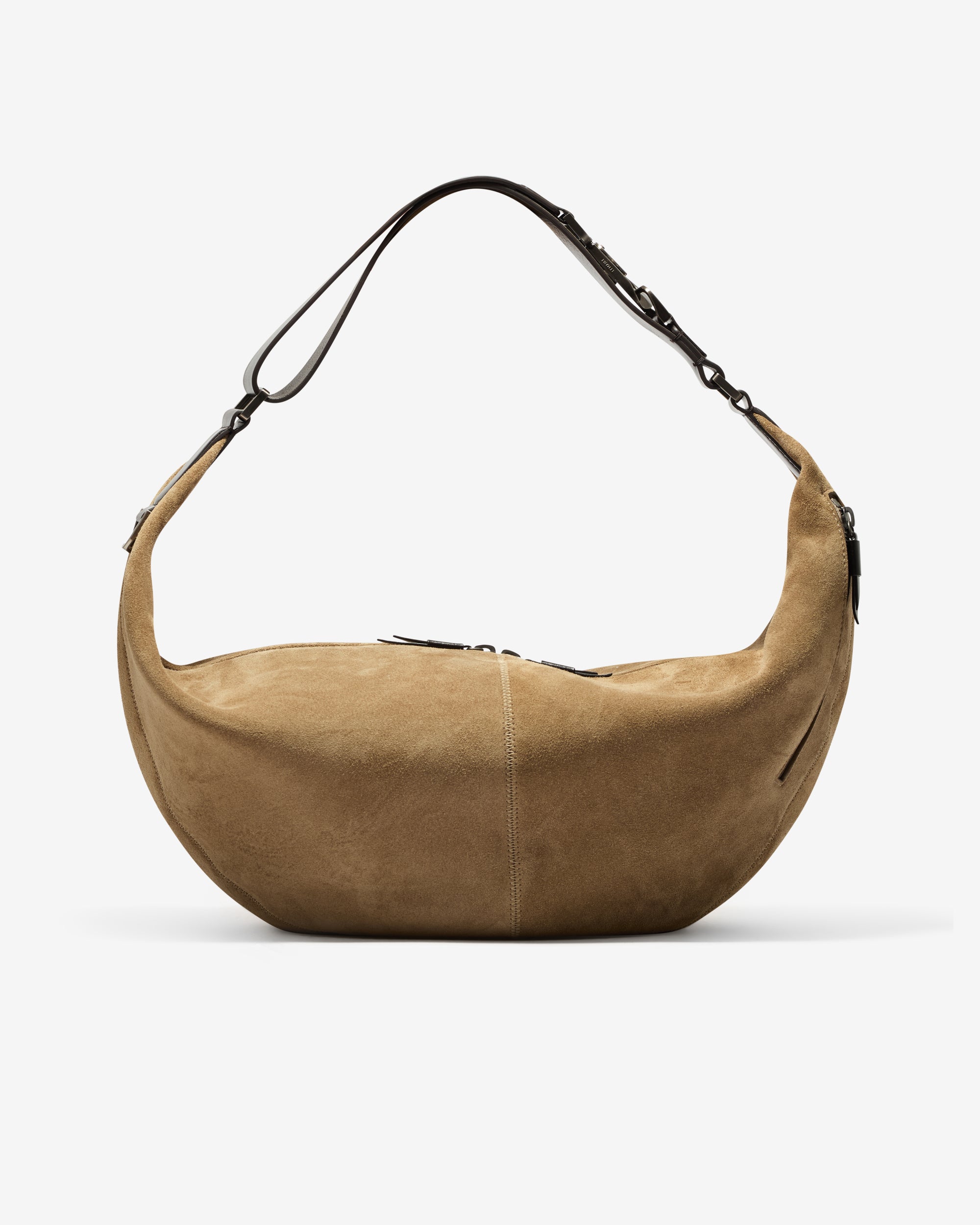 Adjustable handle in grained leather adjustable with buckles and carabiner hooks
