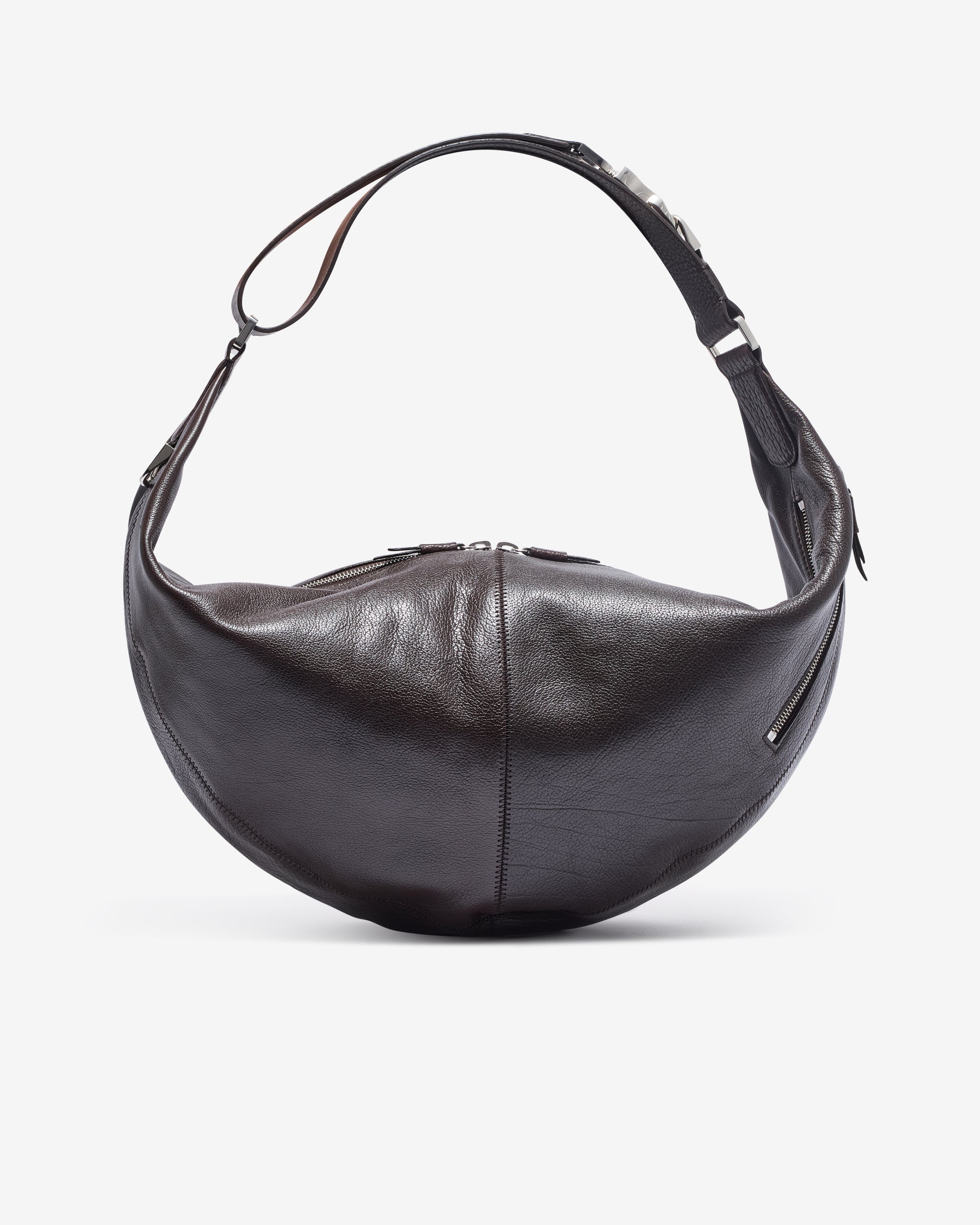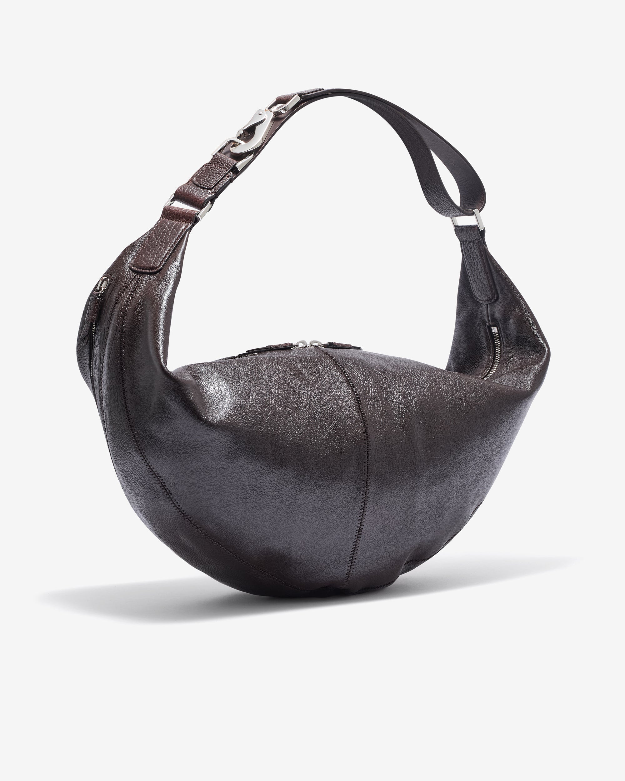 Adjustable handle in grained leather adjustable with buckles and carabiner hooks
