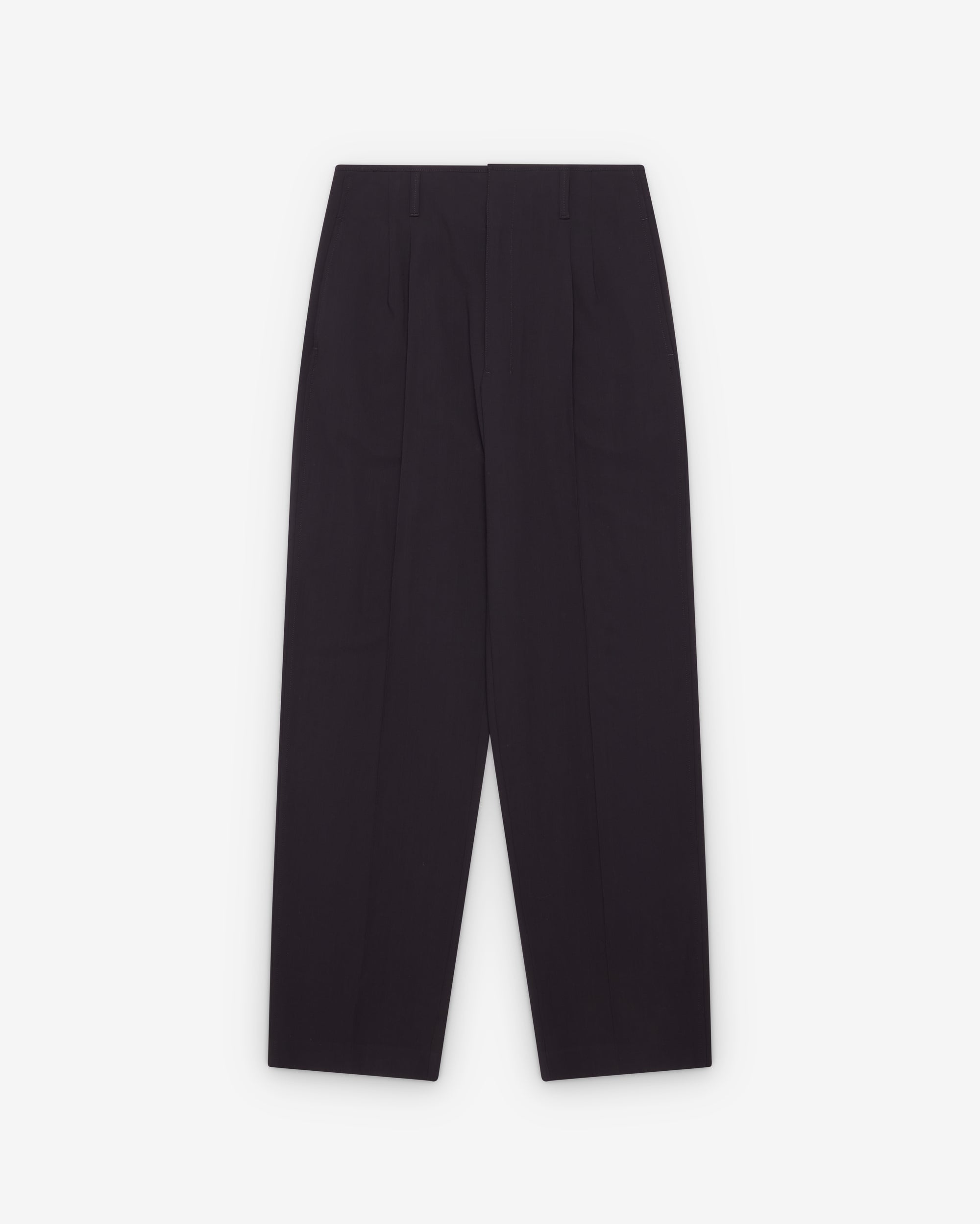 Tailored fitHook and eye waist closureZip flyFront pleatsSide seam pocketsTwo back pockets