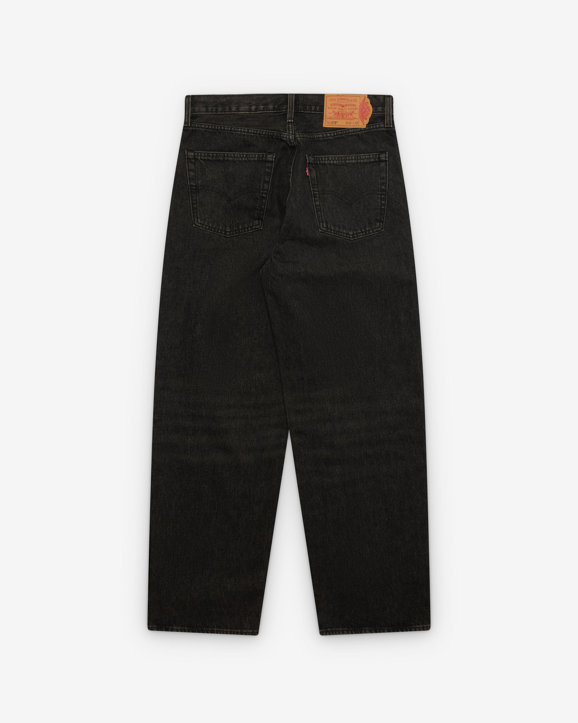 Washed, aged finishButton fly with branded hardwareClassic 5‑pocket constructionExtended inseamCo-branded patchEmbossed Air Jordan wingsLevi’s Red Tab