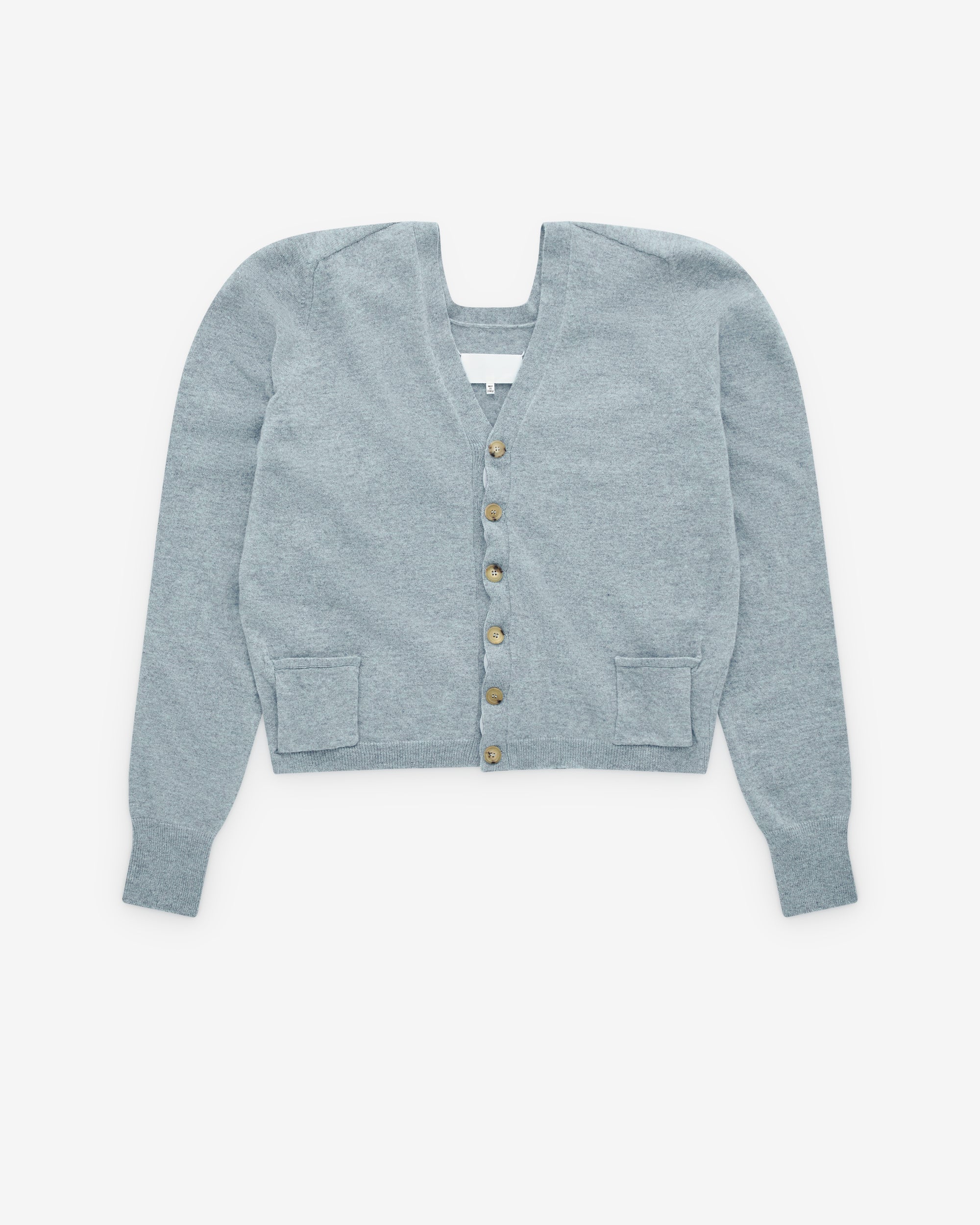 Cropped silhouetteV-neckline with front button fasteningTwo front pocketsBack shoulder detailRibbed cuffs and hemFour stitches at the back