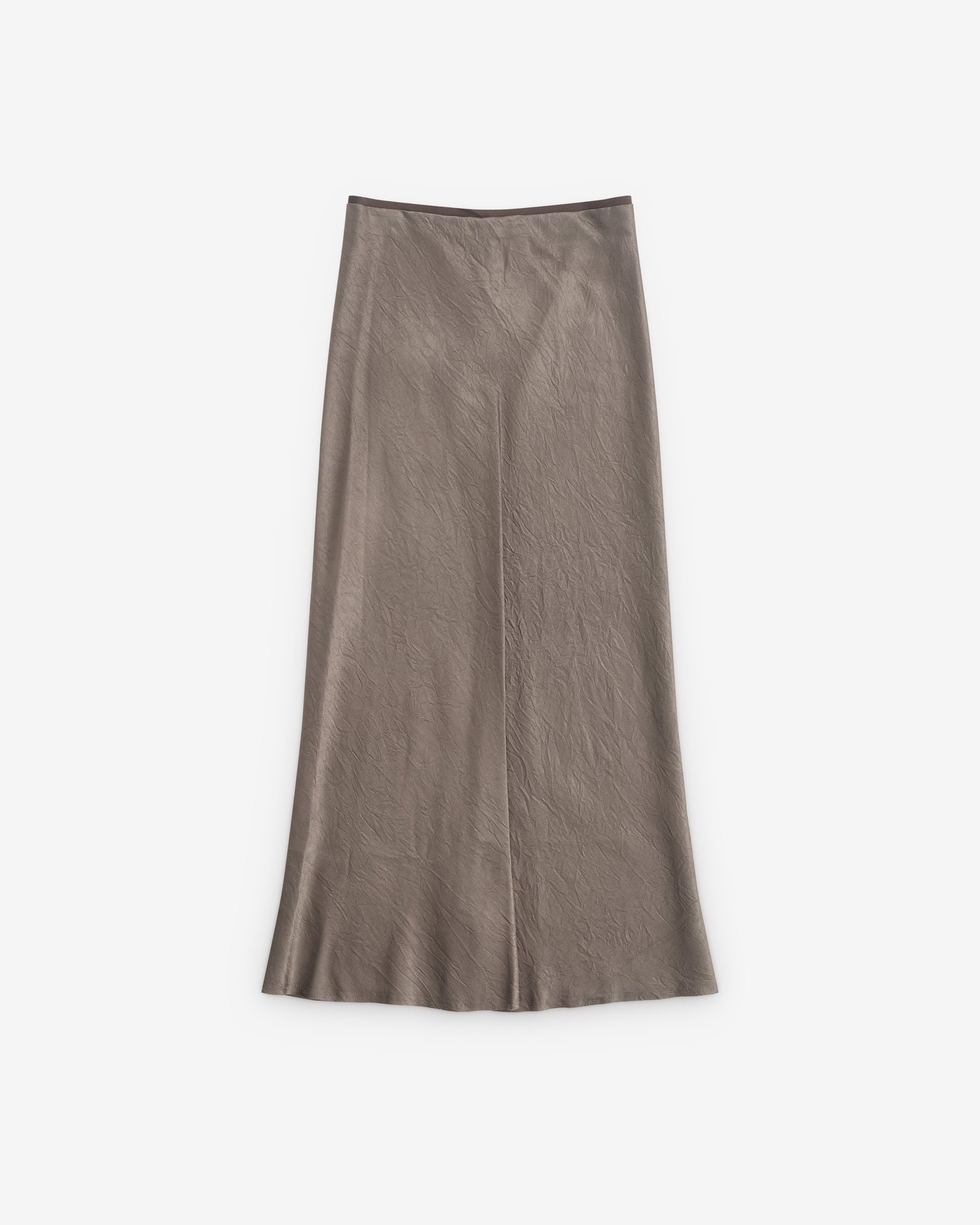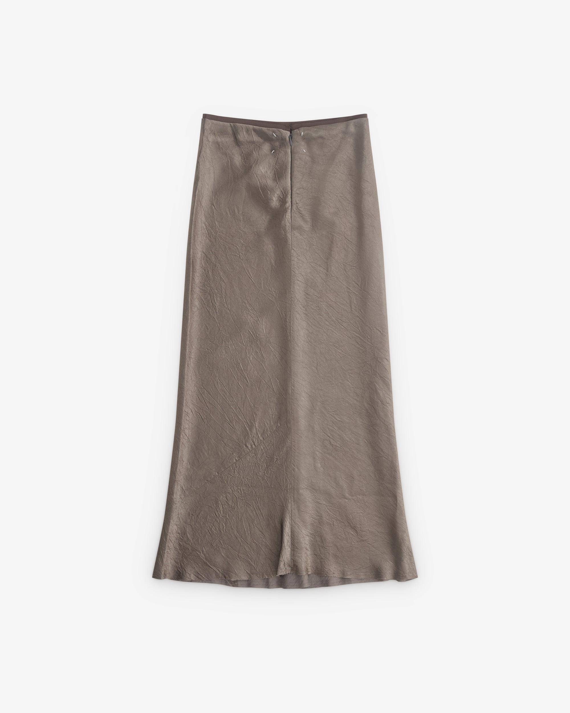 Bias cutElasticated waist bandMidi skirt lengthBack zip closureFour Stitches at rear