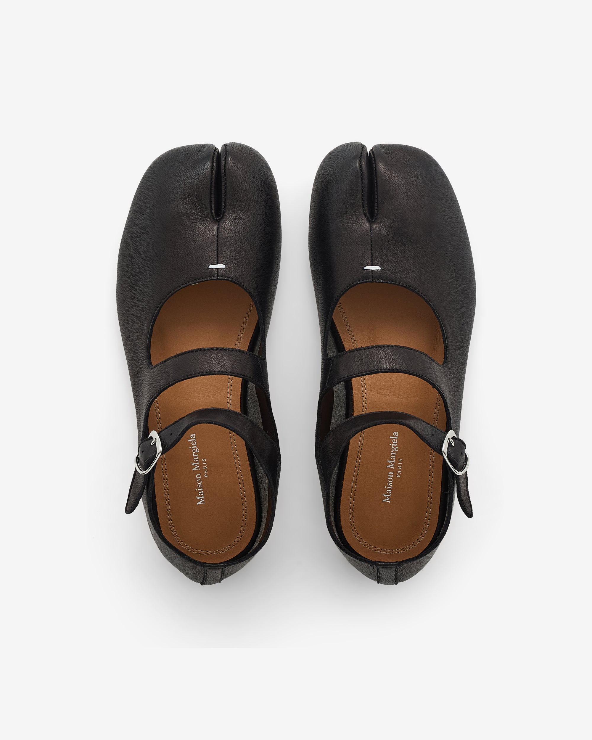Tabi split toeCut out detailsWhite stitching at the frontAdjustable ankle strapIsland sole with aesthetic seamInternal logo stamping