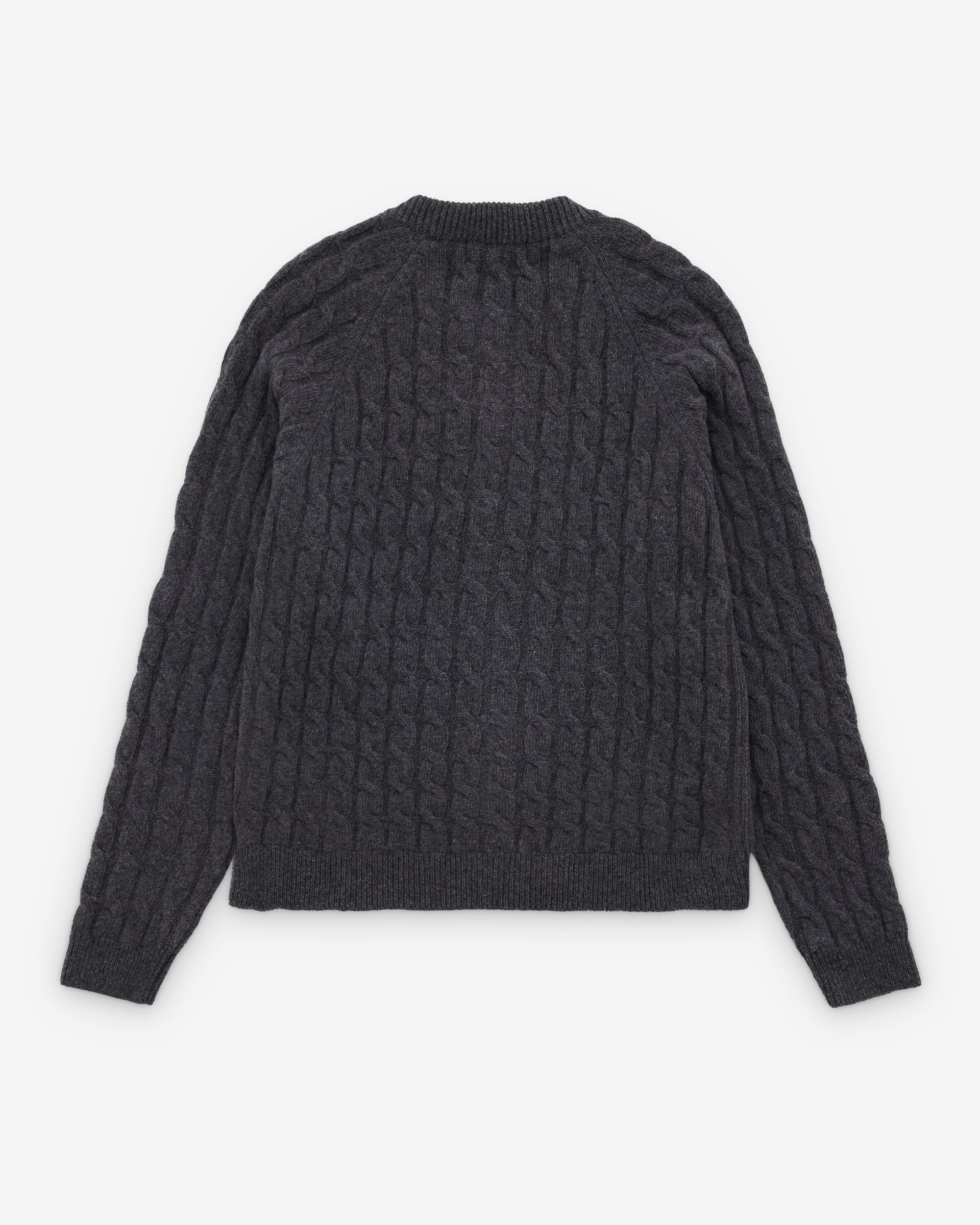 Rounded necklineFull length zip closureRaglan sleevesRibbed cuffs, hem and neckCable knit fabric