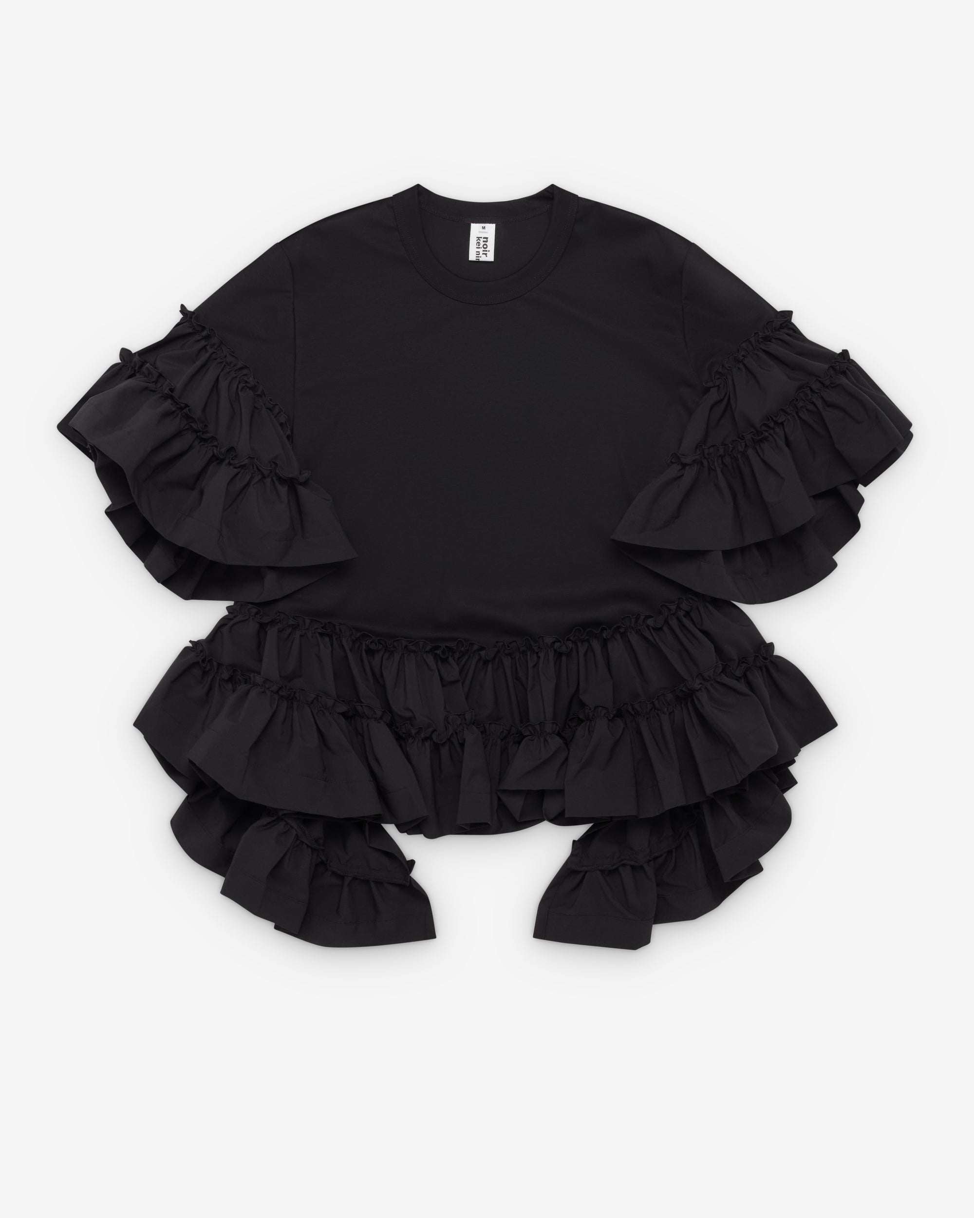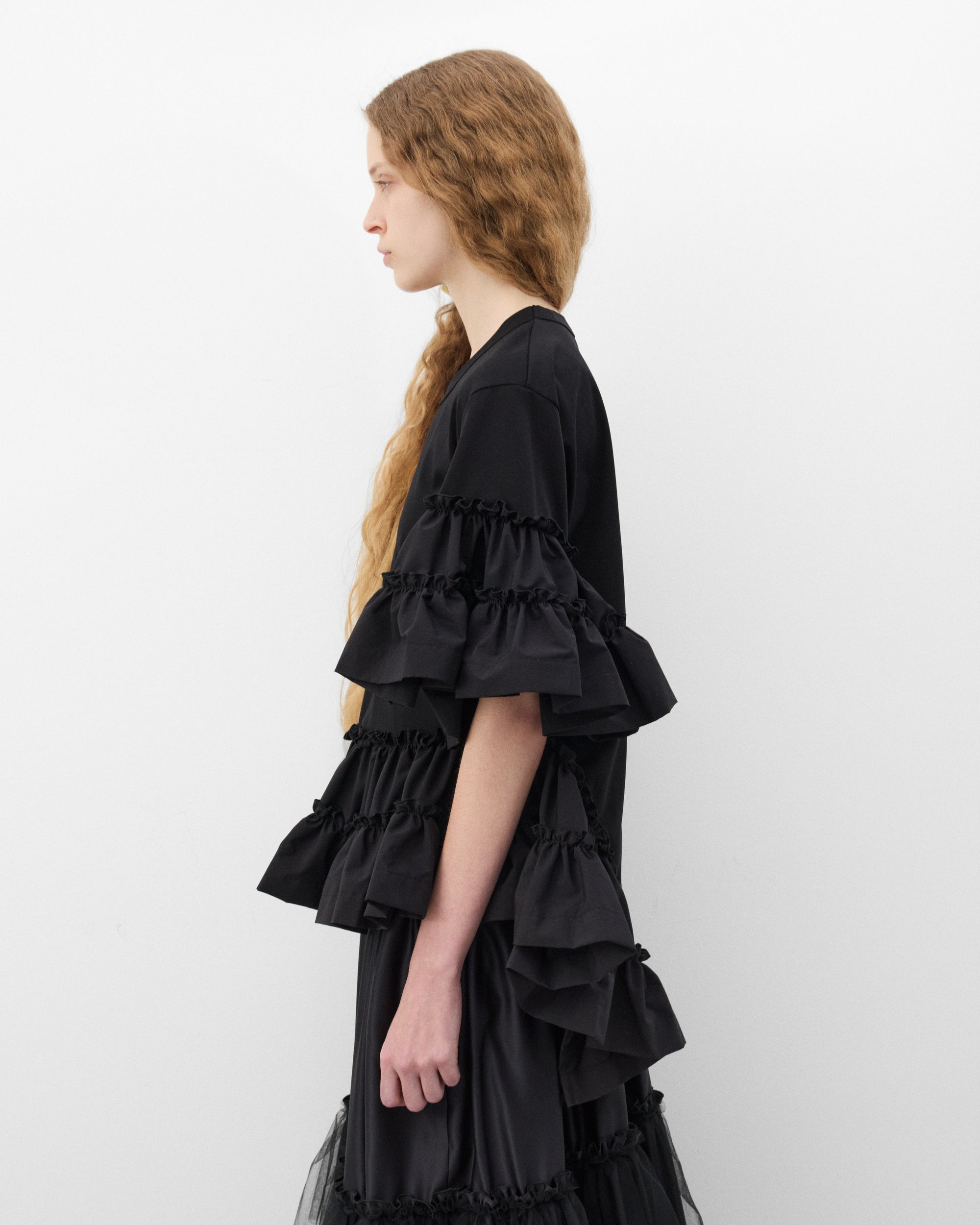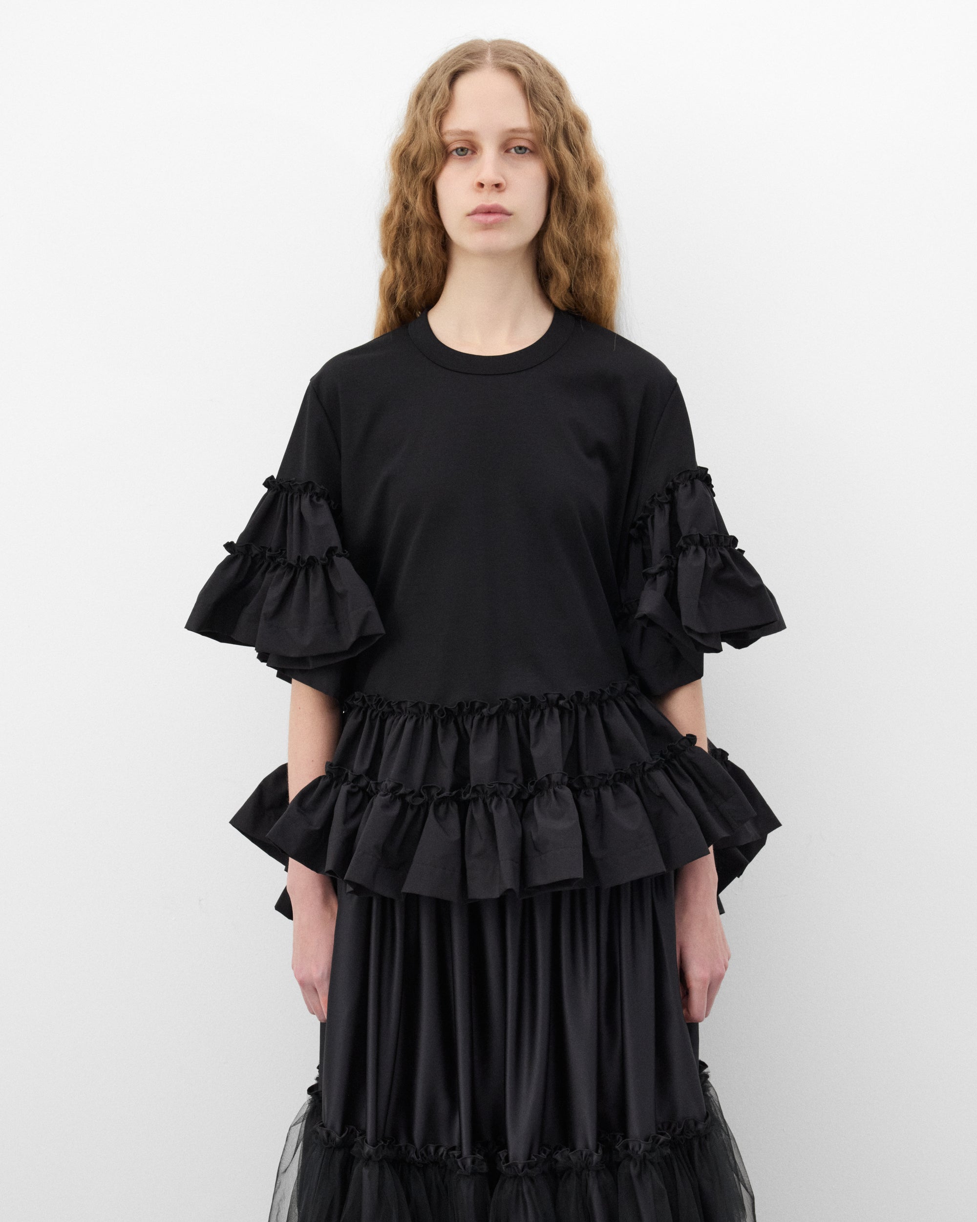 Ribbed crew necklineLayered ruffle sleevesRegular fitLayered ruffle hem