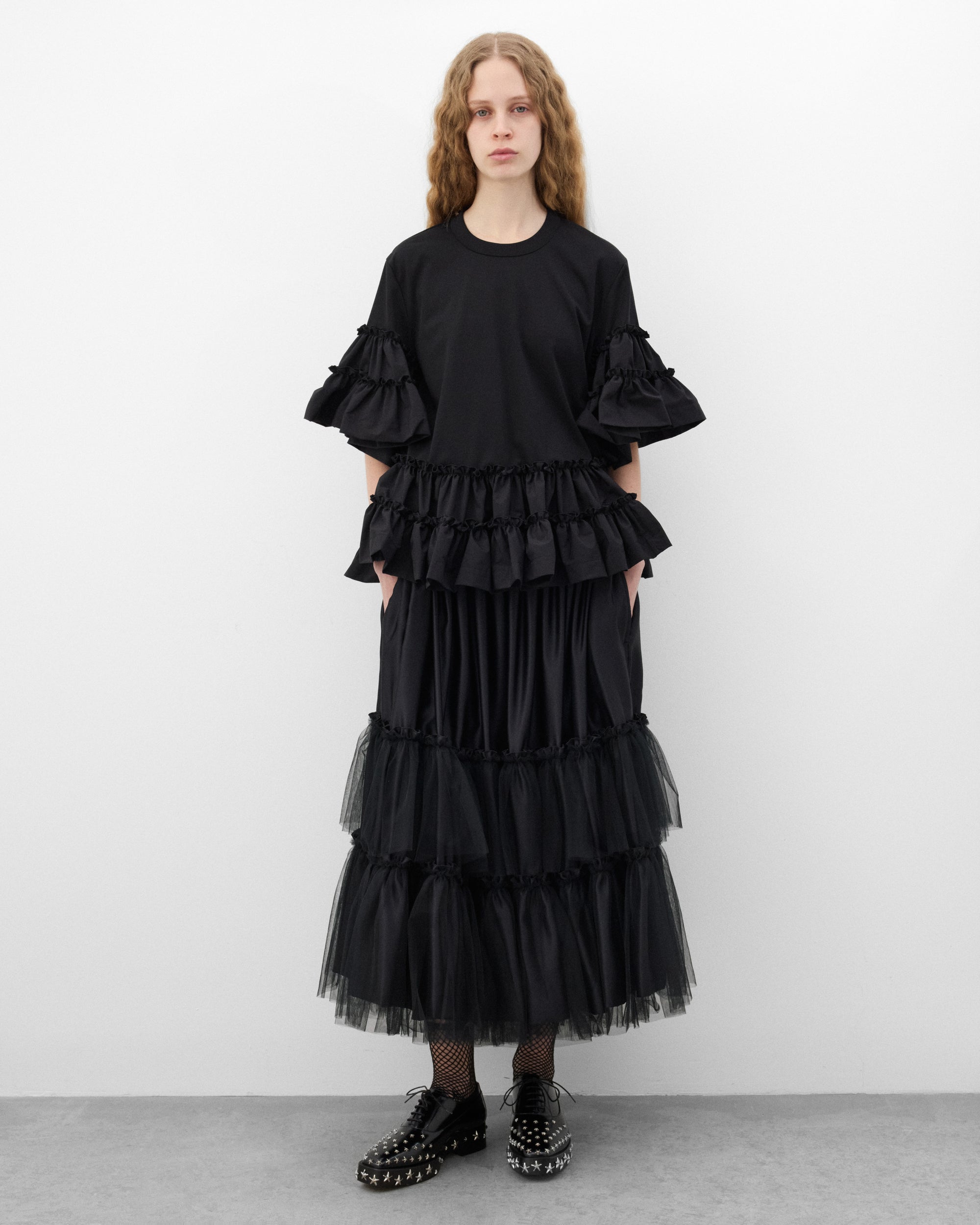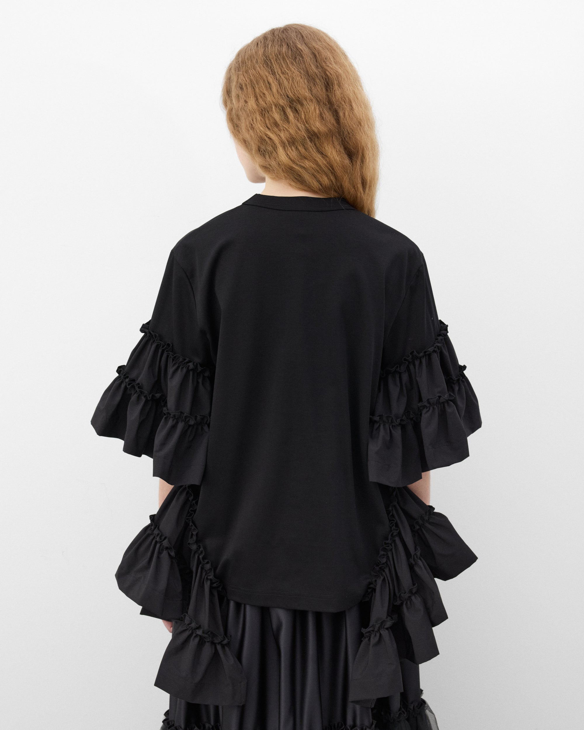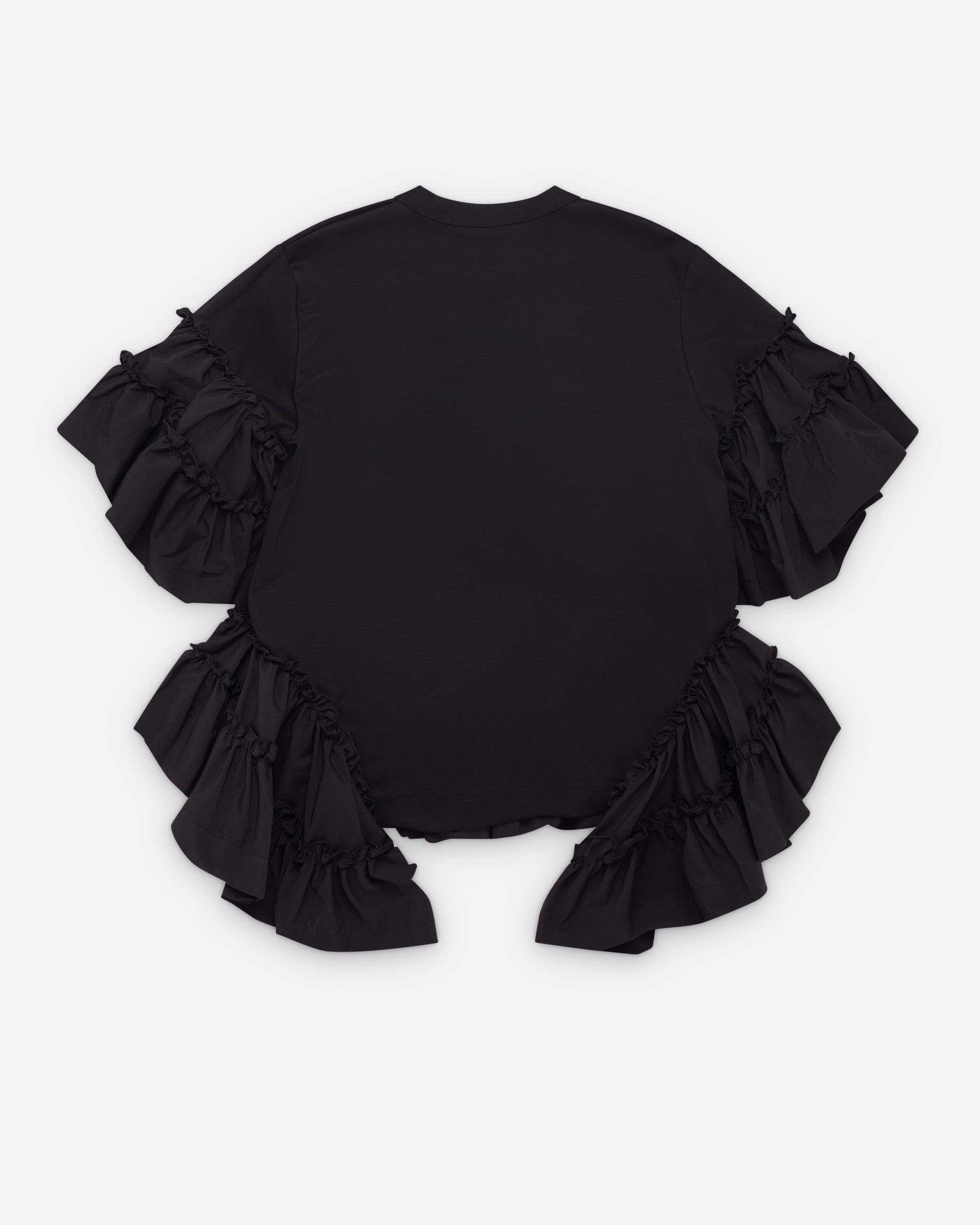 Ribbed crew necklineLayered ruffle sleevesRegular fitLayered ruffle hem