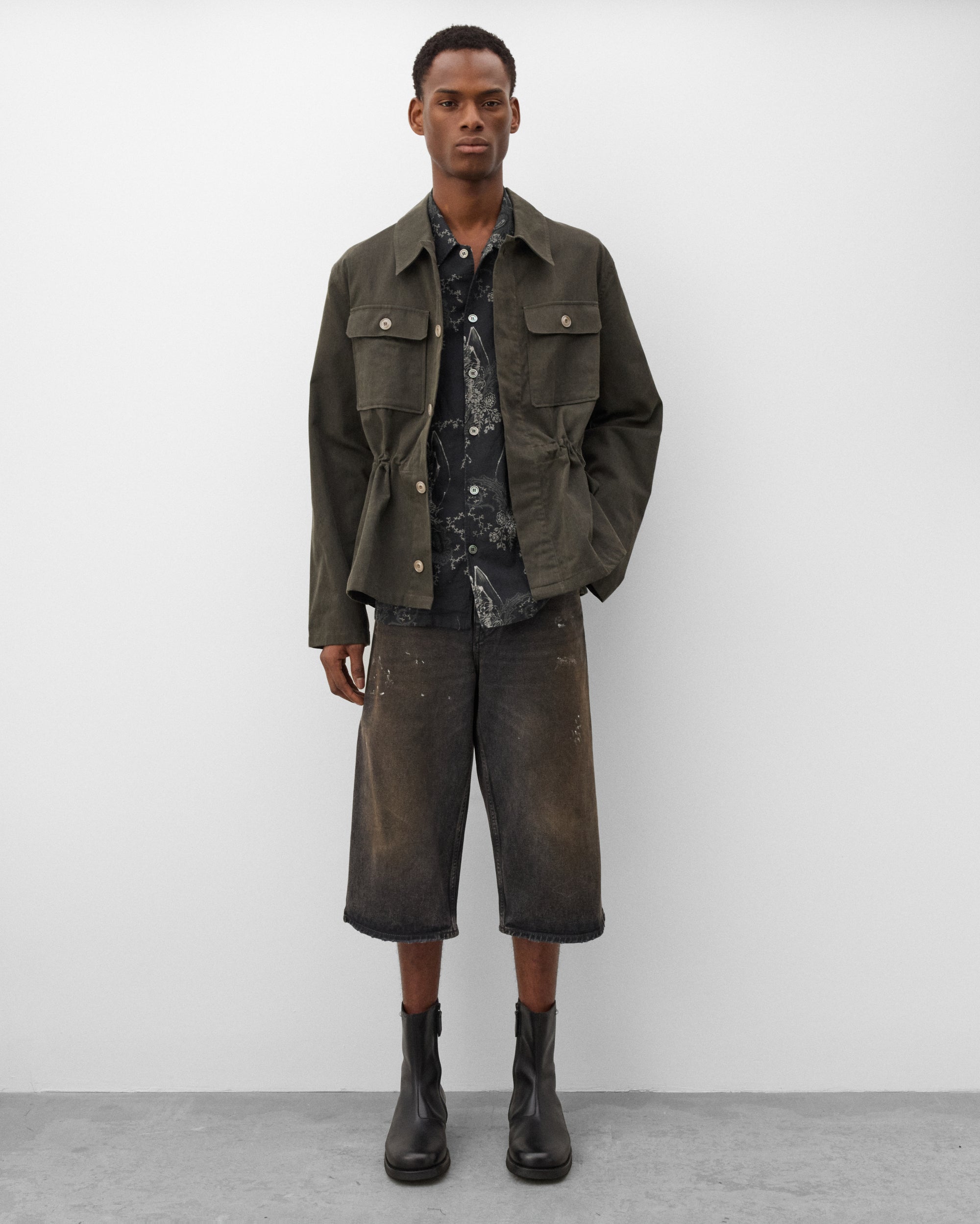 Pigment overdyed ecru denimHand-finished vintage wear and stainingRelaxed fitWide cropped legYKK zip flySteel rivetsOUR LEGACY embossed patchFive pockets