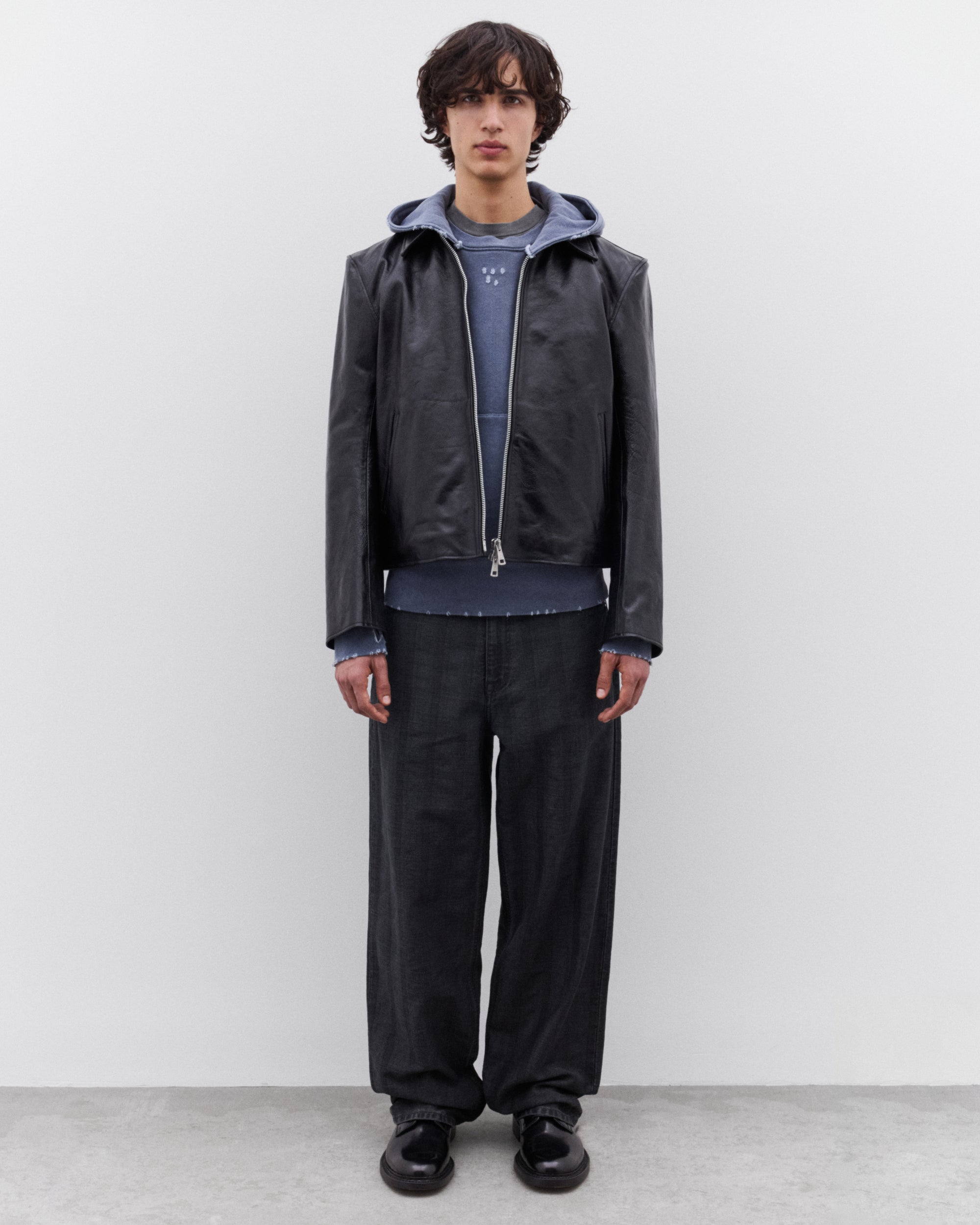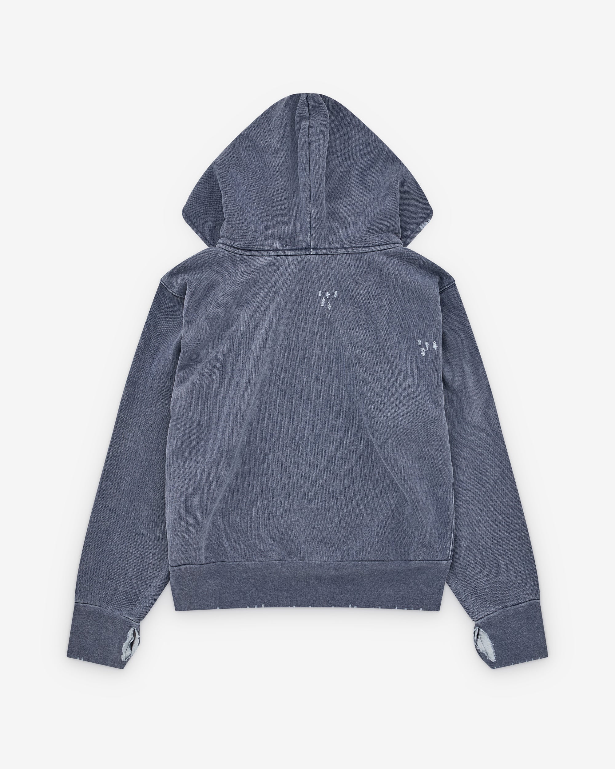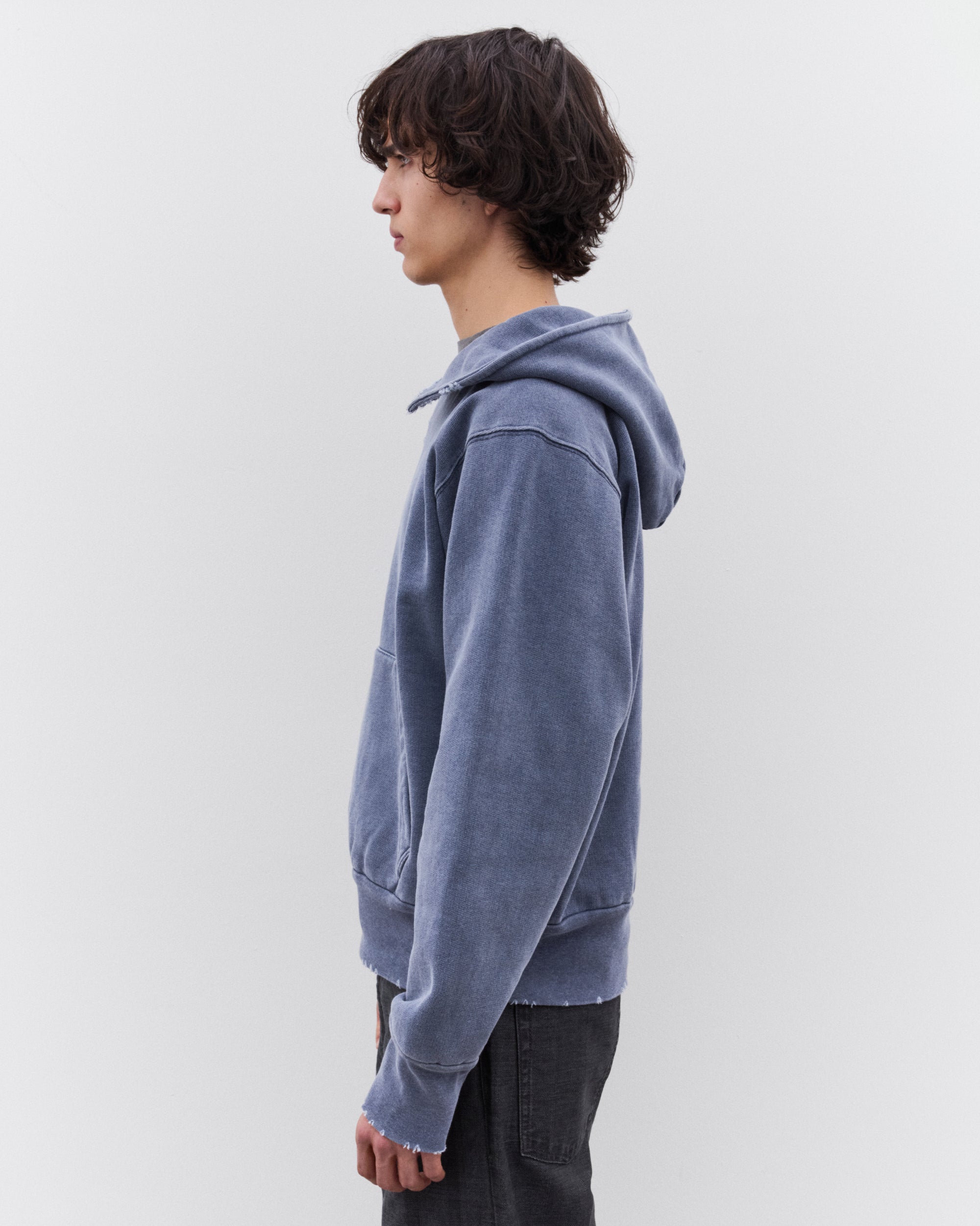 Pigment printedDistressed detailsWide ribbed necklineOpen hood with raw edgesRibbed hem and cuffsDistressed thumb openingsKangaroo pocketBoxy fit
