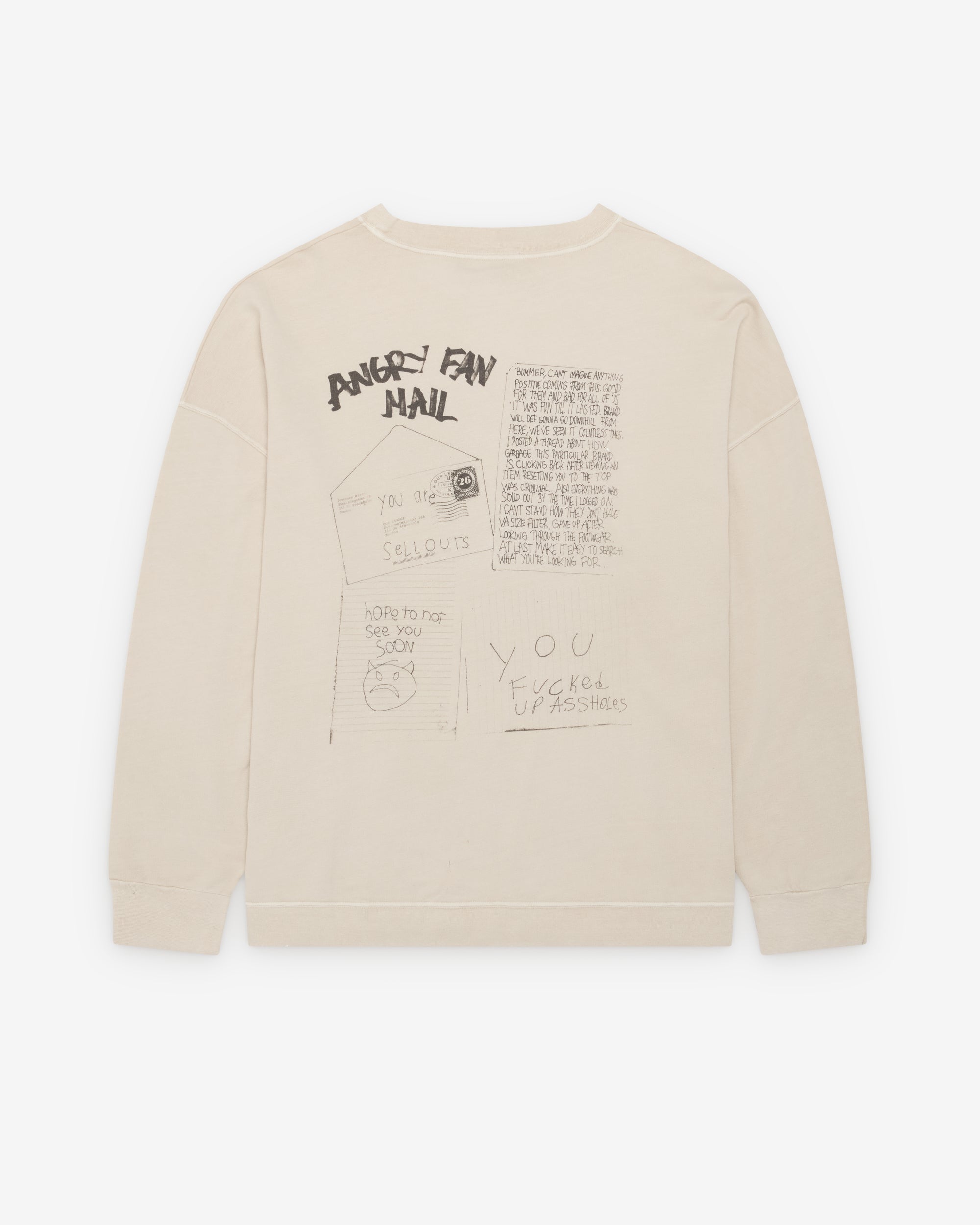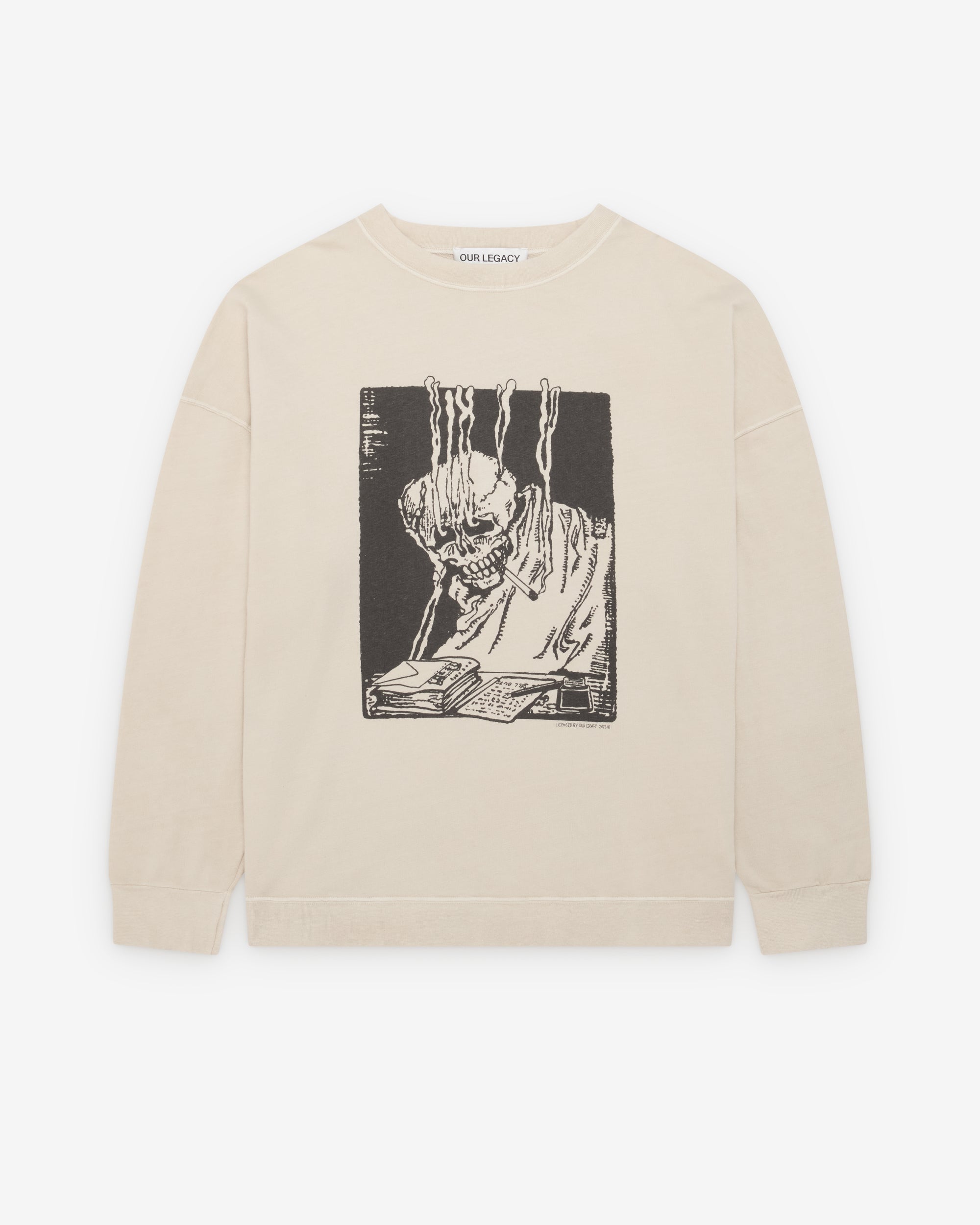 Pigment dyedScreen printed graphicSlouchy neckRibbed cuffs and hemDropped shouldersOverlocked shoulder seamOversized elongated fit