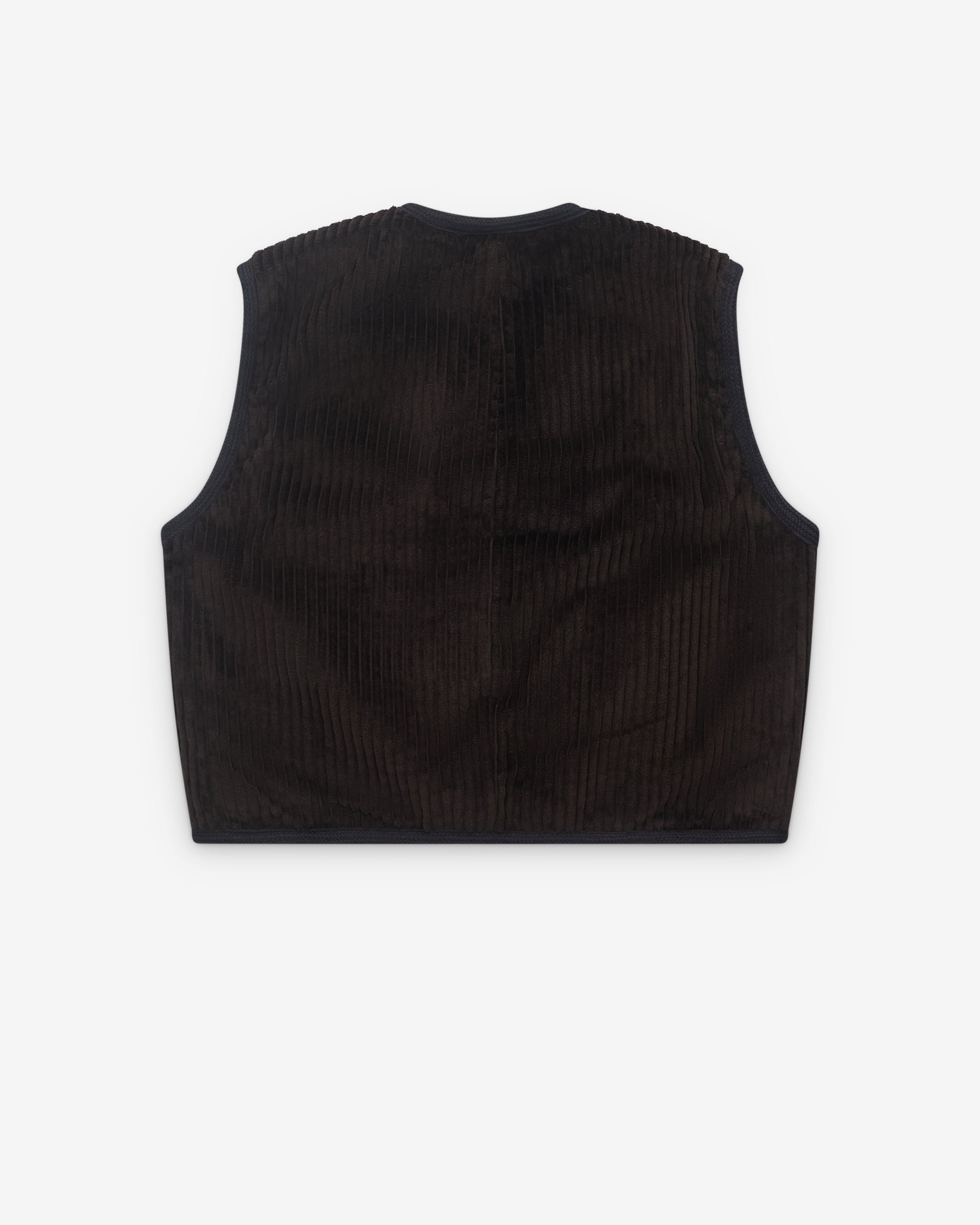 Boxy fitV-neck lineTwo way zip closureCotton corduroy fabricFleece lining