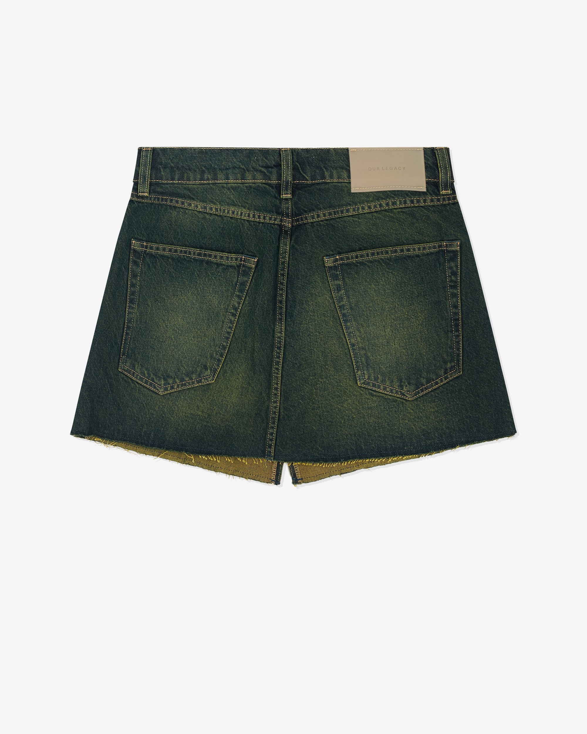Turkish denimVintage washedFront splitRaw edge hemYKK zip flyButton closureMetal rivetsReinforced back pocketsOur Legacy embossed rubber patch