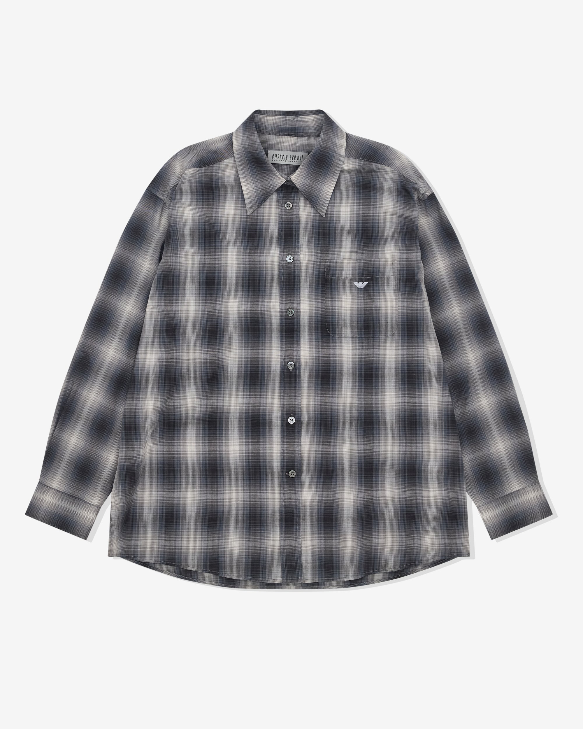 Point collarPatch pocket at chestLogo at pocketCurved hemButton fasteningCheck print