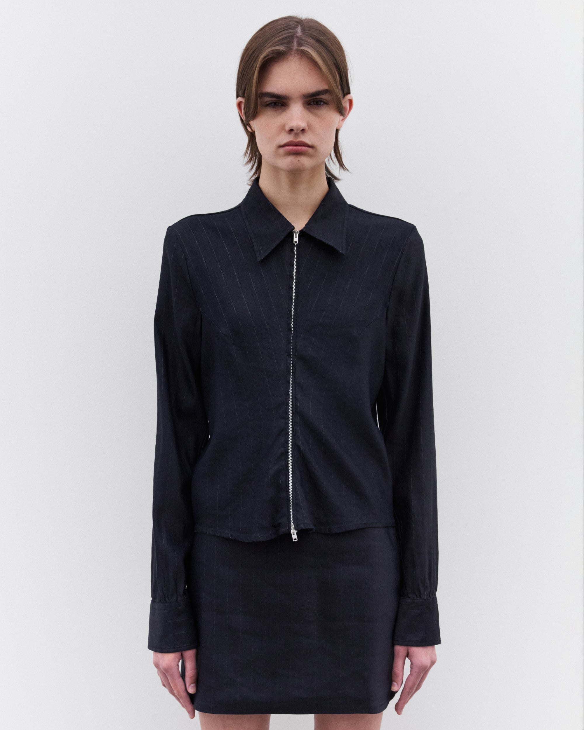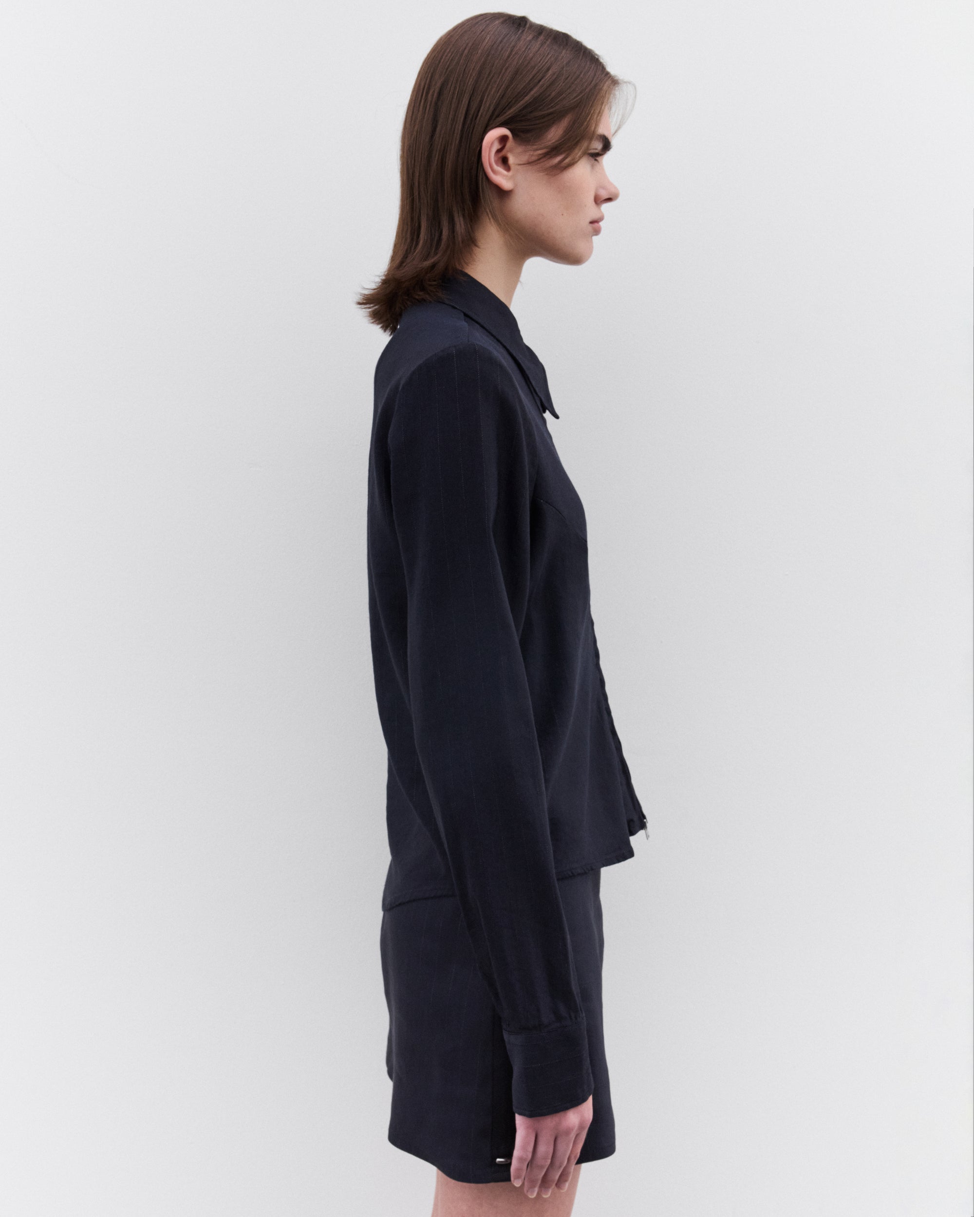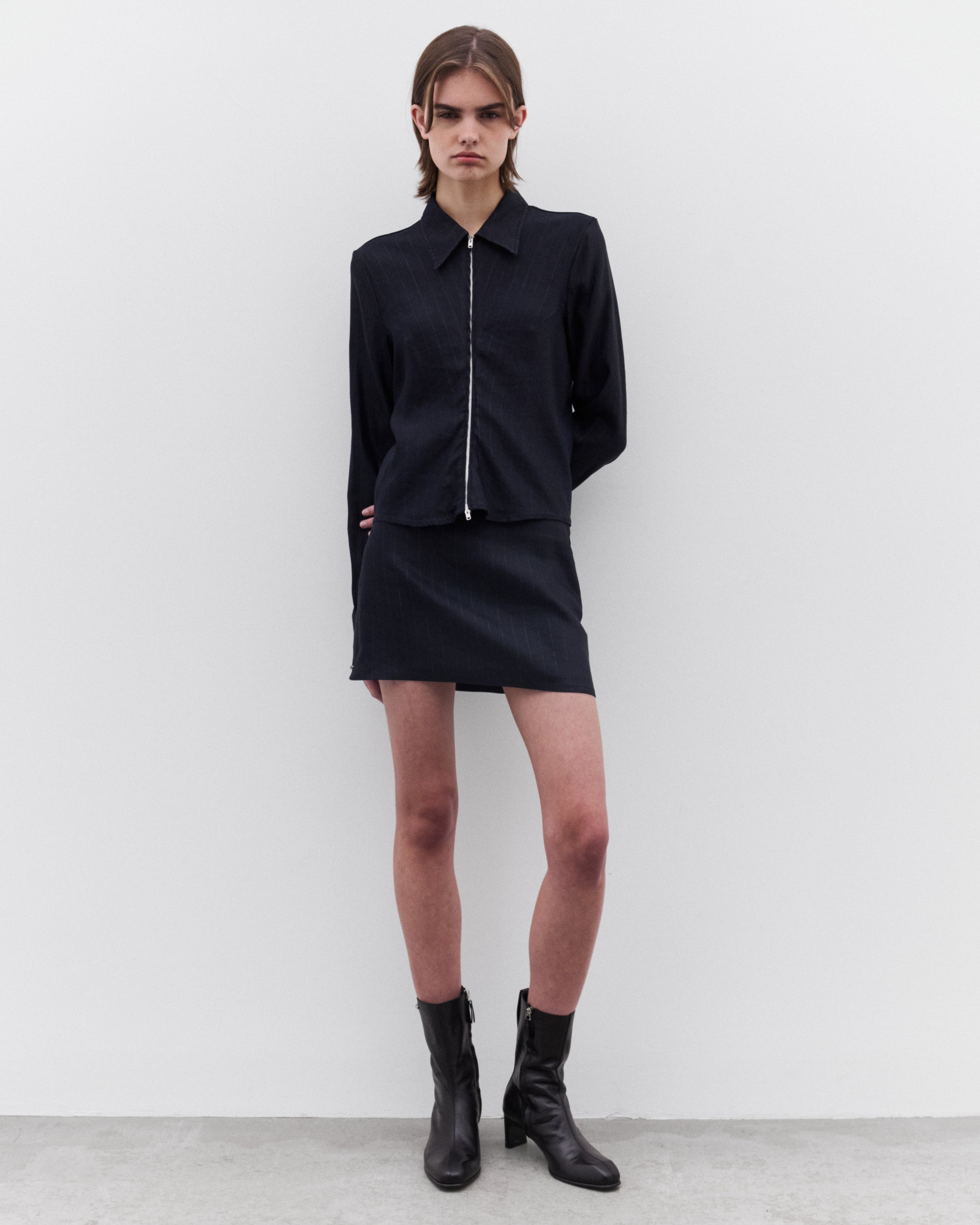 Lampo two way zipDarted for shapeButton cuffsNo side seamsCurved hemRegular, slim fit
