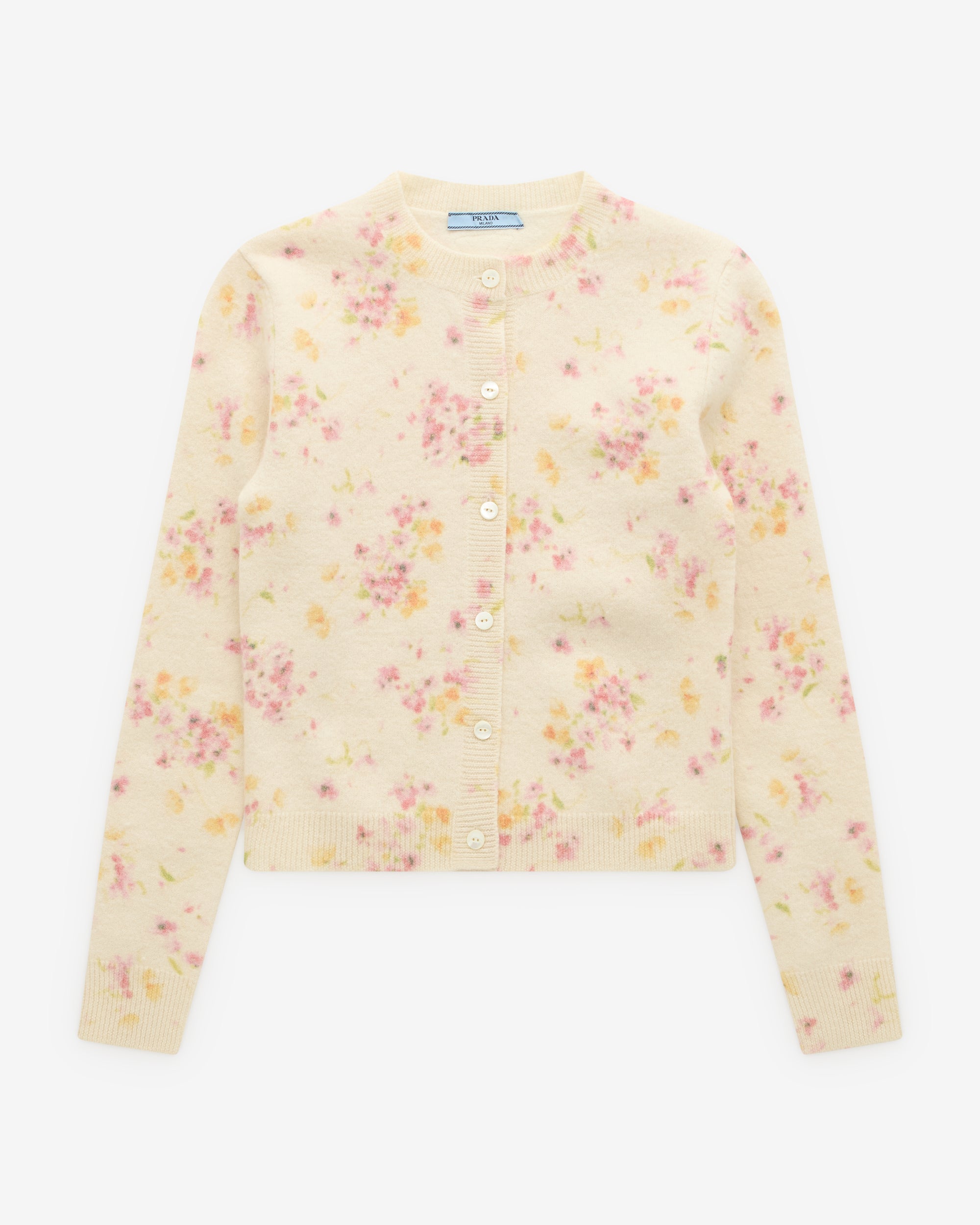 Long sleevesPlain knitSlim-fit silhouette Ribbed knit neckRegular shoulderRibbed knit cuffs and hemKnit triangle logoFront button closurePrinted garment