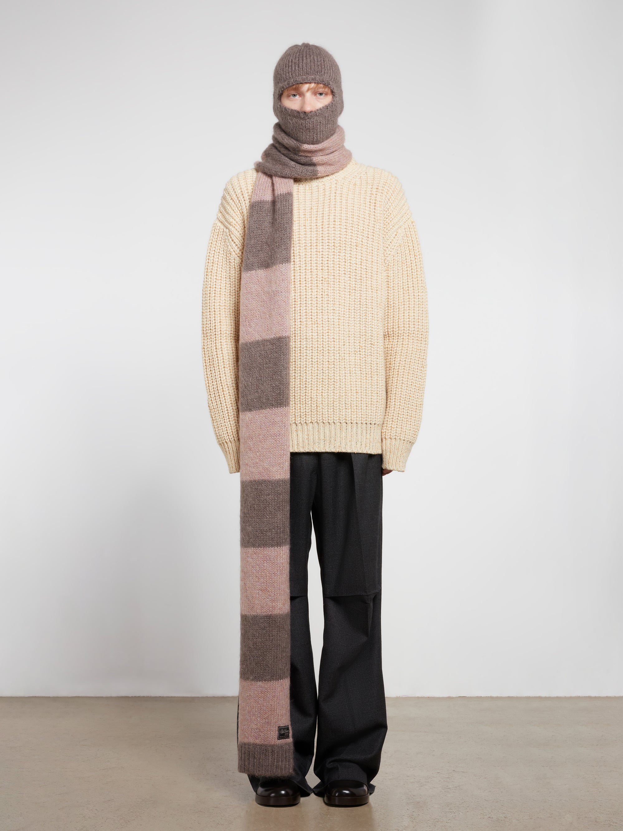 For AW22, Raf Simons combined the classical with the experimental to offer an array of knitwear silhouettes. This simple Men’s jumper is elevated by its bulky fisherman rib knit construction and pearly cream wool blend. The design is crafted for a relaxed fit and is finished with a crew neck, dropped shoulders and rib knit trims.