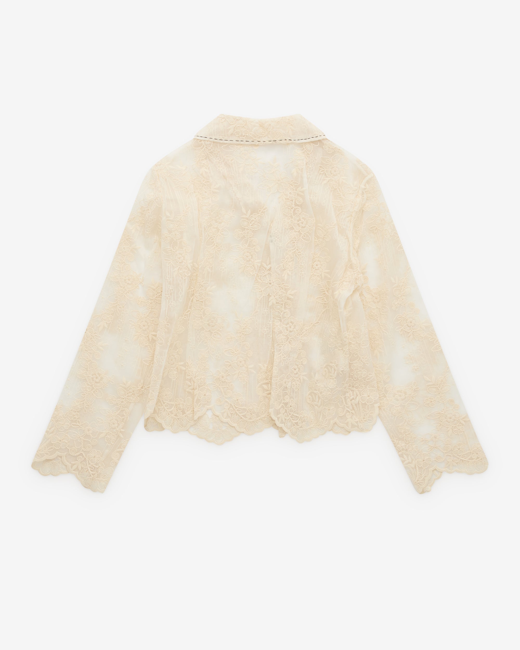 Open collarContrast button closureTop-stitching detailLong sleevesCropped, boxy fit