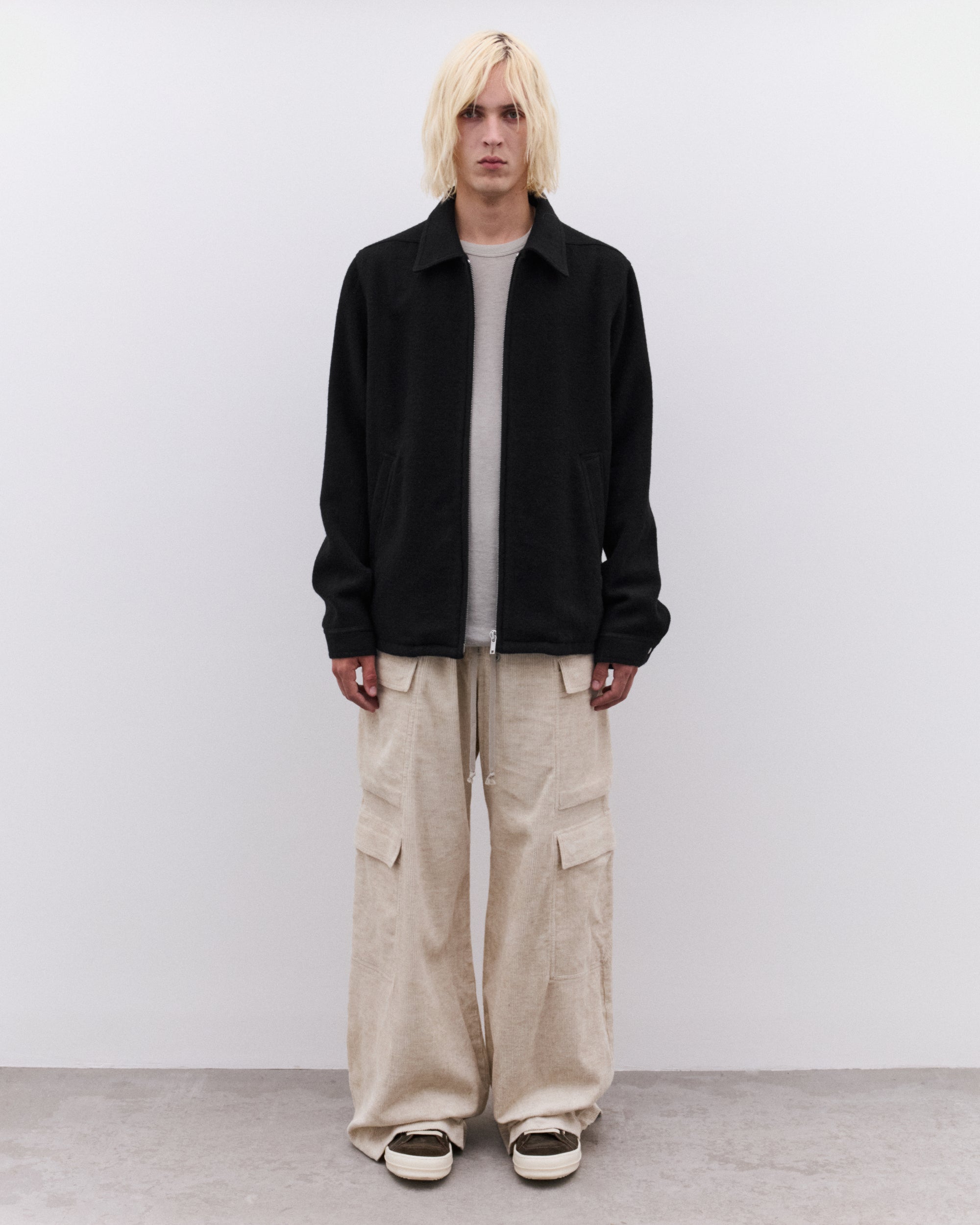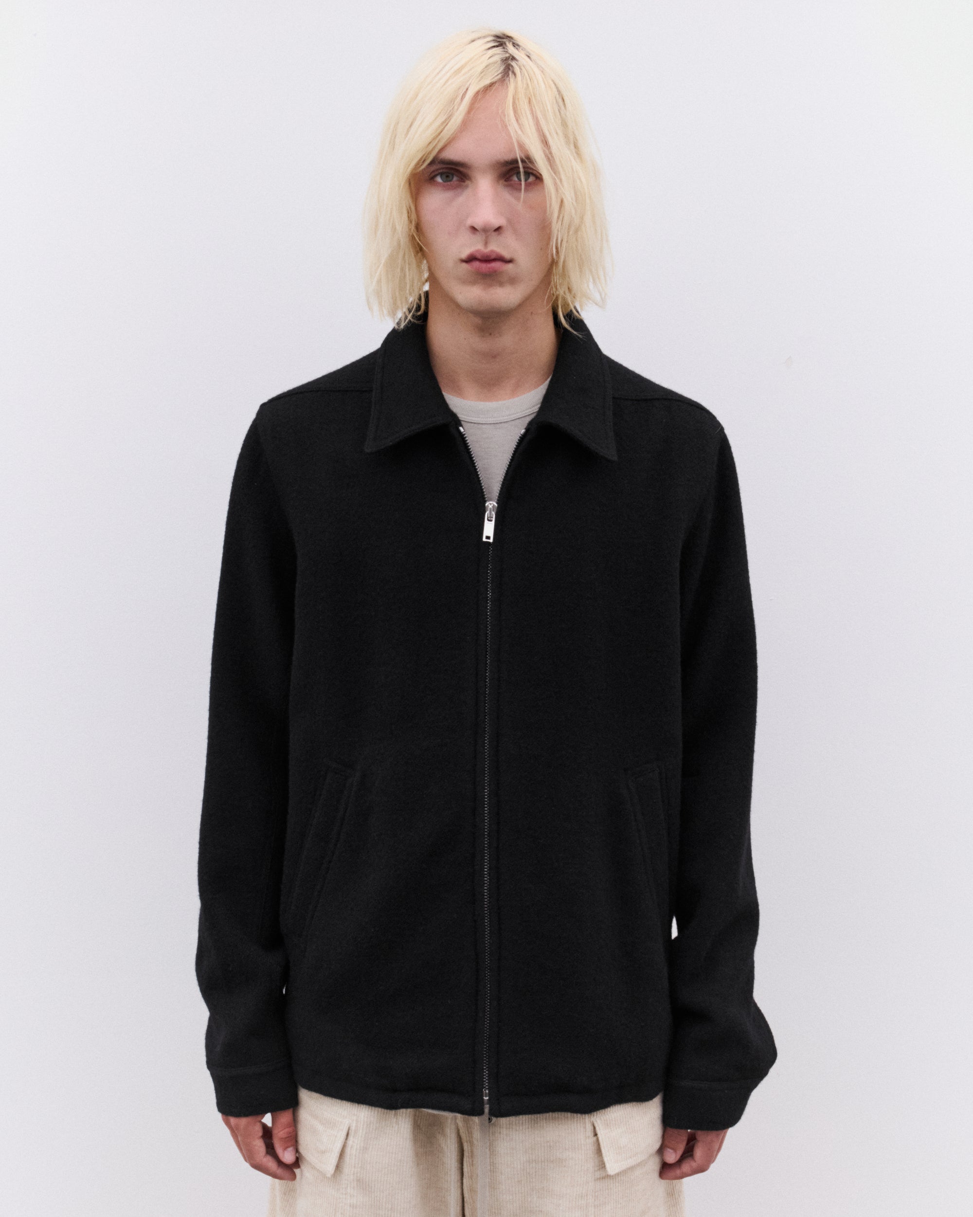 Point collarZip fasteningFront welt pocketsButton cuffsSilvertone hardwareBoxy fit