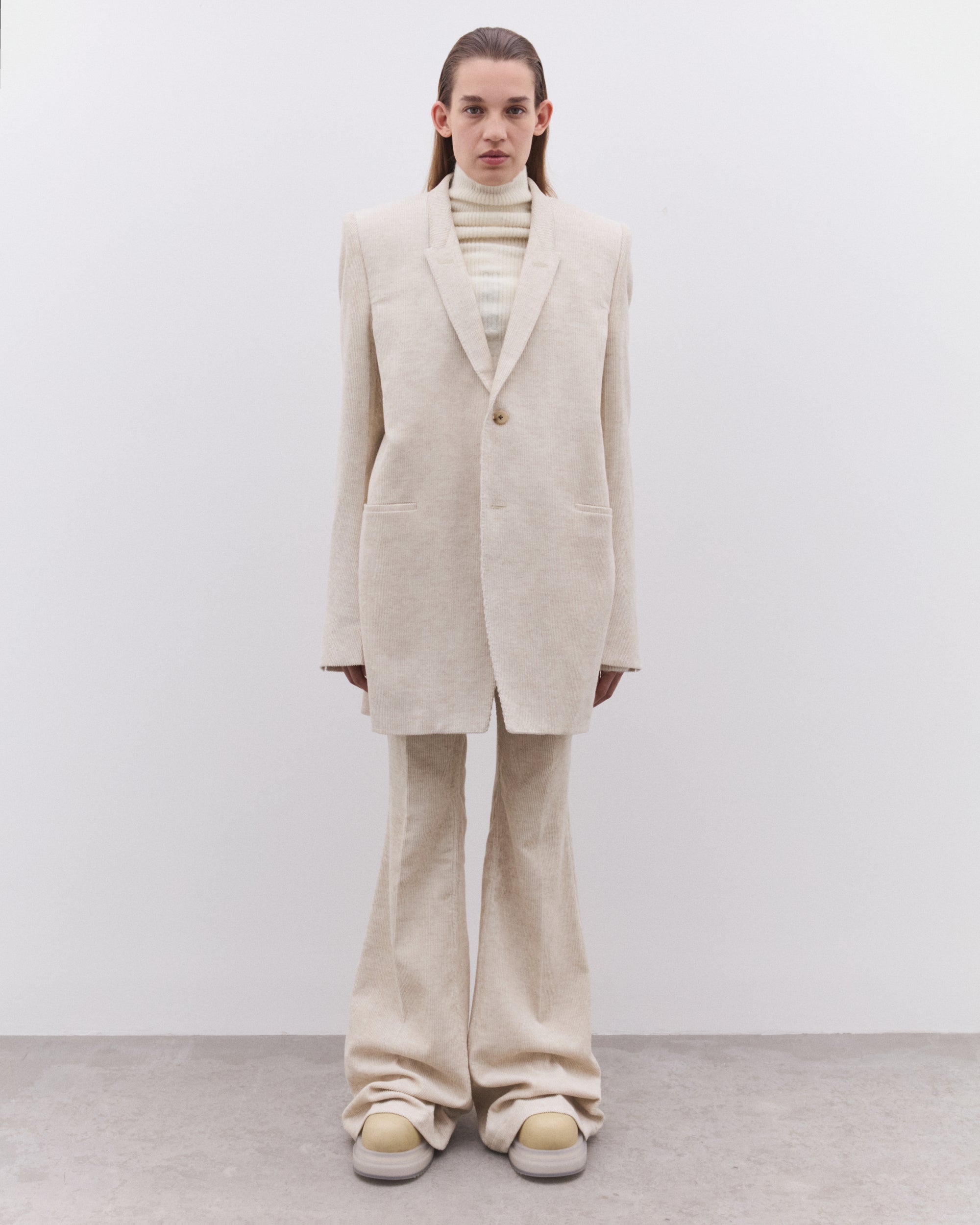 The color of this corduroy is natural with slubs and impurities visible as a part of the coloration.