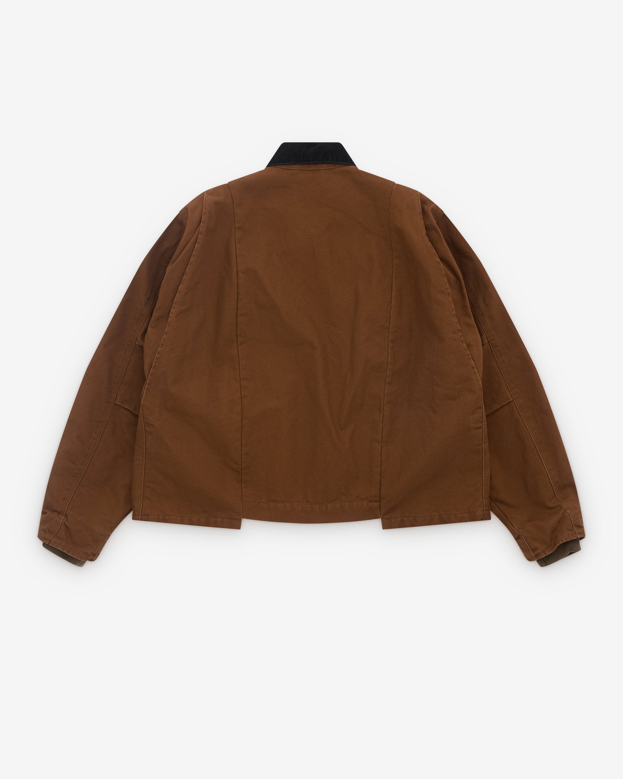 Corduroy collarMetal two way zip closureDual branded patch at chestFull internal liningRibbed cuffs