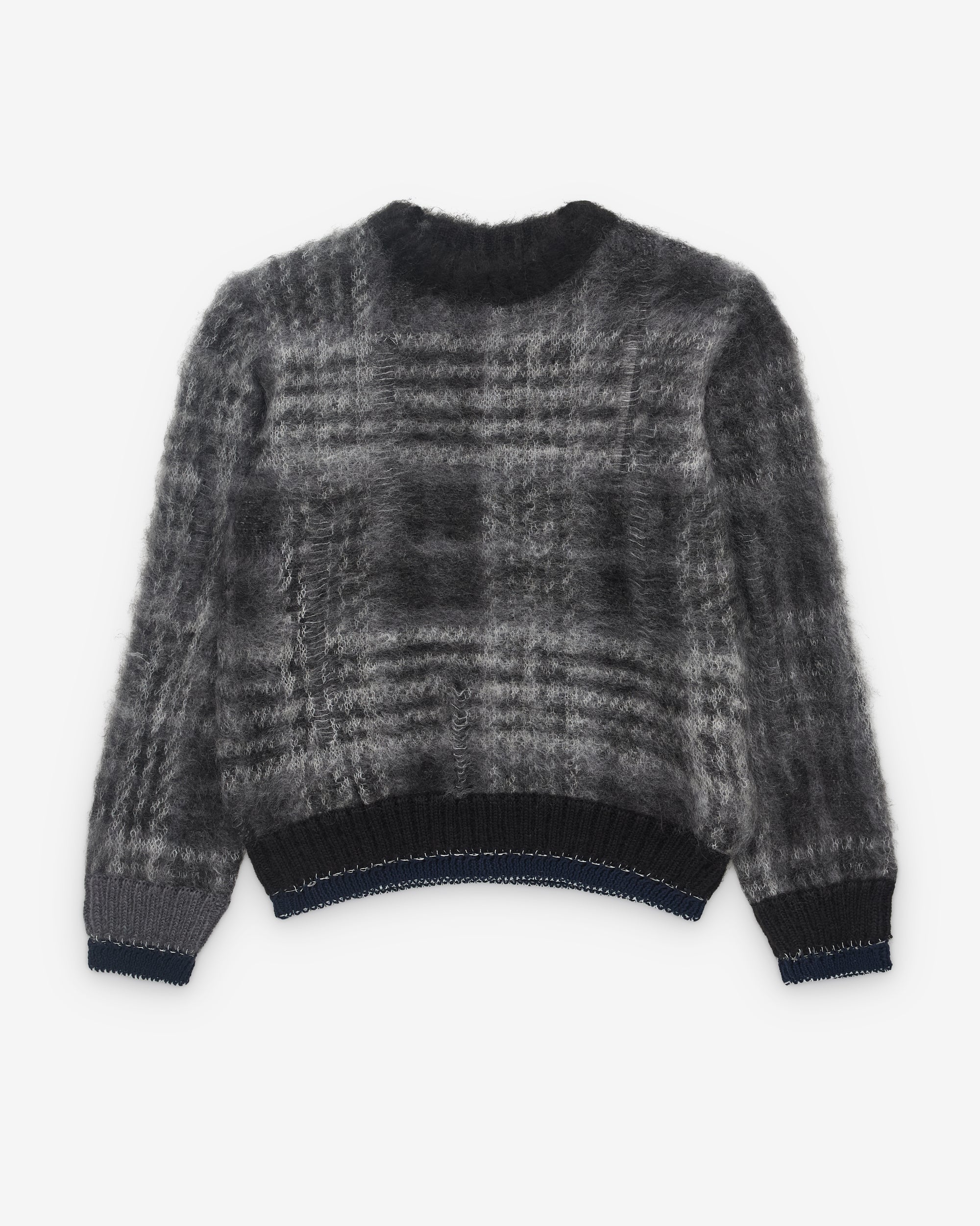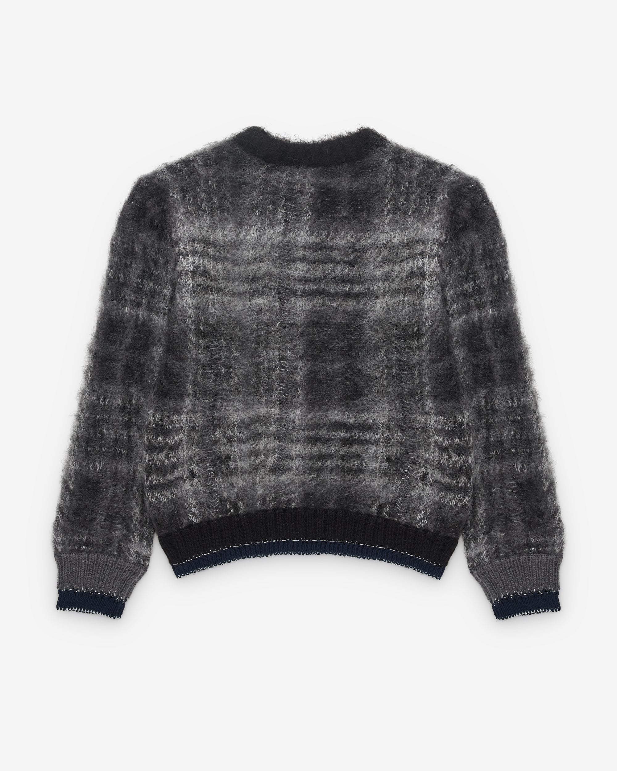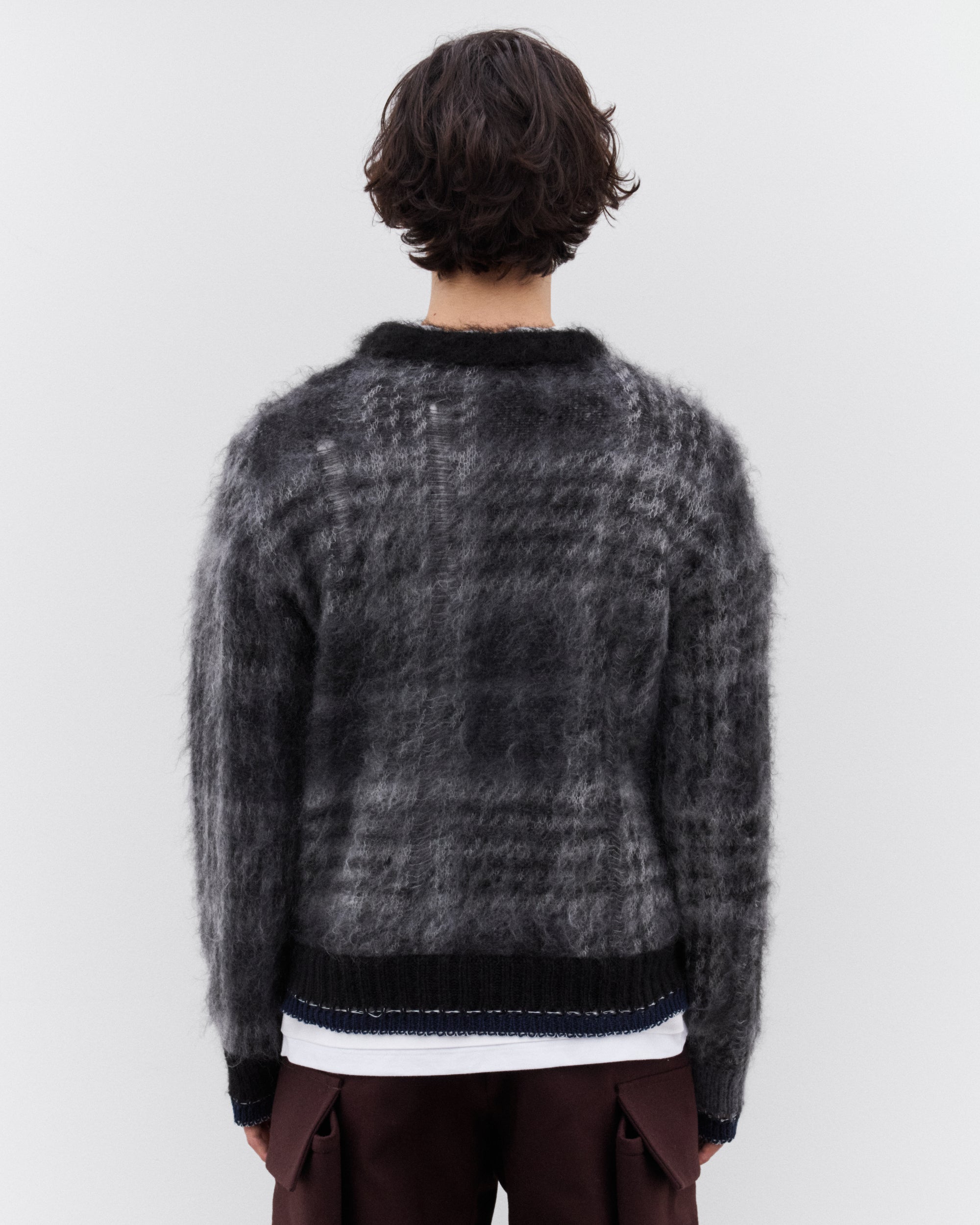 Rounded necklineBrushed mohair check fabricRibbed cuffs and hemLong sleevesBoxy fit