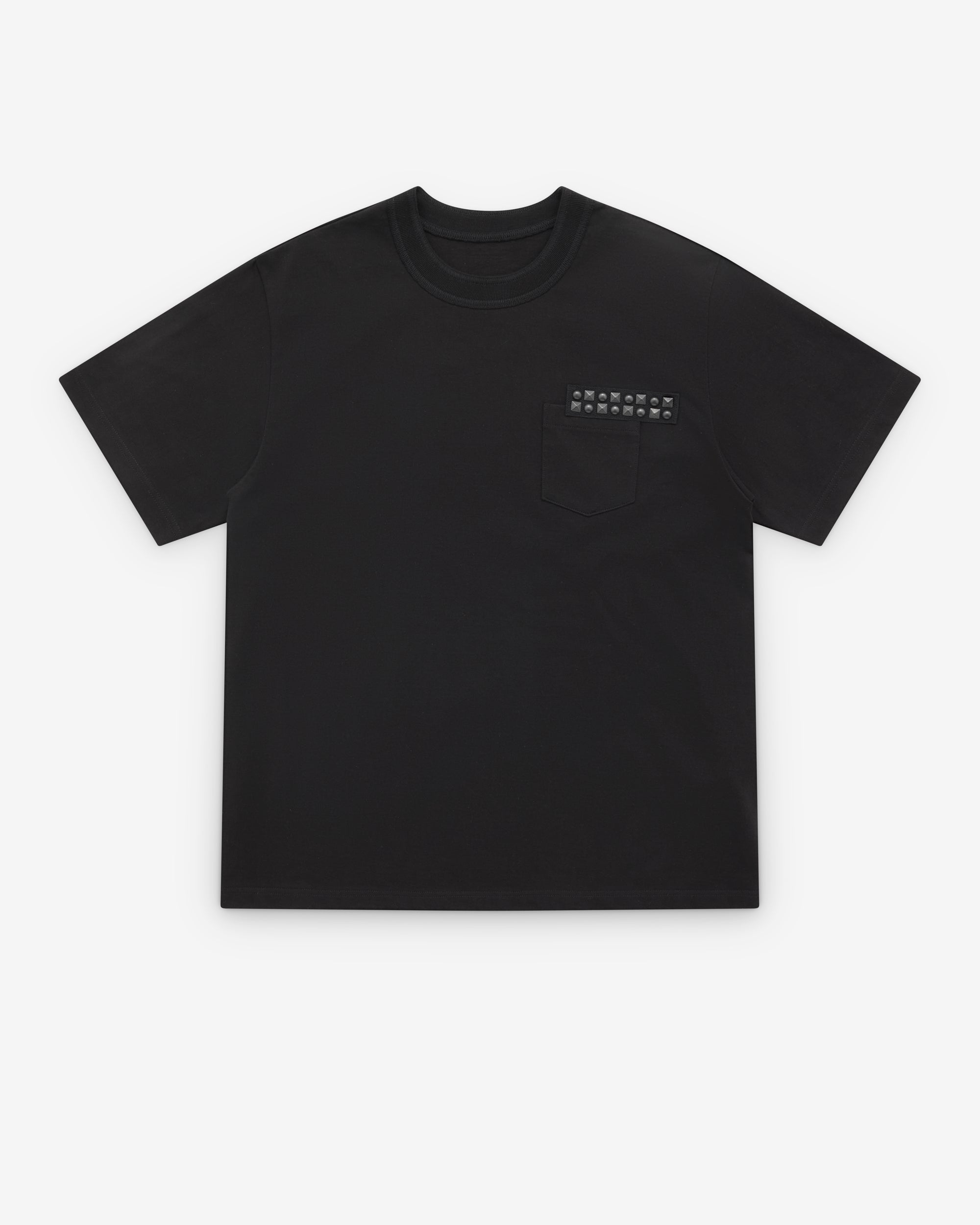 Short sleevesCrew necklineStudded detail at chest pocketBoxy fitScreen printed logo