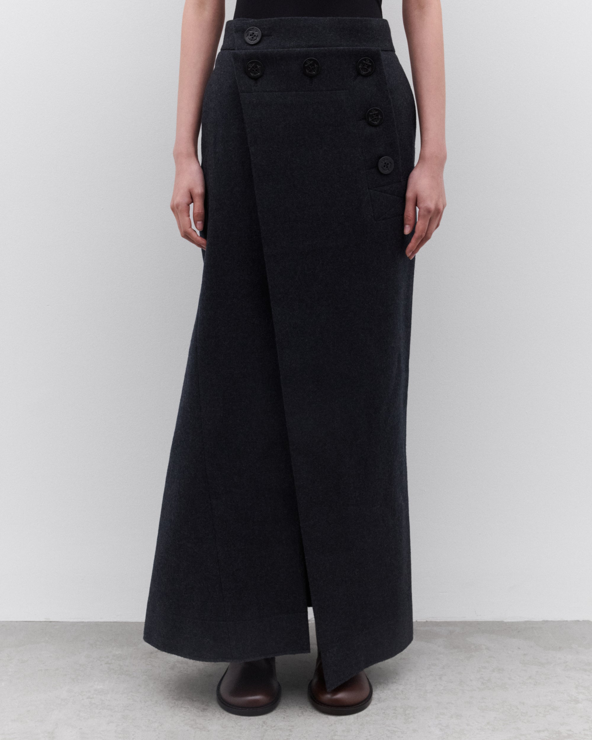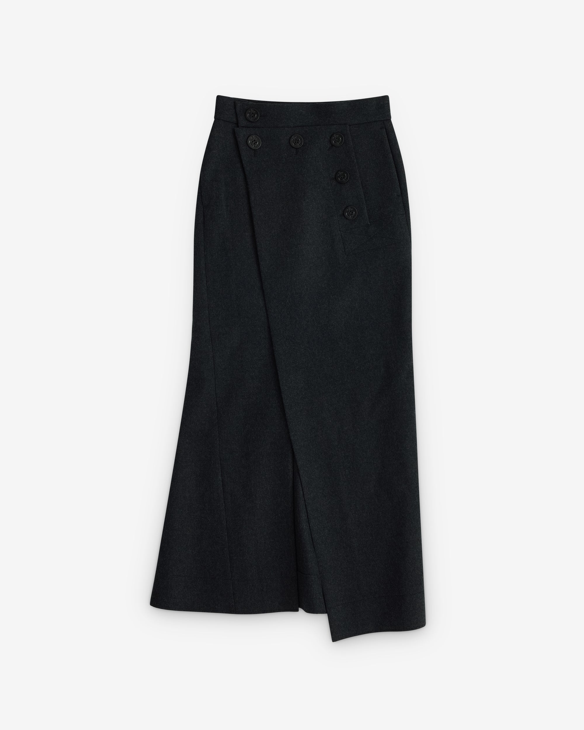 Wrap closureFull-lengthSlim fitWelt pocketsBias cut