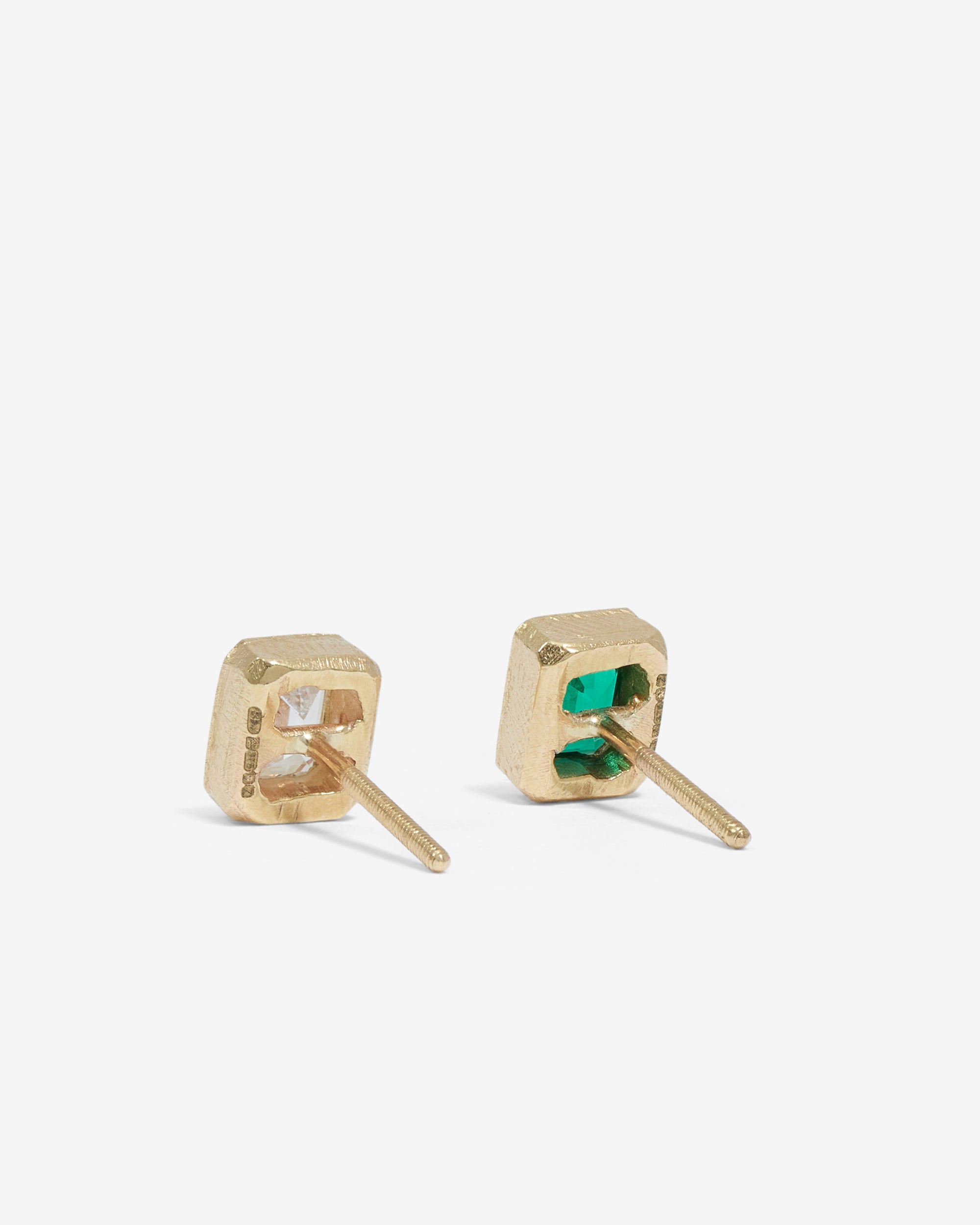 9K yellow gold square set earrings with hydrothermal emerald & cubic zirconia.