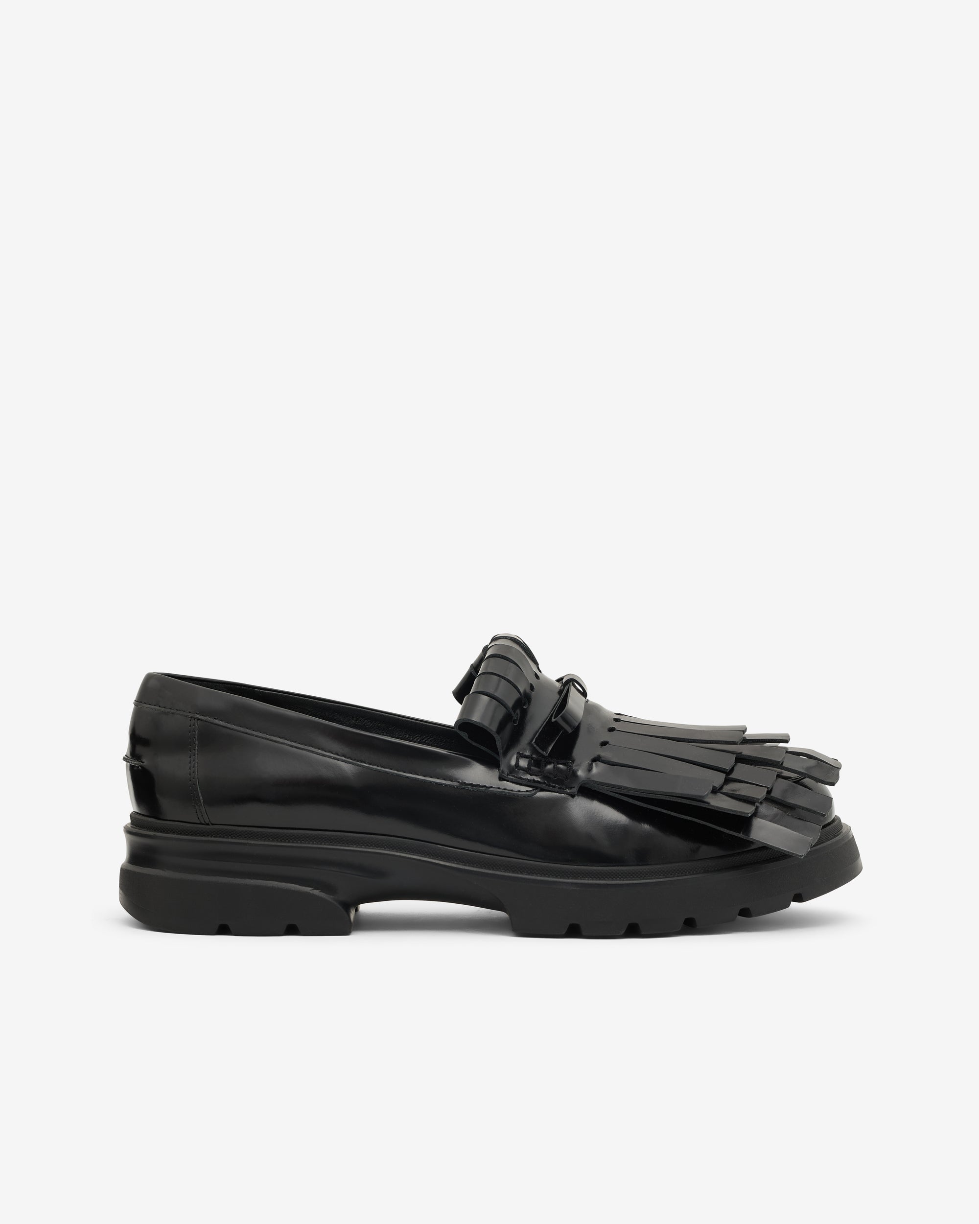 Fringed detailing at vampClassic tracker solePatent leatherHeel height: 6cm