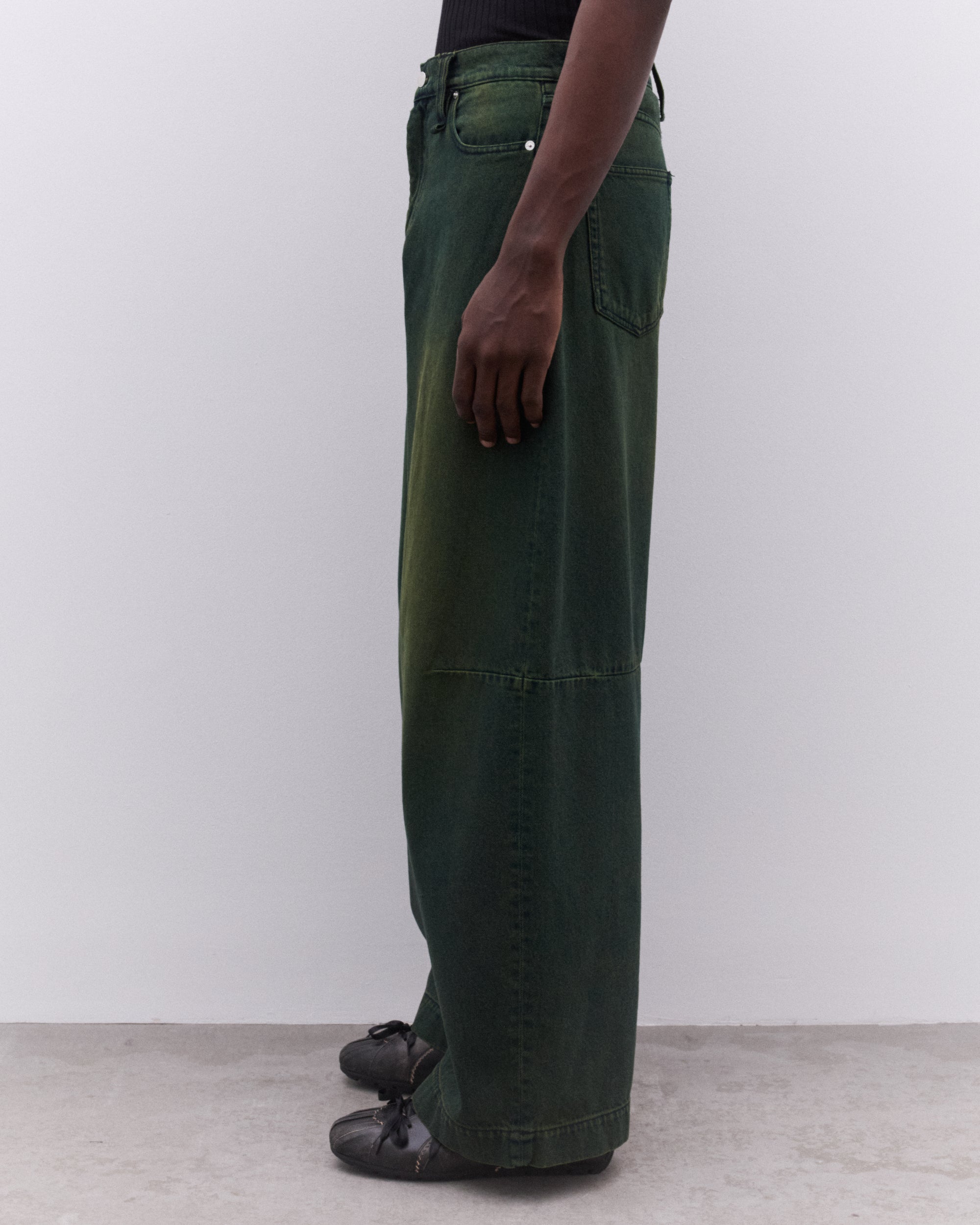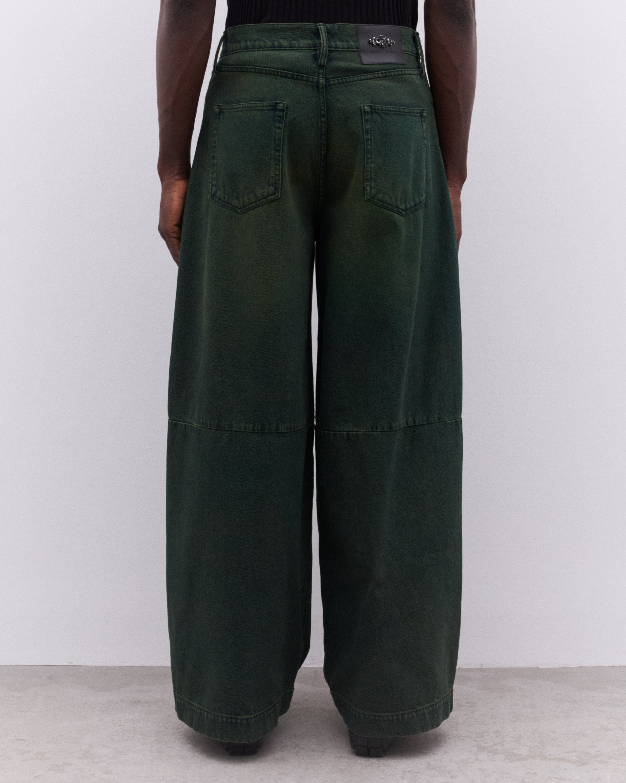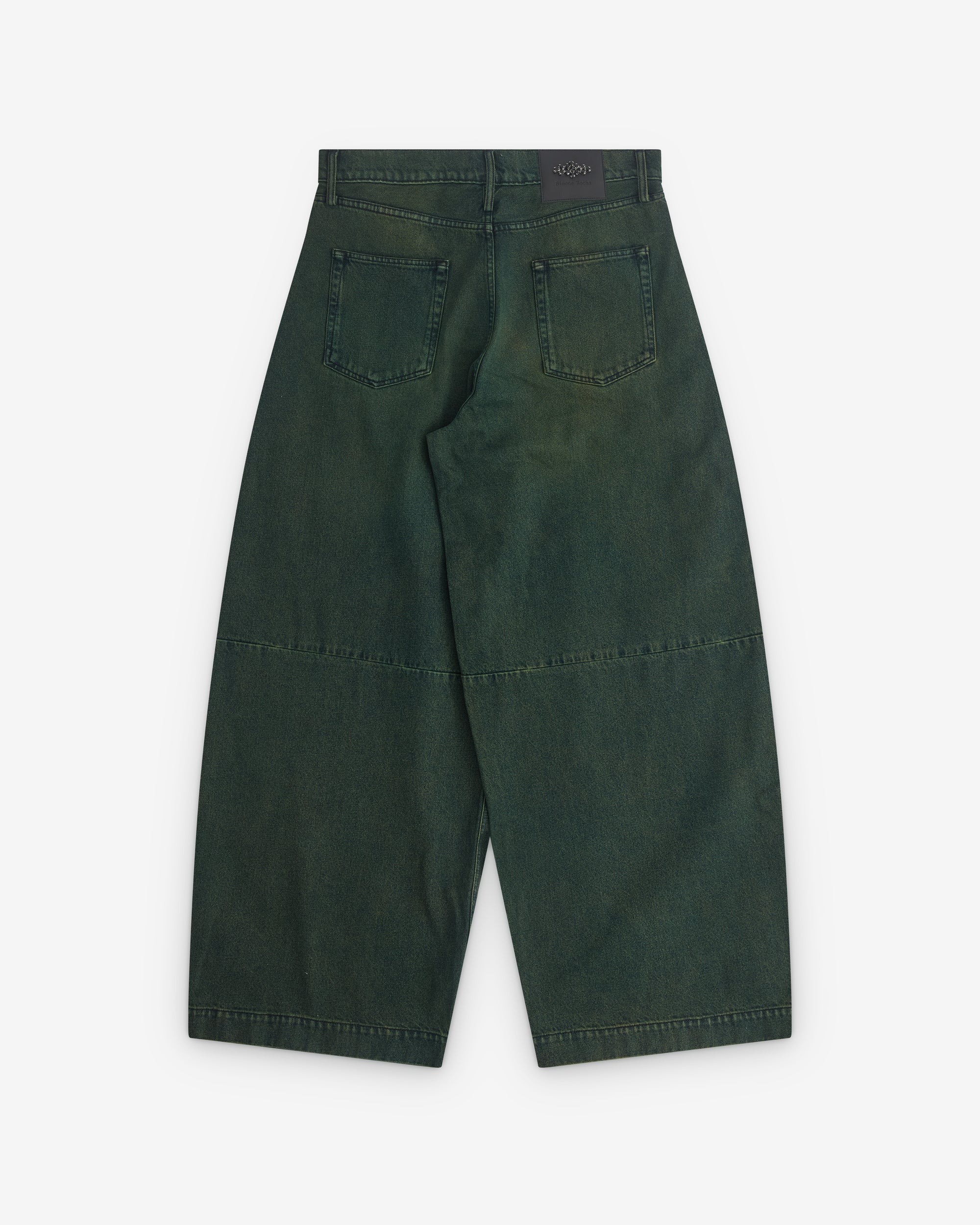 Seasonal overdye washBeaded label at backFour pocket stylingHigh-waist fit