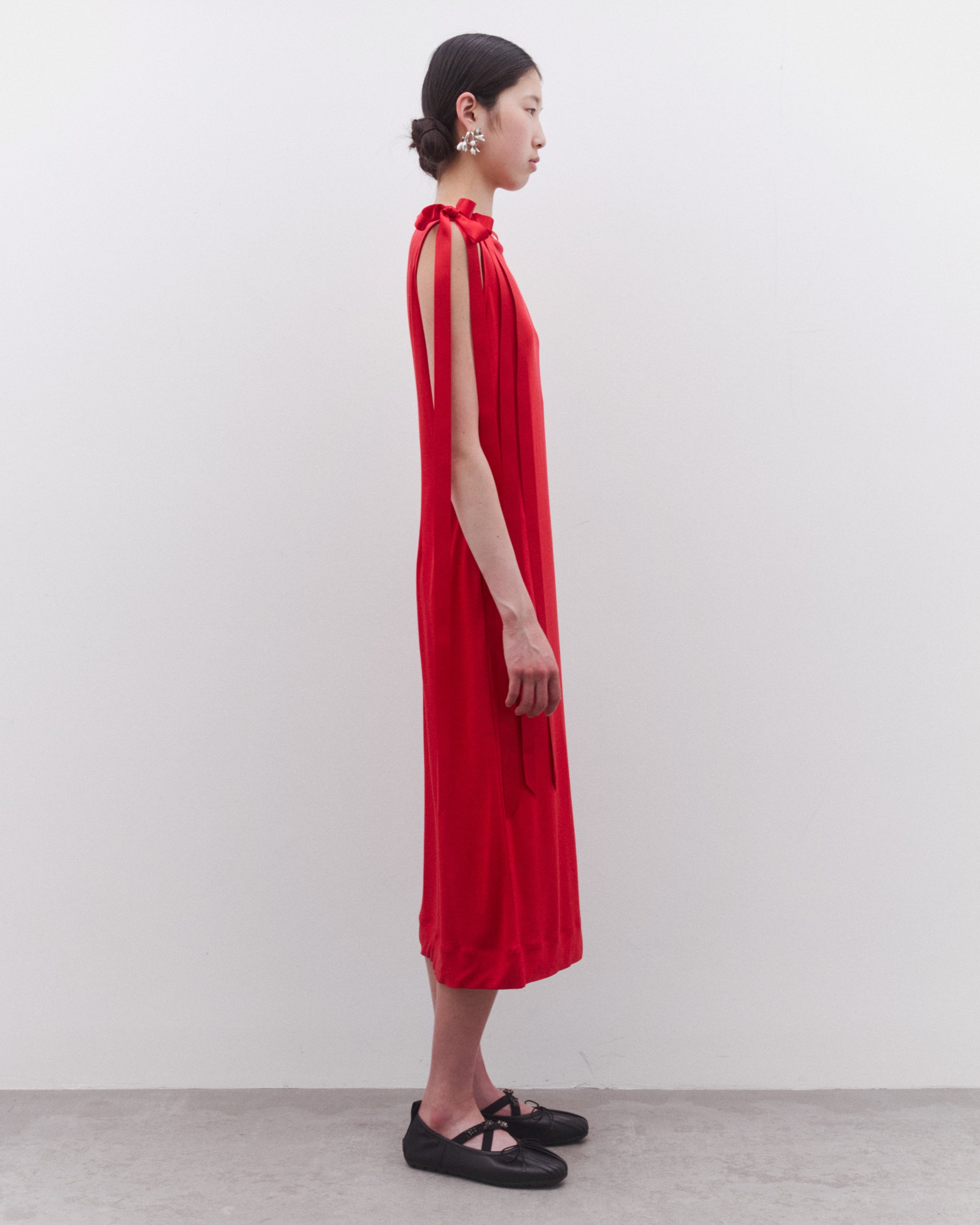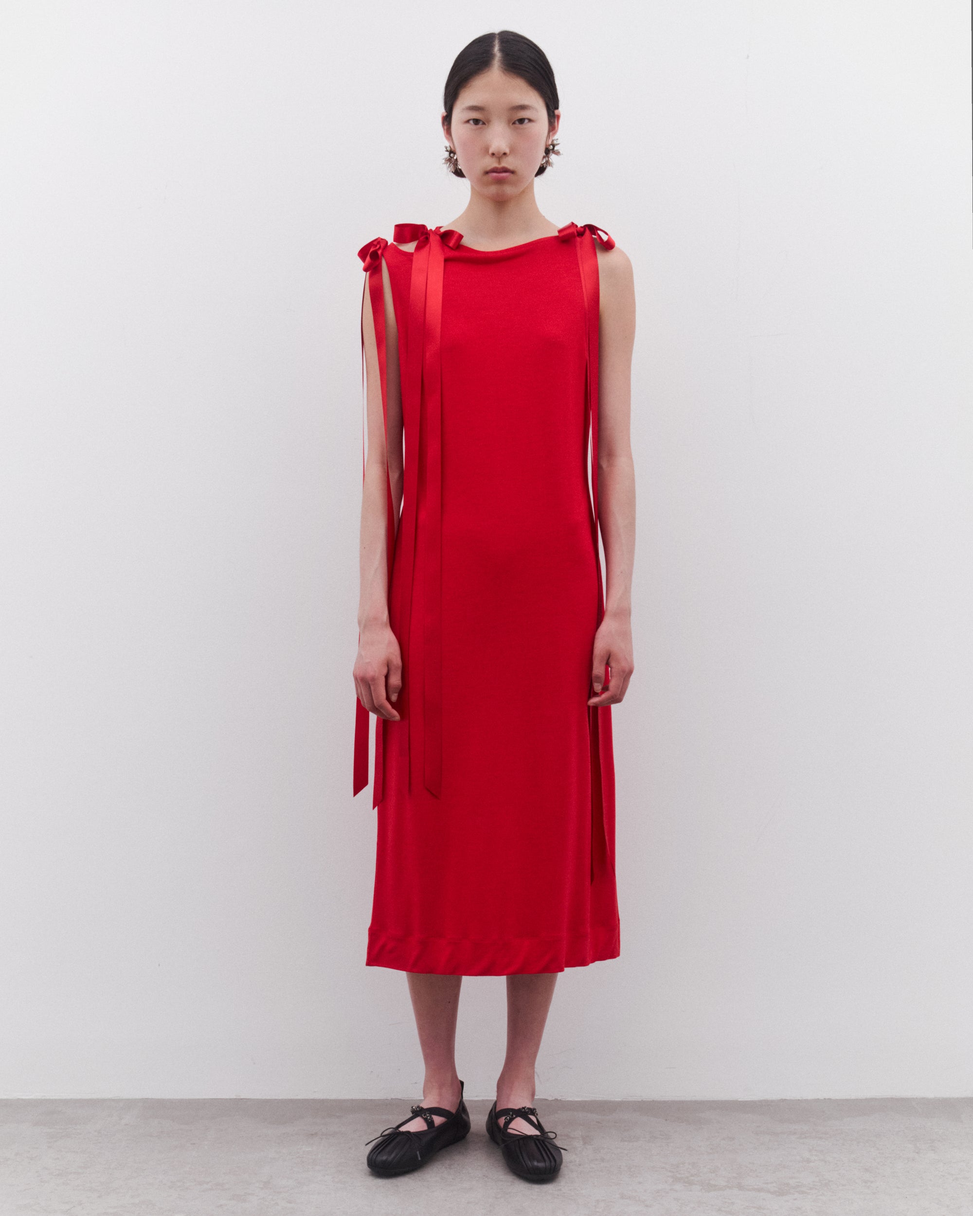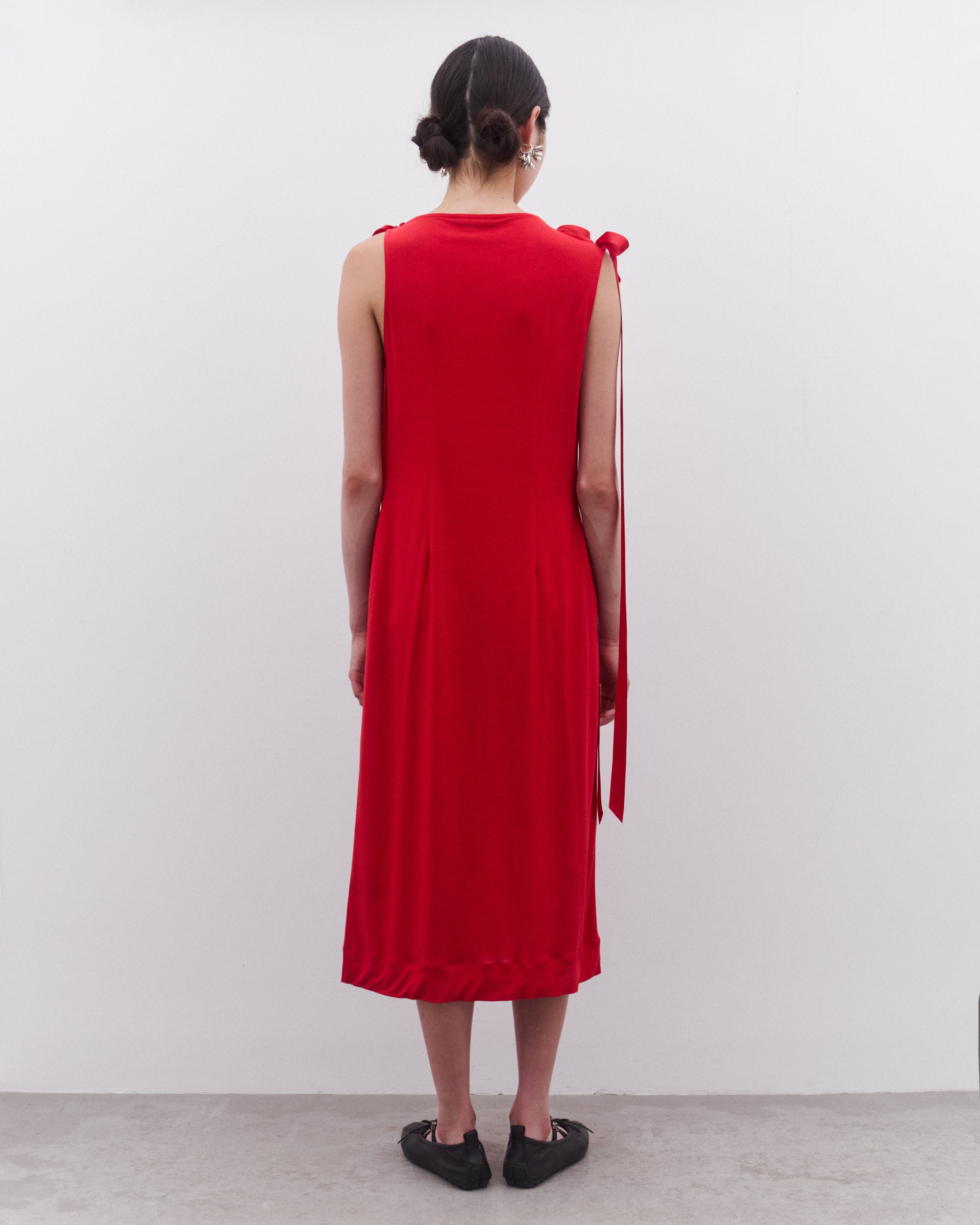 Bow tied ribbon strapsMid-lengthSlim fitSleevelessStraight hem