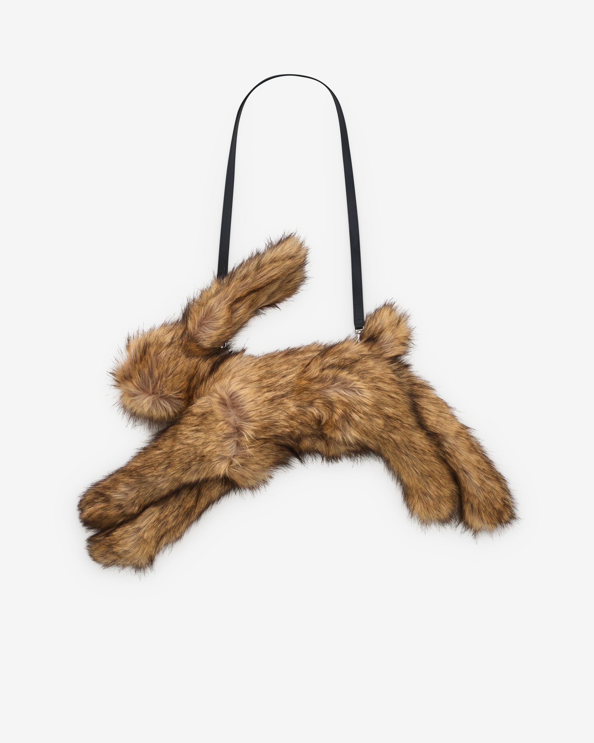 Faux fur hare shaped clutch bagSignature embellishmentRemovable leather crossbody strapZip closureDimensions: 75cm x 9cm x 16cm (Excluding strap)