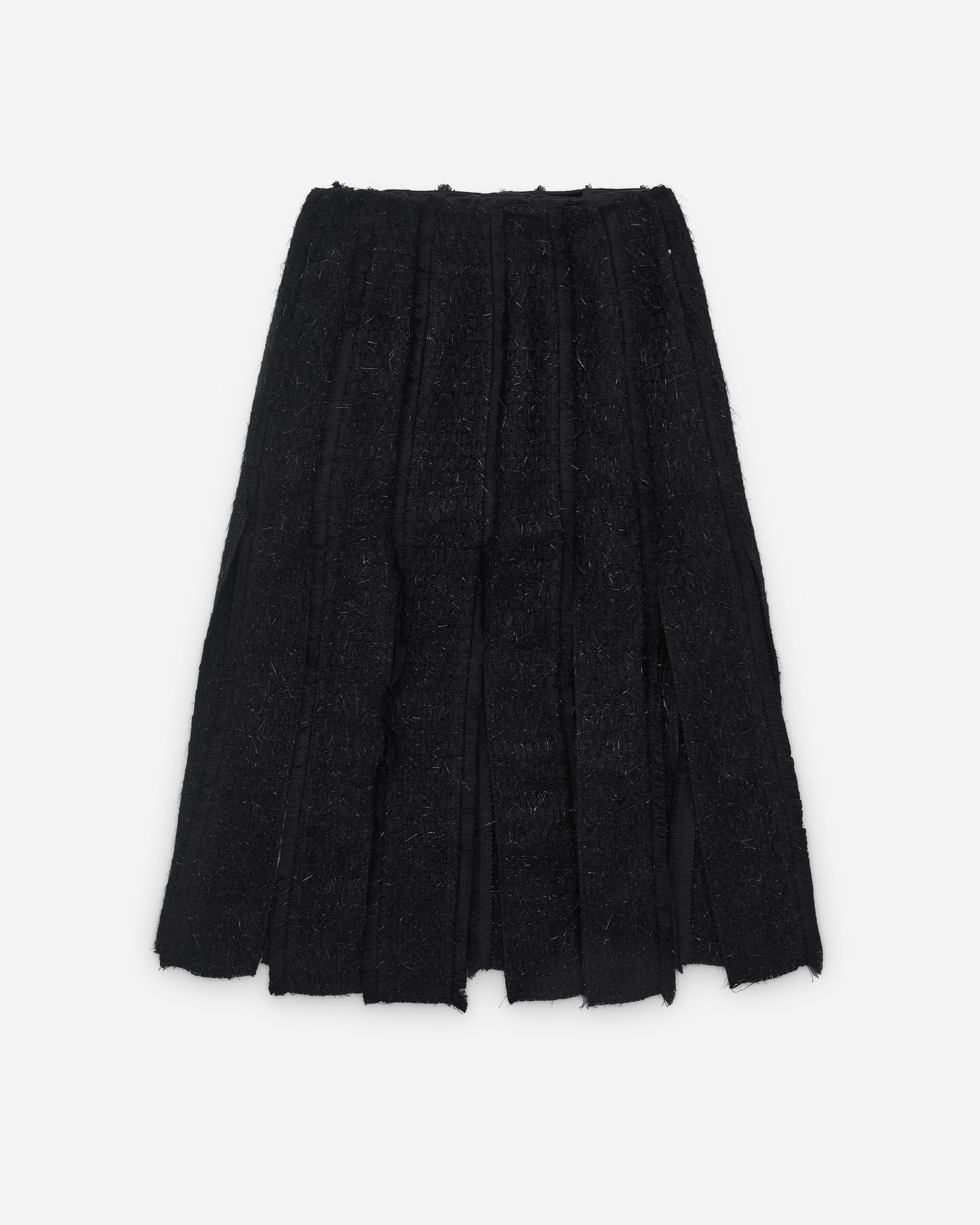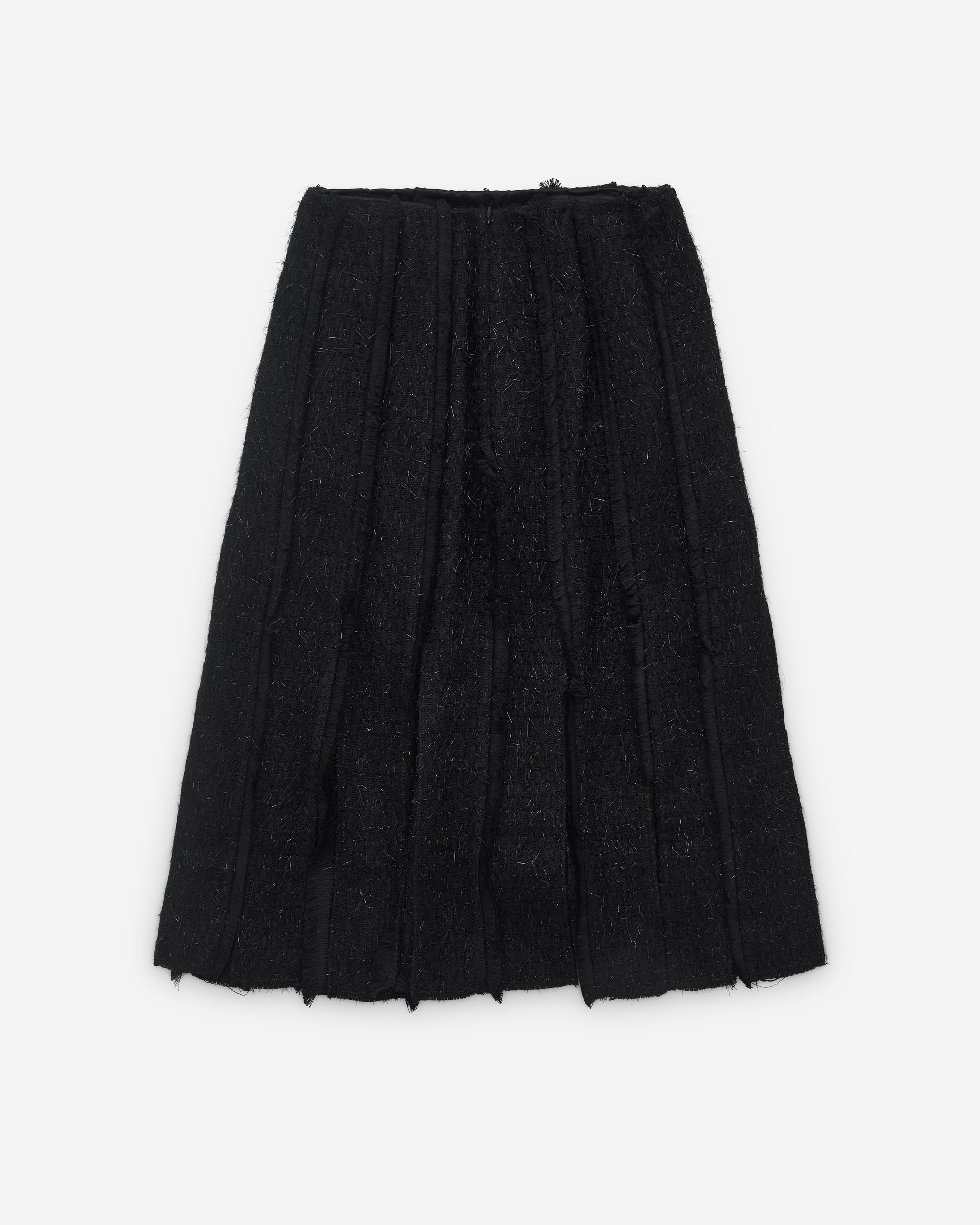 Multi slit designMidi skirt lengthViscose liningFrayed fabric