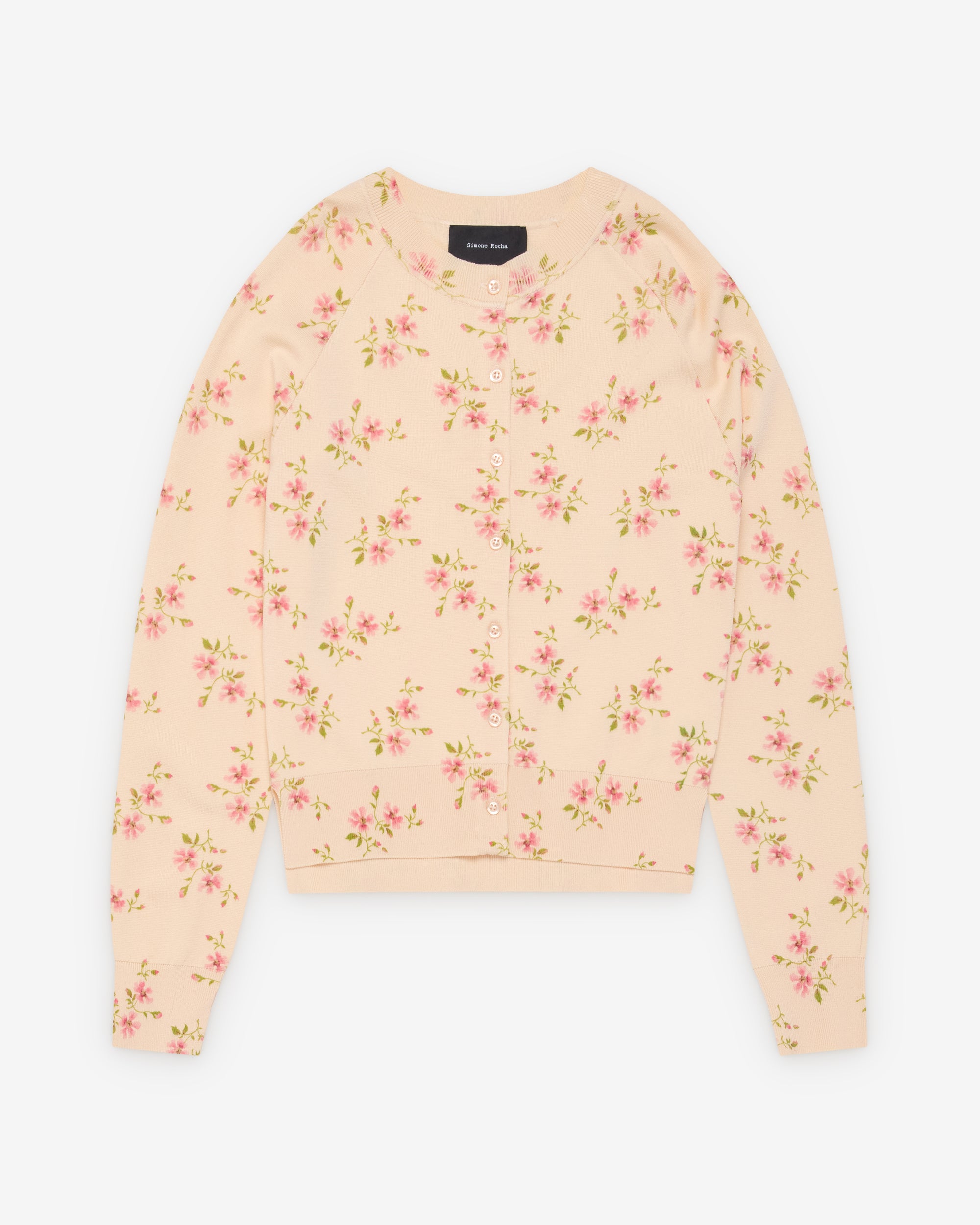 Viscose knit cardiganFront button closureLong sleevesRibbed neck, hem and cuff