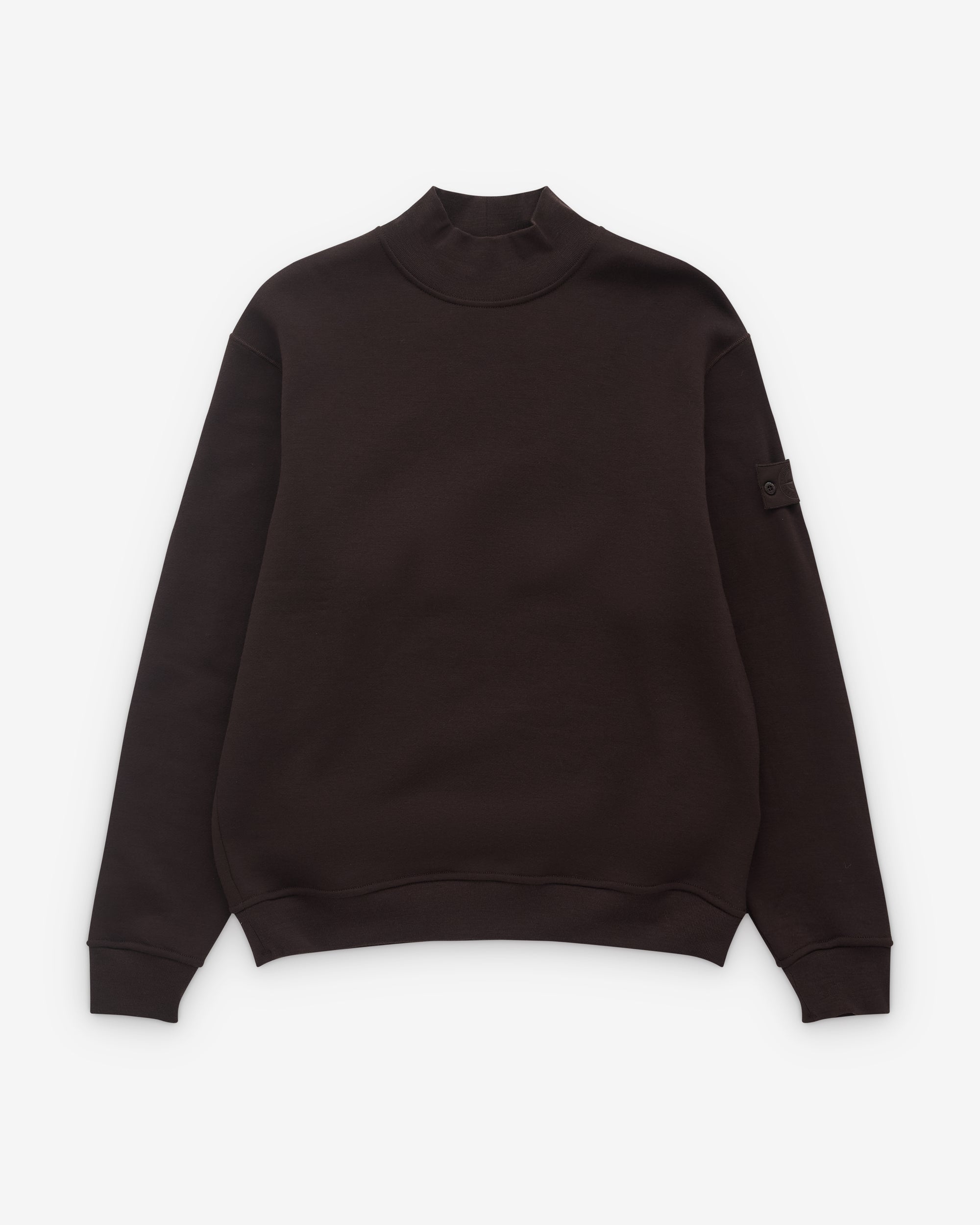 Mock neckLong sleevesCotton and wool fleeceStone Island ghost badge at sleeveRibbed knit trims
