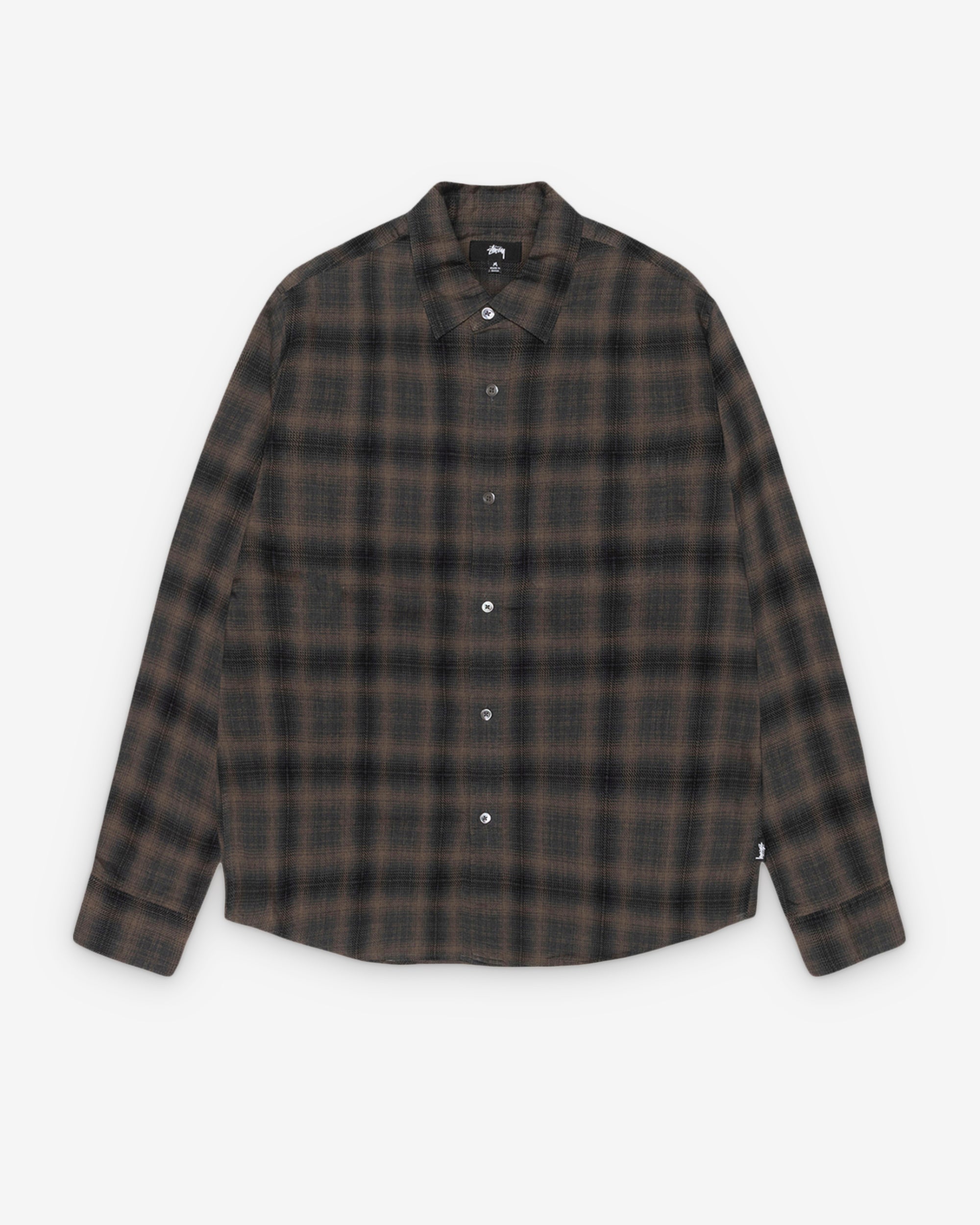 Relaxed fit shirt with an allover plaid printWashed TENCEL™ twillMother of pearl button closureSingle patch pocketButtoned pleated cuffsStüssy stock flag label at side seamBack yoke Curved hemUnisex 100% TENCEL™Made in China