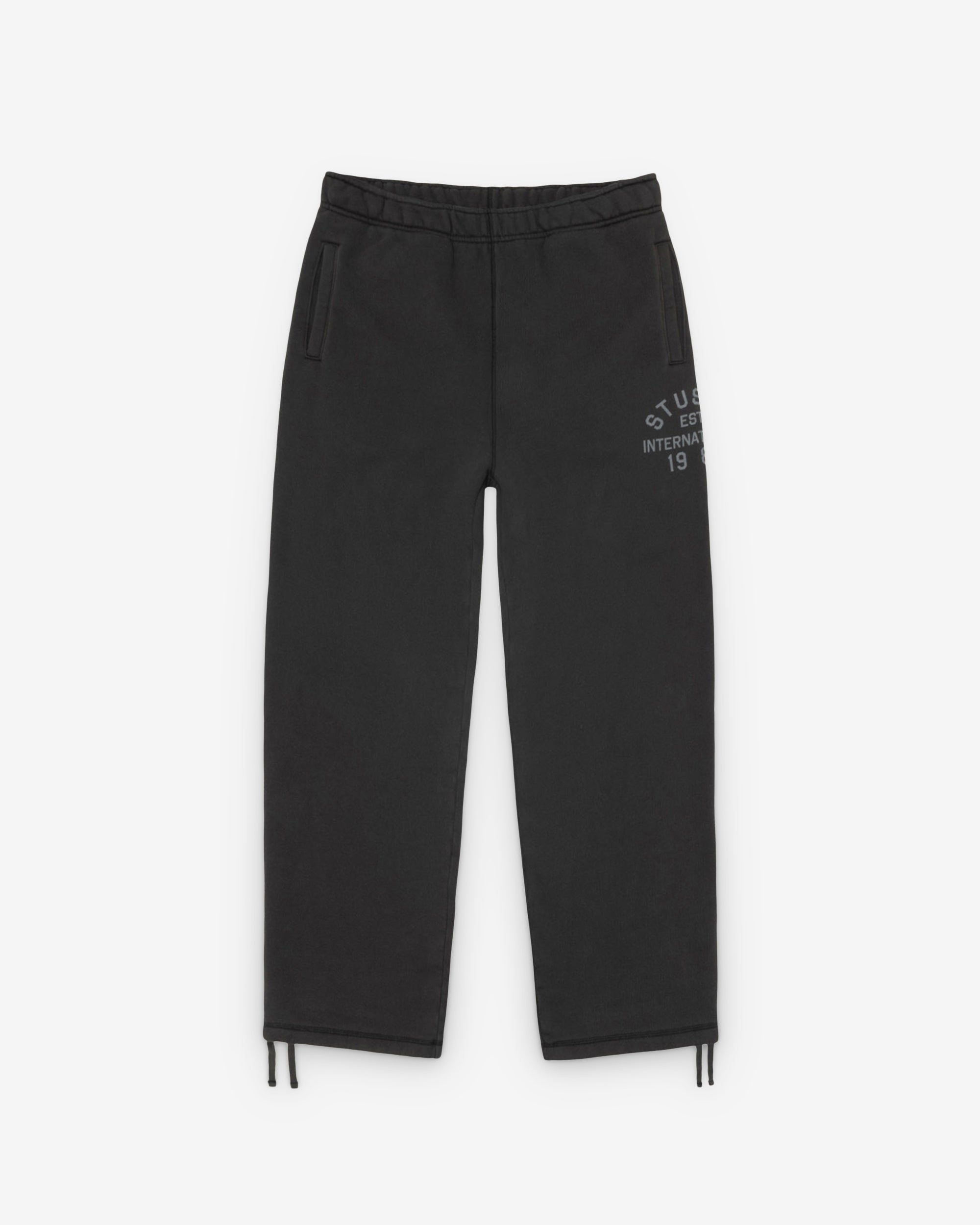 Stüssy logo artwork screenprinted at left leg