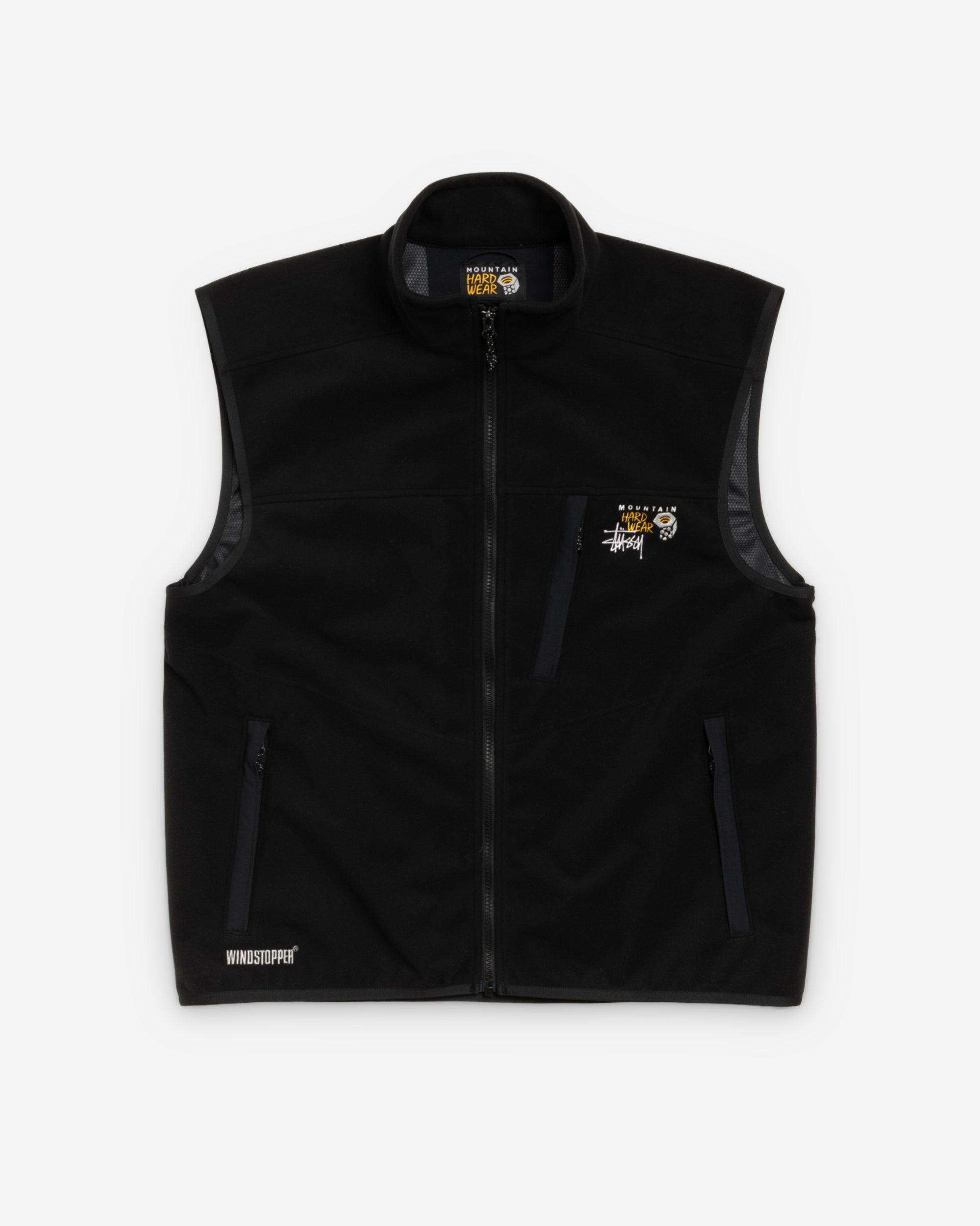 Stüssy & Mountain Hardwear co-branded logo embroidery at chest