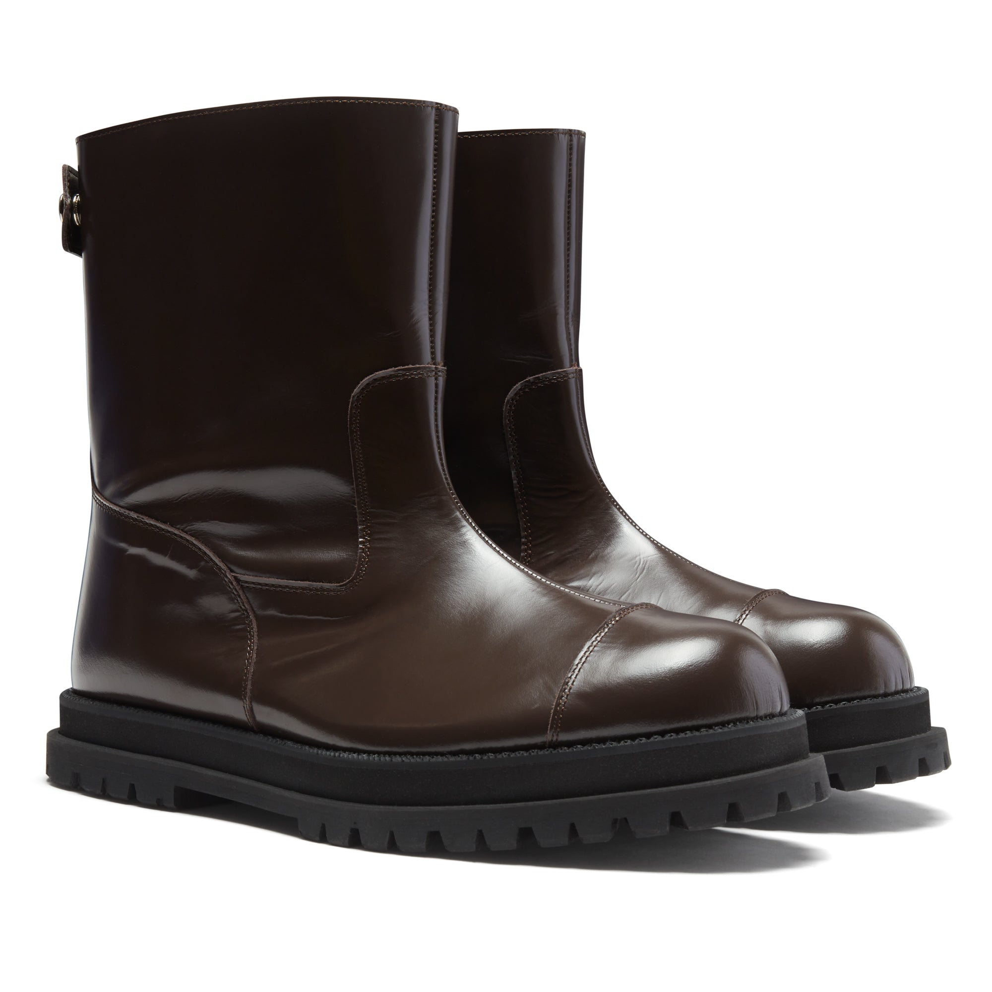 Ankle lengthFlat soleRound toeZip fastening at the back