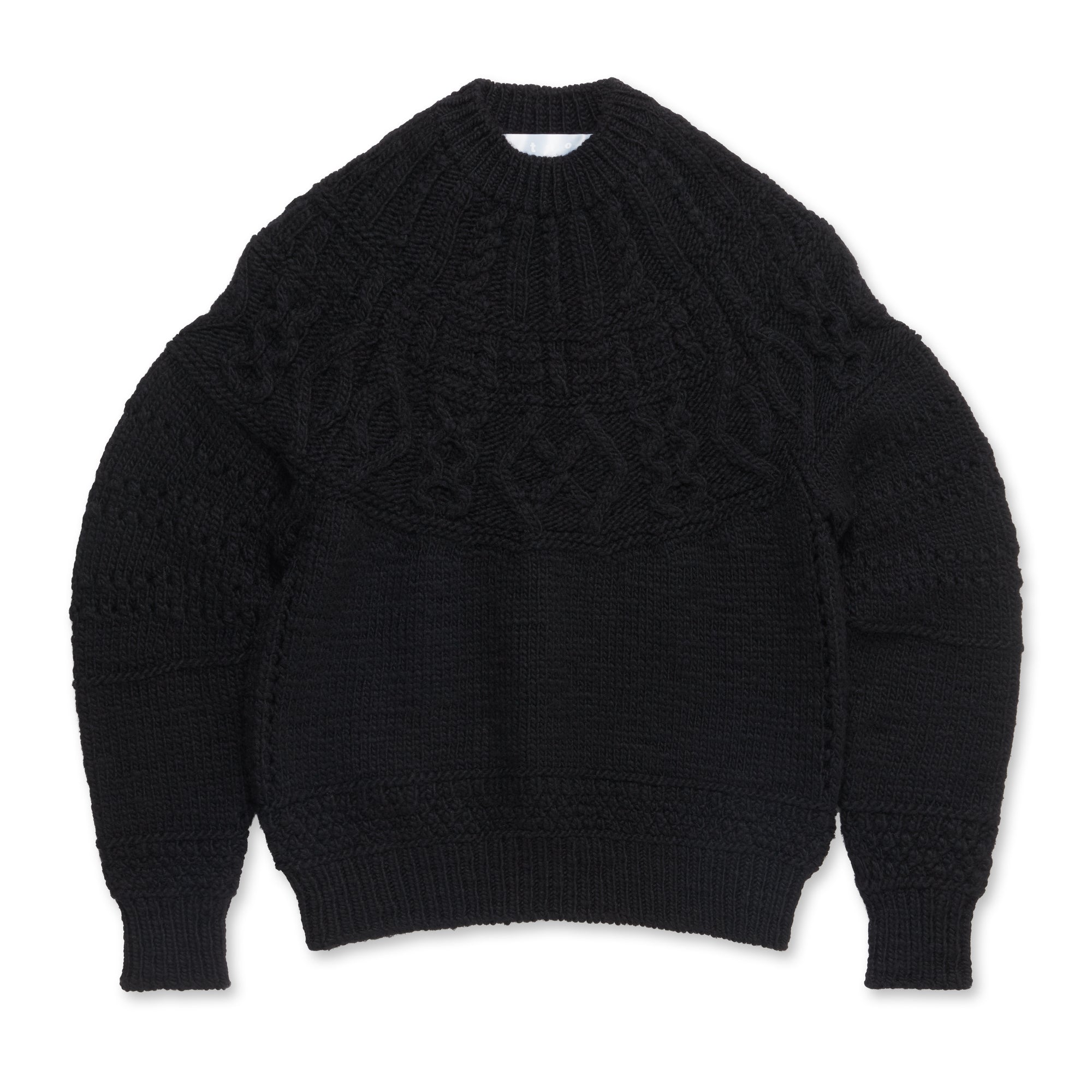 tao x Batoner Aran pattern sweater. Featuring ribbed collar, cuffs and waist.