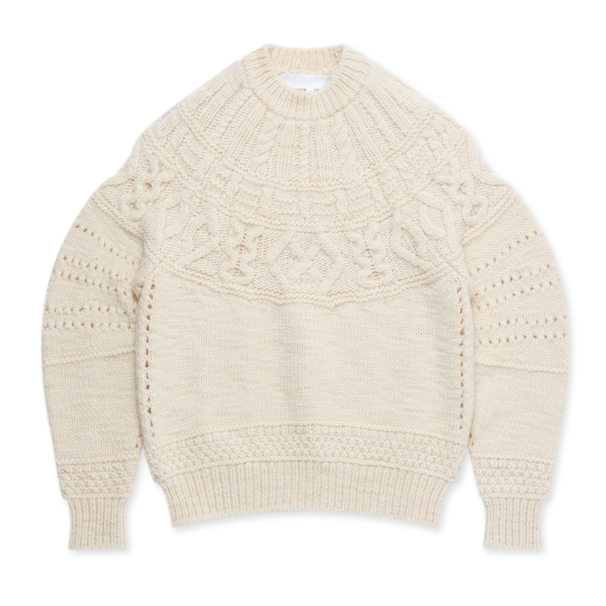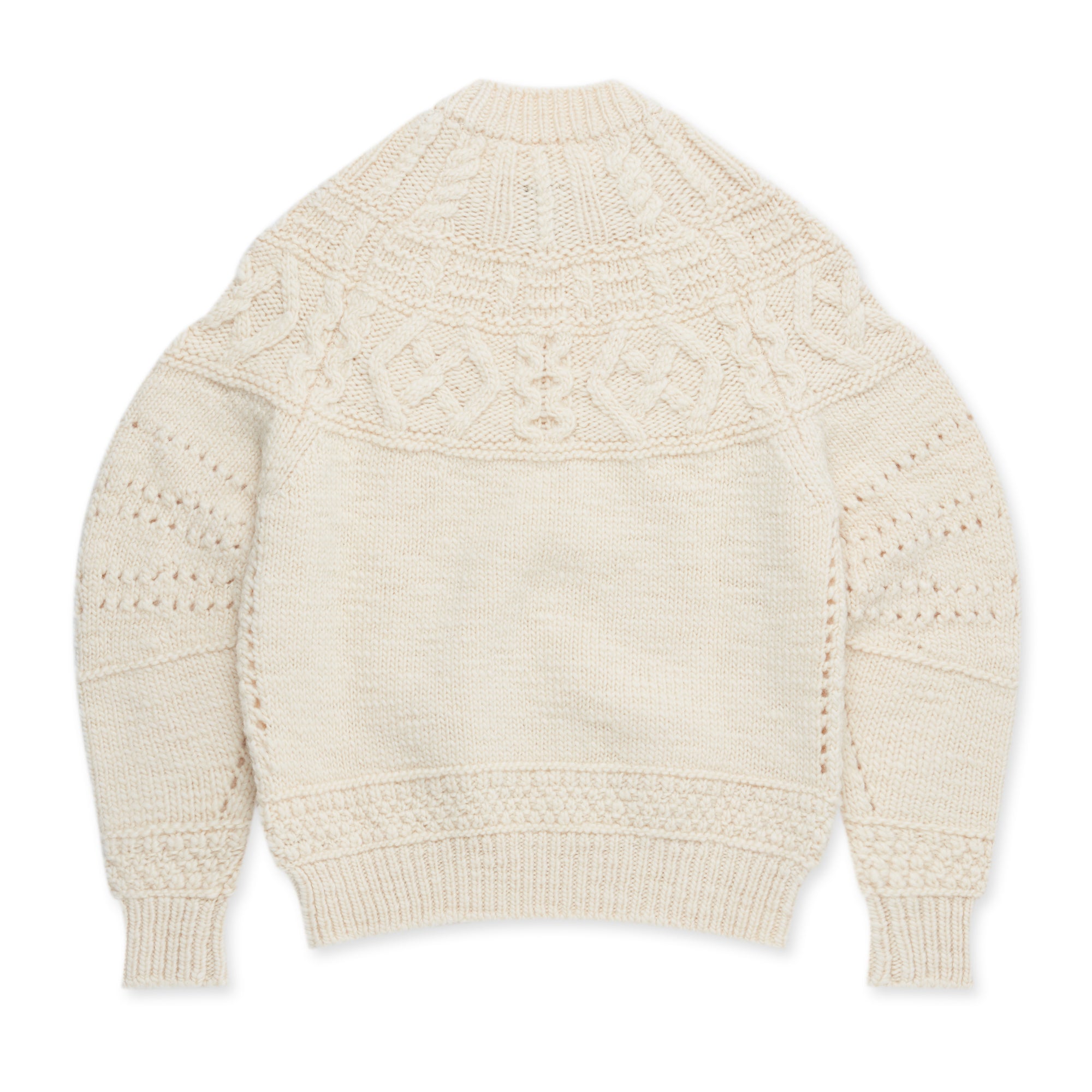 tao x Batoner Aran pattern sweater. Featuring ribbed collar, cuffs and waist.