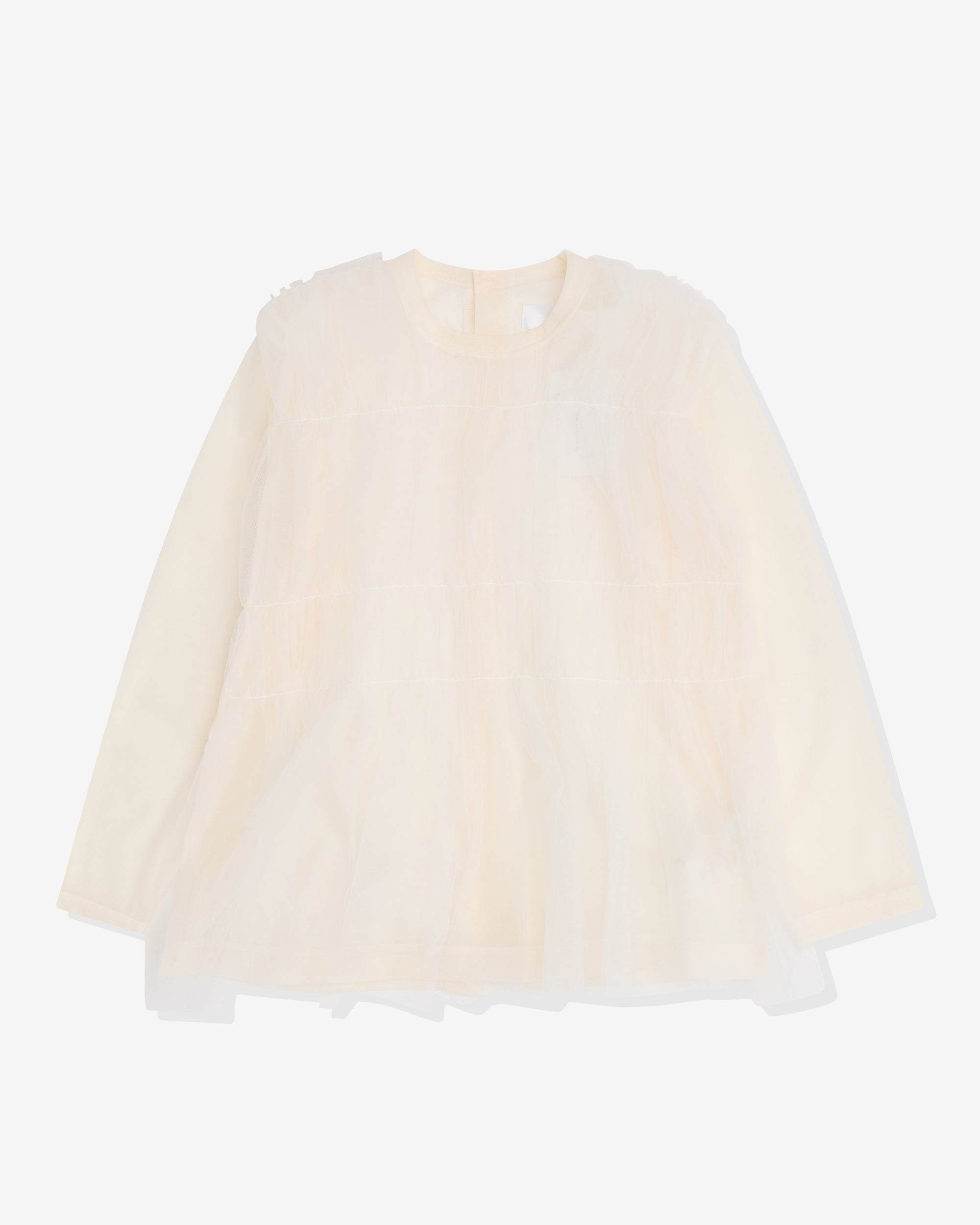 Round neckLong sleevesGathered tulle detailing at frontRear button fasteningBody: 100% PolyesterTrim: 100% Nylon