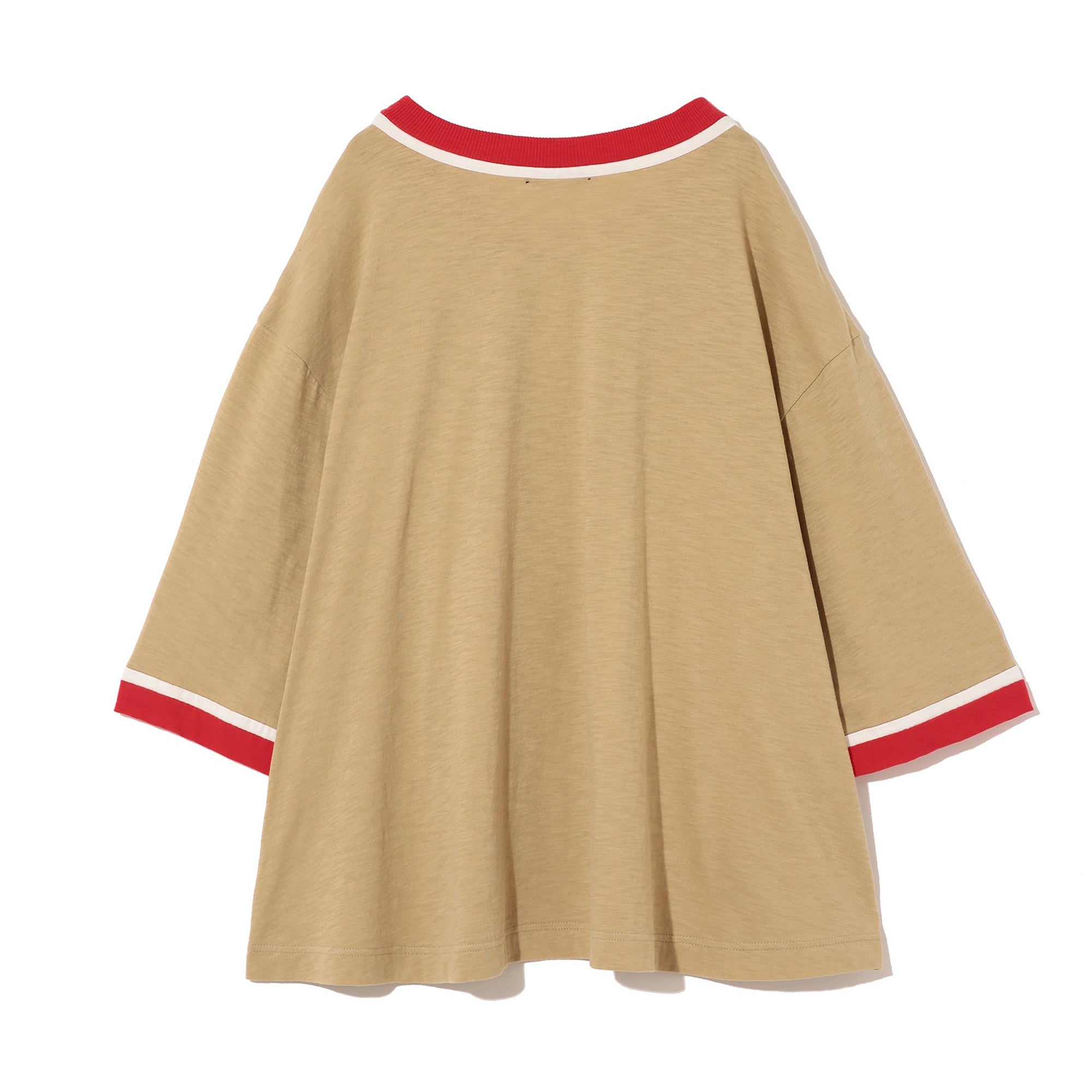 Undercover women's short sleeve crewneck t-shirt in beige with striped red and white detailing.