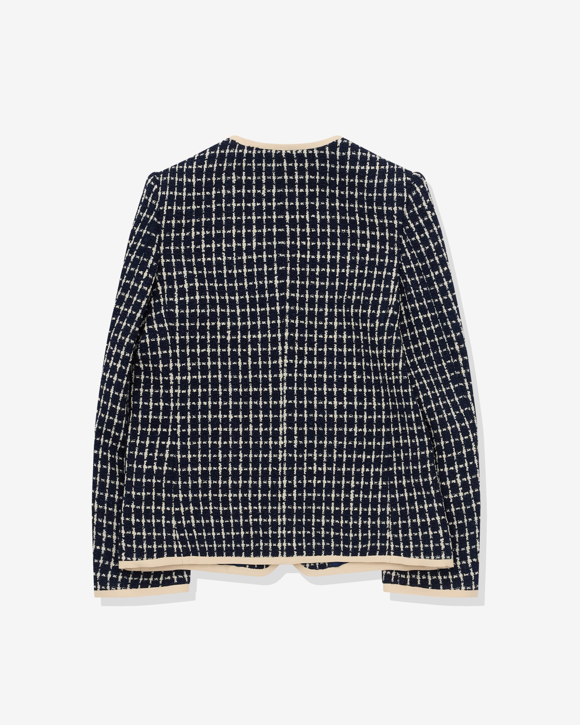 Bouclé jacket with contrasting Crepe Couture detailsFront closure with V-Logo buttonsBouclé square fabricJacquard Fiore V-Logo lining