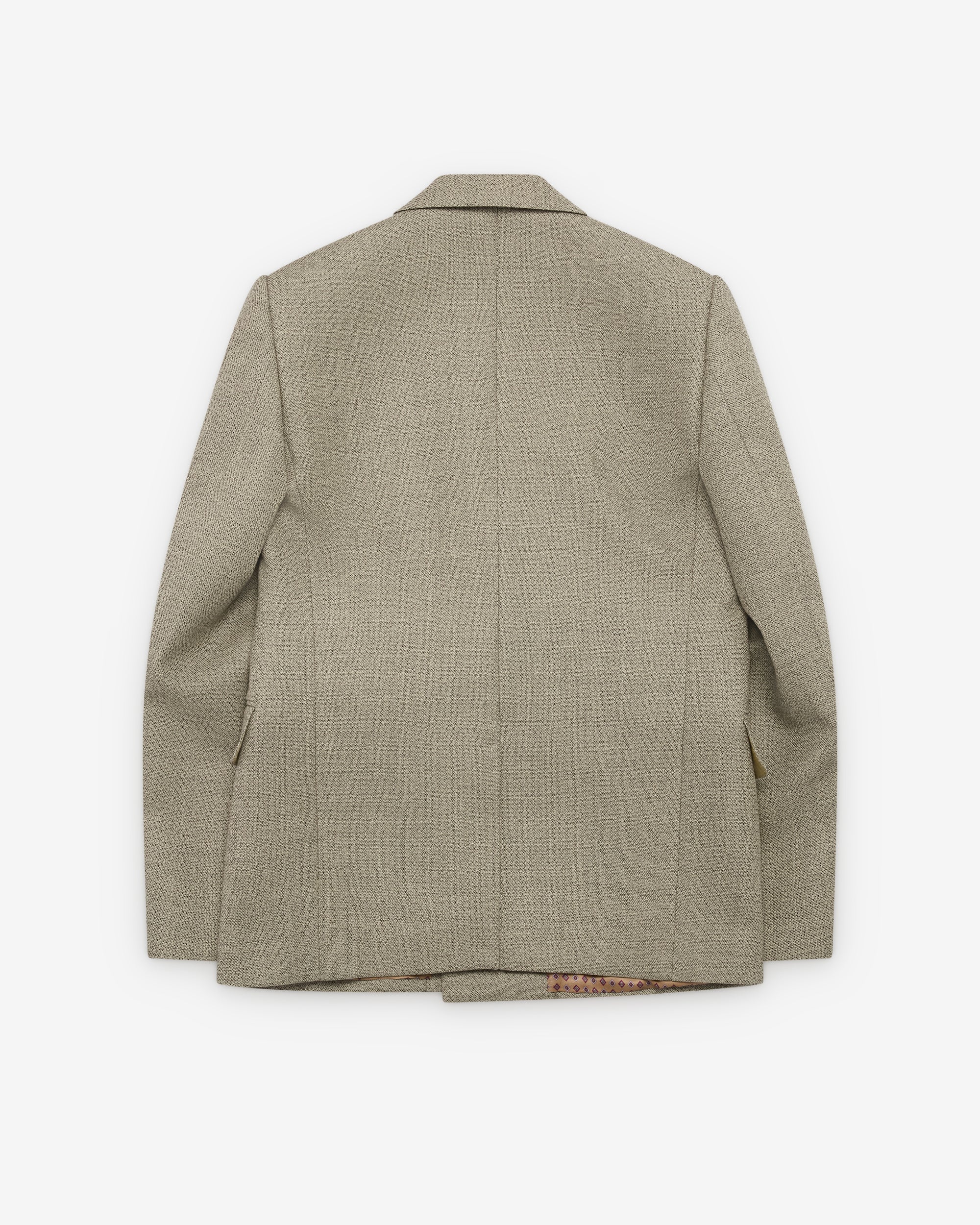 Double breasted blazerButton closurePeak lapel collarFont flap pocketsSplit rear hemFull internal lining