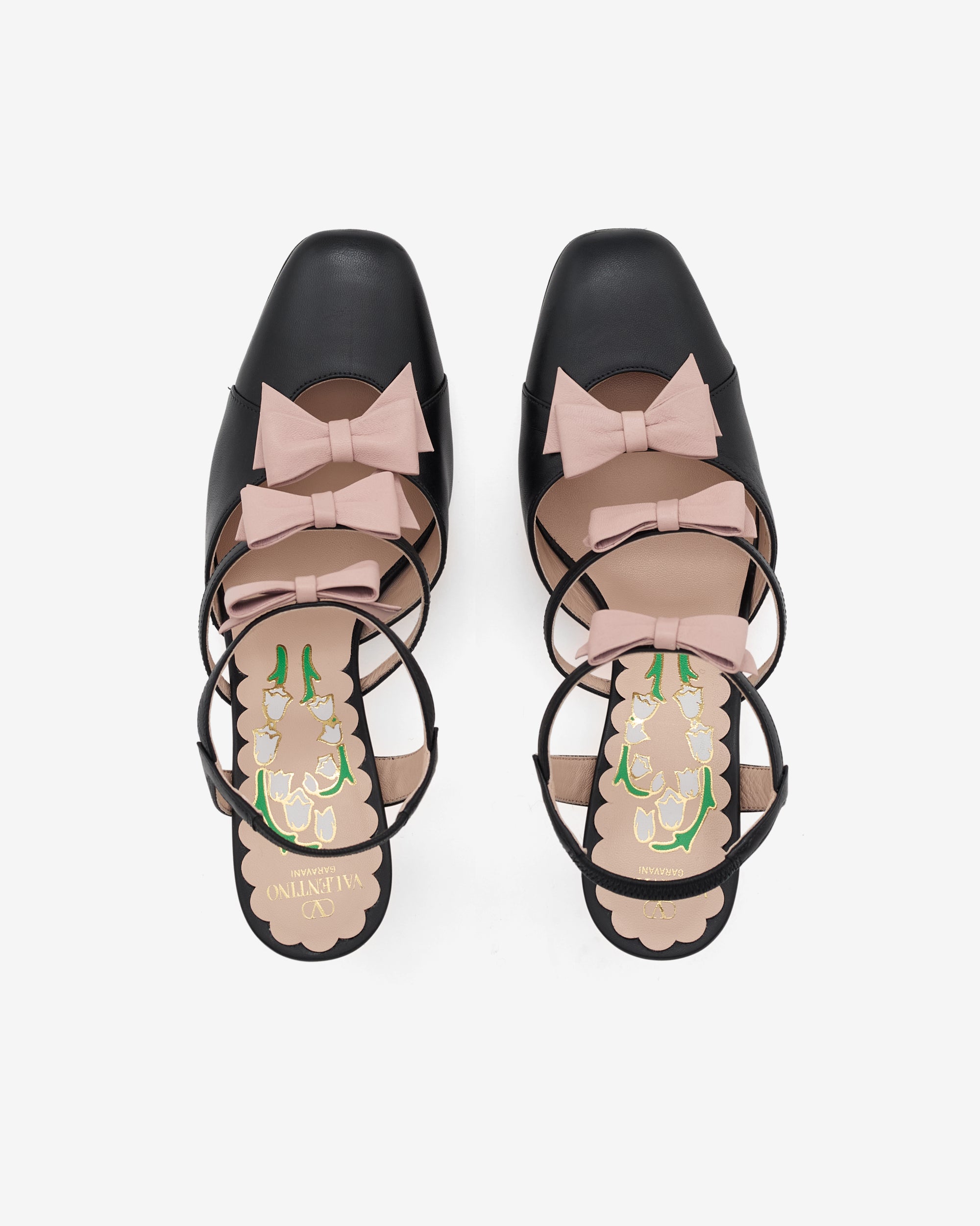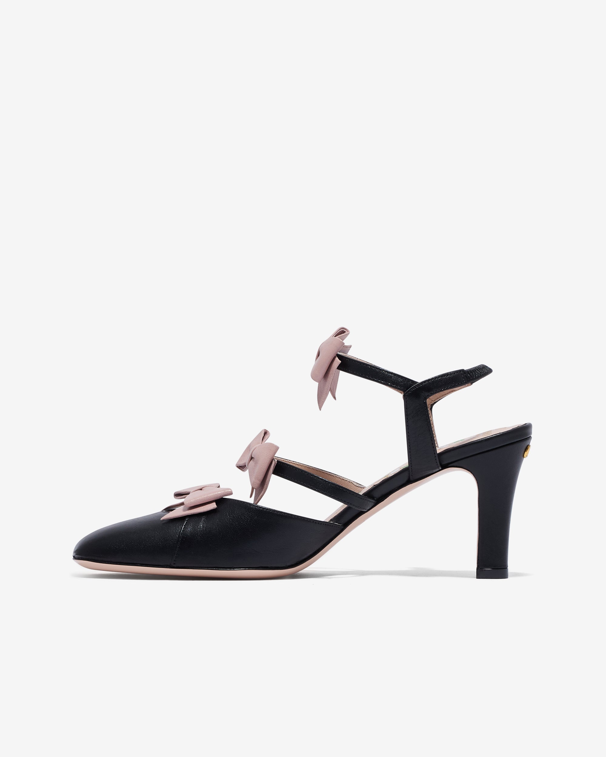 75 mm stiletto heel Slingback ankle strapPointed toeBow details at straps