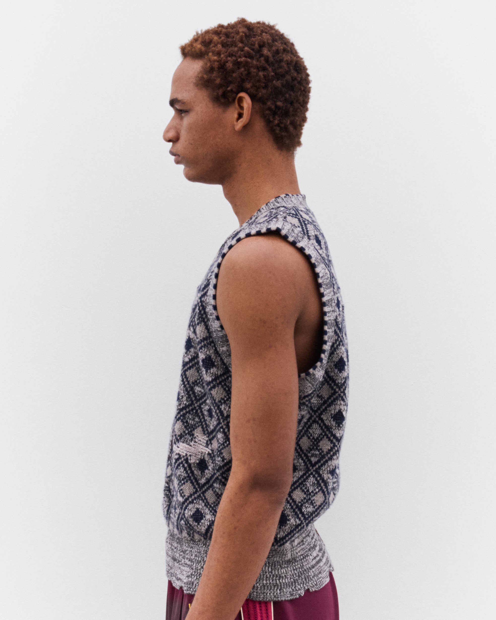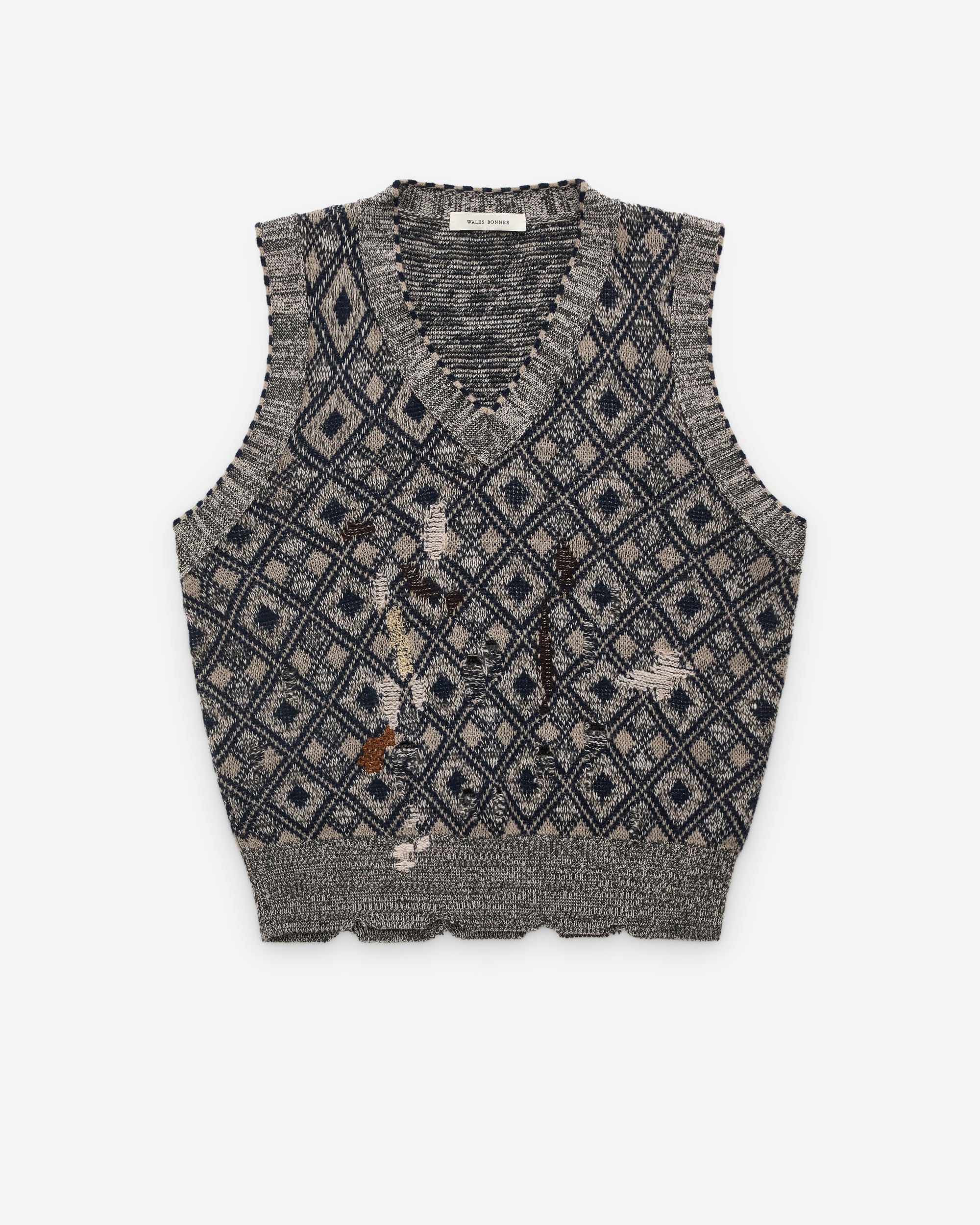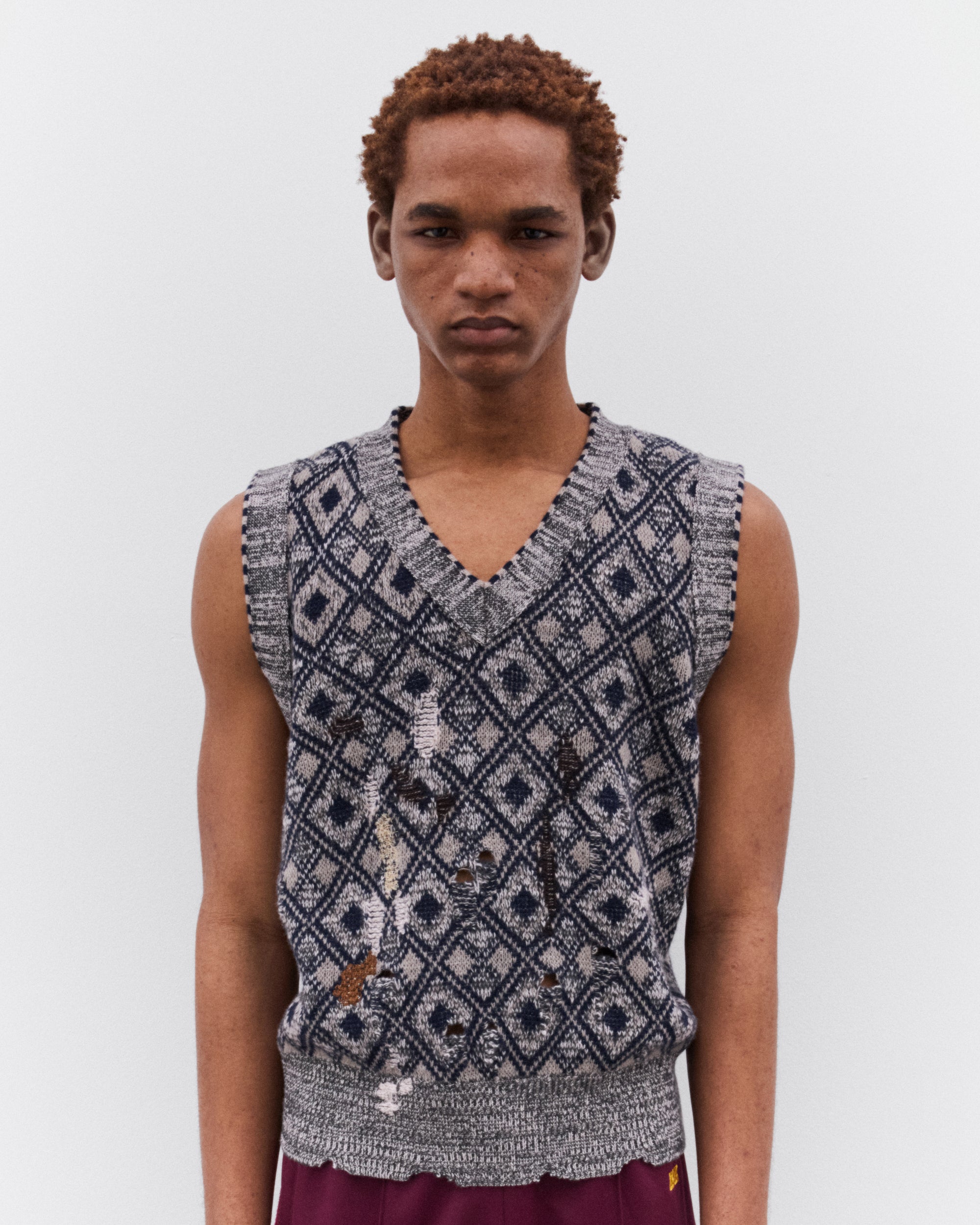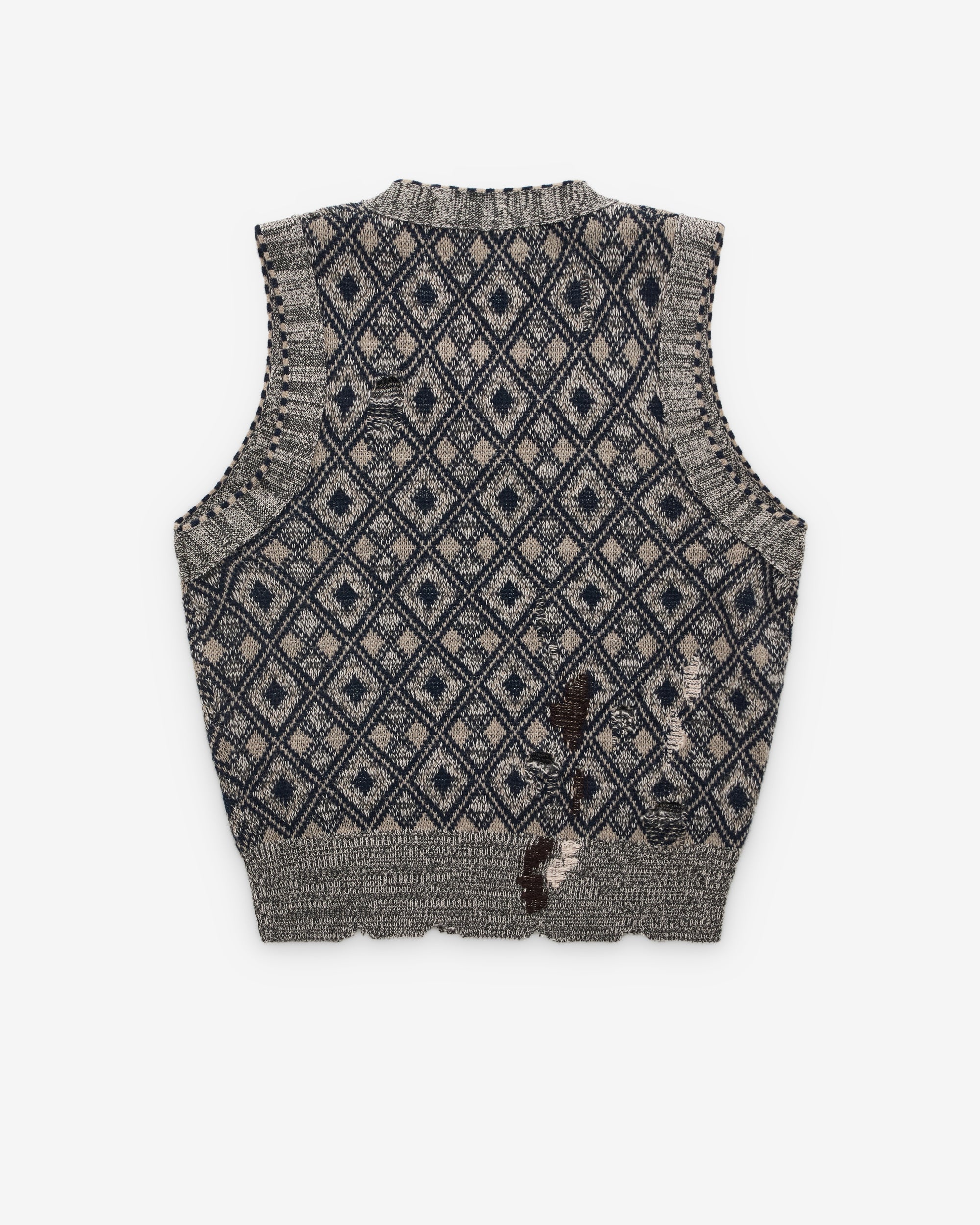 Ribbed v necklineSleevelessContrast ribbed trimsDistressed details
