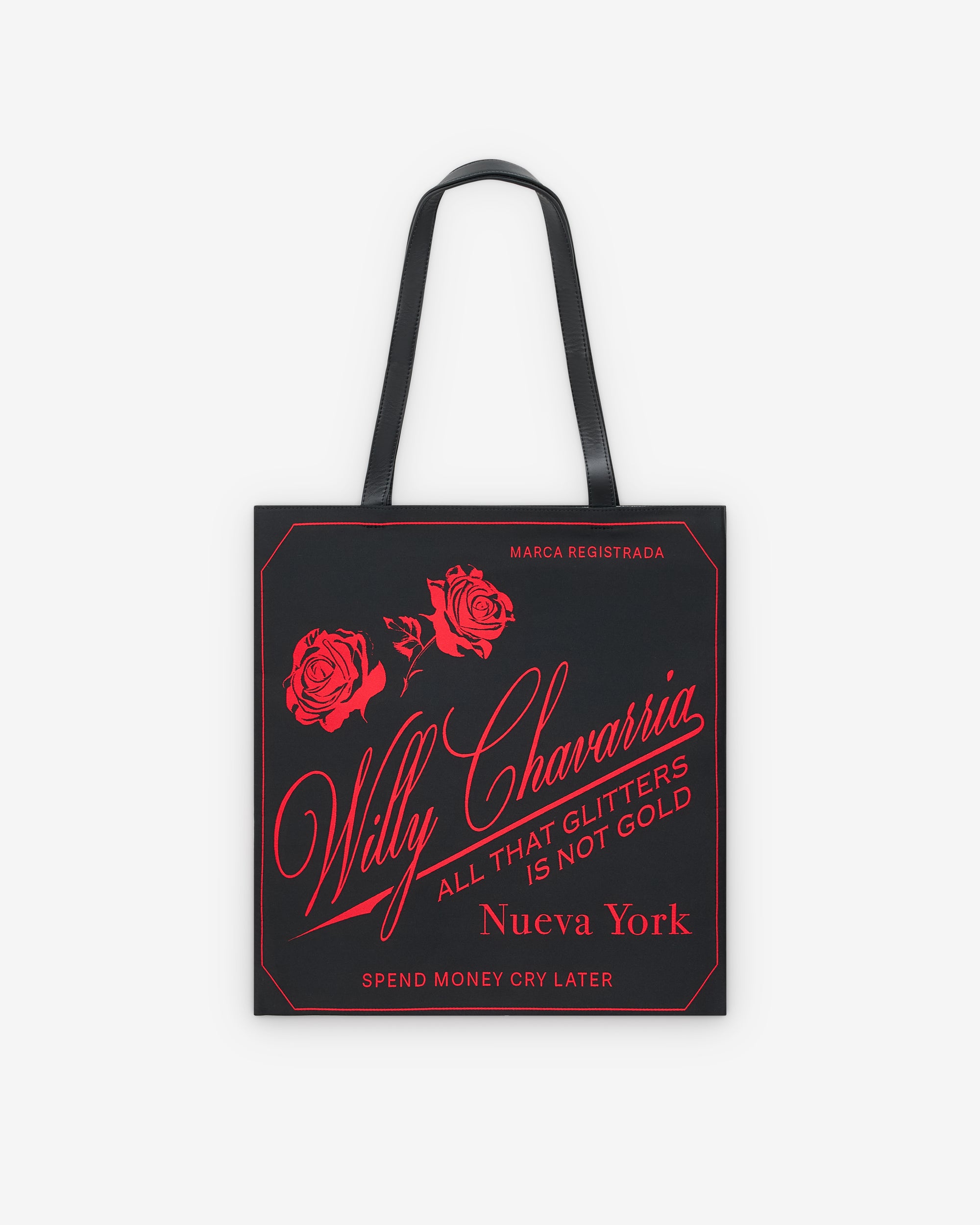 Signature “Tailoring” woven label graphicThread-embroidered motifs throughoutCalf leather strapsUnlined, no pockets15”x16”, Strap 11.5” Drop